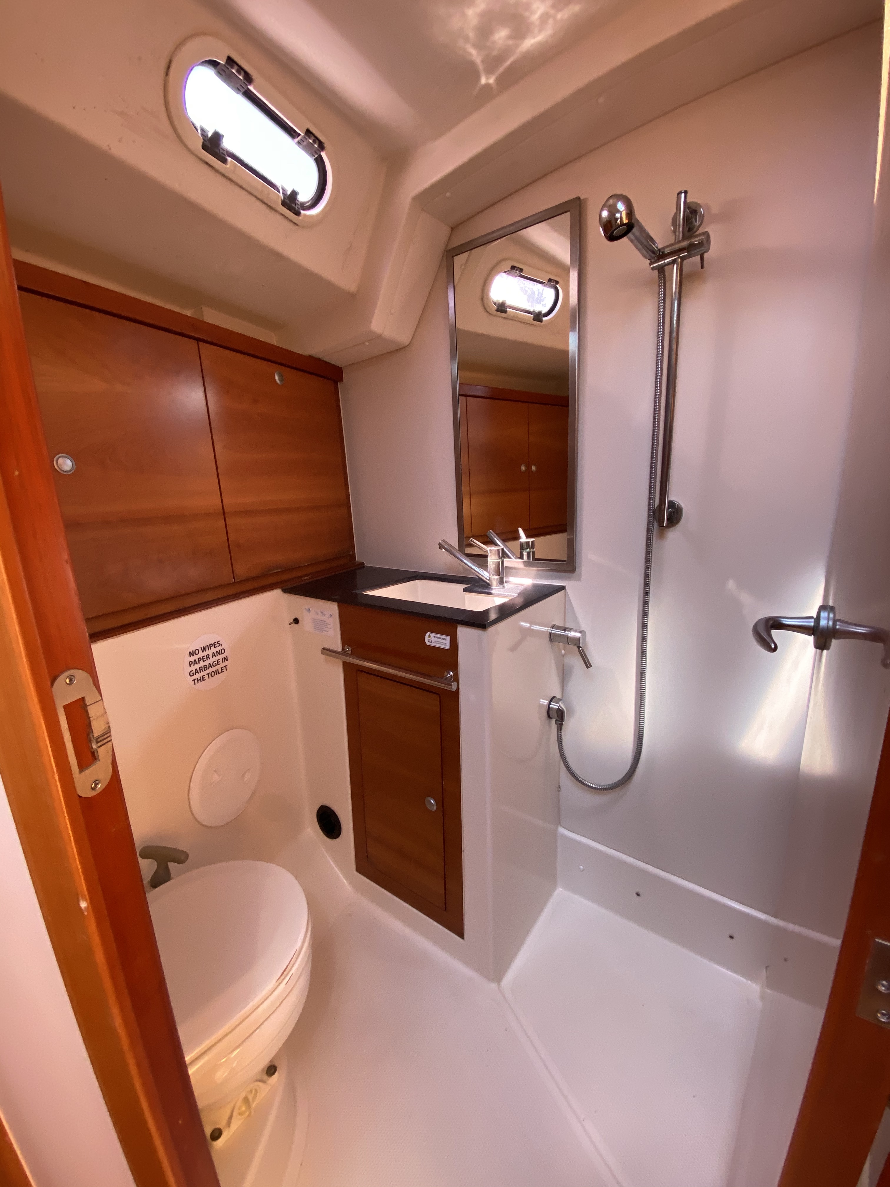 Log, speedometer, depth sounderCarte nauticheRiflettore radarAnemometroPilota automaticoAISElica di pruaGPSGPS chart plotter B&G - saloonBinocoloGPS chart plotter B&G - cockpitHarbor bookHandheld bearing compassEPIRB (distress radio beacons)SART 100 radar transponderKit di primo soccorsoAutomatic life jacketsEstintoriLifelines, lifebeltsSegnale sonoroAutomatic marker buoyVHF radio + safety batteryThrow lineBarra Timone di emergenzaZattera di salvataggioLifebuoy with lightVHF handheld GMDSS radioVHF emergency antenna230V plugUSB plug230V shore power connectionInverterPannelli solariWinch elettricoAnchor with chainAuxiliary anchor (reserve anchor)Cuscini in pozzettoSprayhoodTeak deck cockpitTenderScaletta per il bagnoBimini topParabordiTavolo in pozzettoManichetta acquaMezzo marinaioManiglia WinchTransom showerPasserellaLazy bagLazy jacksCucina a gasRefrigeratorsStoviglieAcqua caldaBarometroWC elettriciFans in all cabinsBeddingFusion radio, Bluetooth, USB, AUX inputFusion speakers in cockpit and saloonAttrezzatura per lo snorkeling