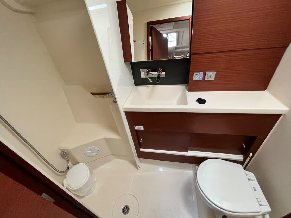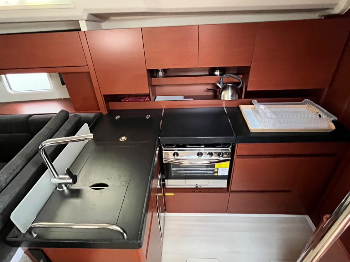 Bath platformAnchor chainParabordiCime di ormeggioTenderRoller blinds for deck hatchesSunshadesAnchor Lewmar Delta (in kg) (16)Blinds with mosquito netBasin with mixer tapAcqua caldaElectric fans in cabinsCoffee tableLED direct + indirect lightsMirror and storageBluetooth / FM / AUX / SD / USB player with interior & exterior speakers and remote controlWooden wine cellarSofaRefrigerator (130.0 L)WC rigid holding tank drain deck/seaConvertible saloon tableL-shaped setteeAutomatic shower water drainageBimini (2022)Sprayhood (2022)Rigid Boom Vang (2022)Lazy Bag (2022)Self-tacking Jib (2022)Lazy Jacks (2022)Riflettore radarEmergency helmSegnale sonoroRepair kitKit di primo soccorsoEstintoreDistress flare boxHorseshoe lifebuoyCinture di salvataggioGiubbotti di salvataggioZattera di salvataggioTorciaToolboxGMDSS - Global Maritime Distress and Safety SystemBosun's chair (boatswain's chair)Boat DocumentsAttrezzatura per lo snorkelingBoa galleggianteStazione VentoLED navigation lightsPilota automaticoChart & pilot bookManuale dei FariBussolaElica di pruaCompassoCarte nauticheGPS in the cockpitDepthsounderSolcometroAnemometroSet di navigazioneRadio VHFElectronic instrumentsEPIRB (Emergency locator beacon)Stazione VentoChartplotter220V sockets in cabins and the saloonBilge pump - electricSalpa ancora elettricoPlug 220V/12VBilge pump - mechanicBatterieWater pumpShore connection cable 220VEngine AlarmBoilerUSB sockets in cabinsPannelli solariPillows & Pillow-casesCoperteLenzuolaTowels (2 per person)Gas StoveGas OvenCongelatoreFrigoriferoStoviglie