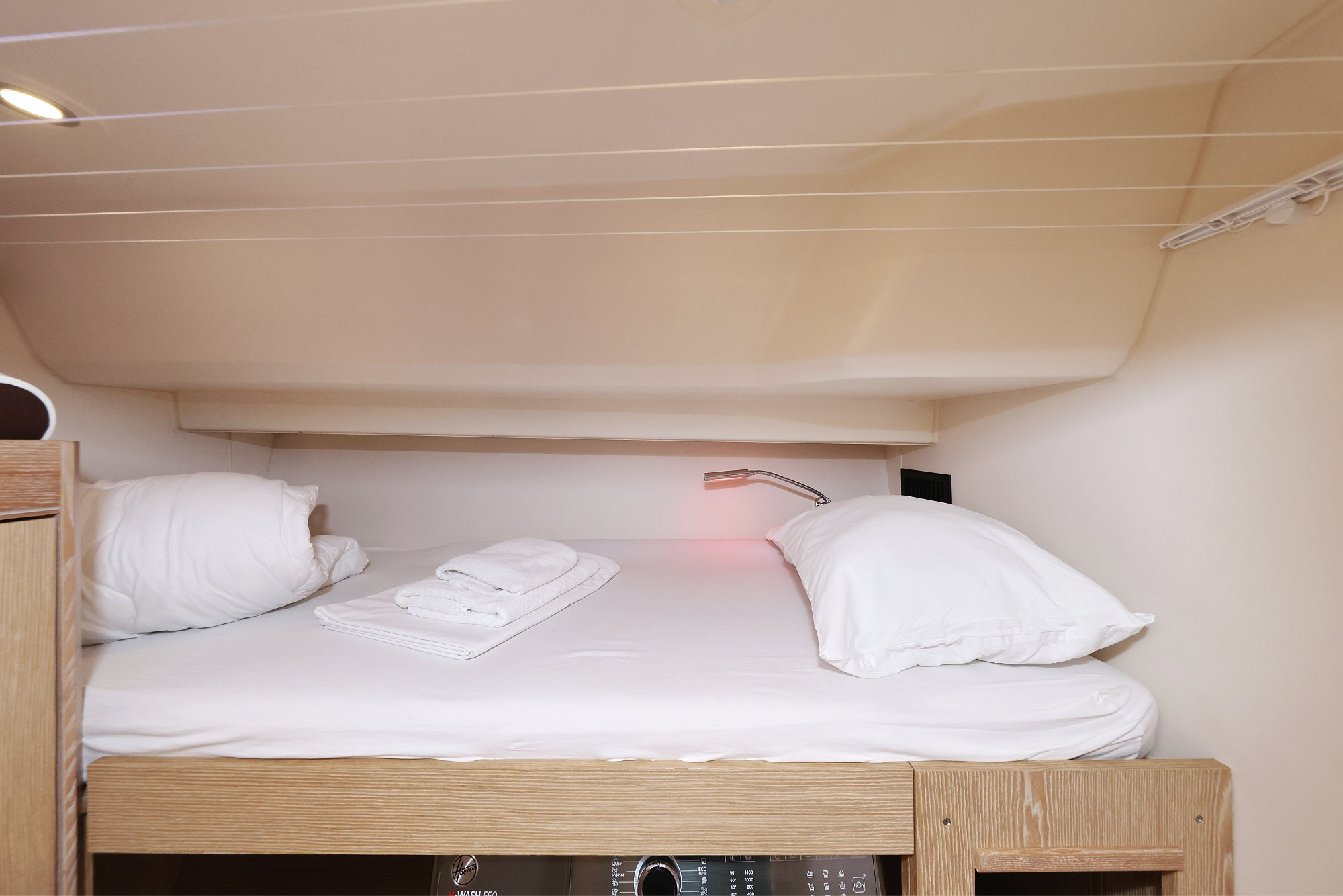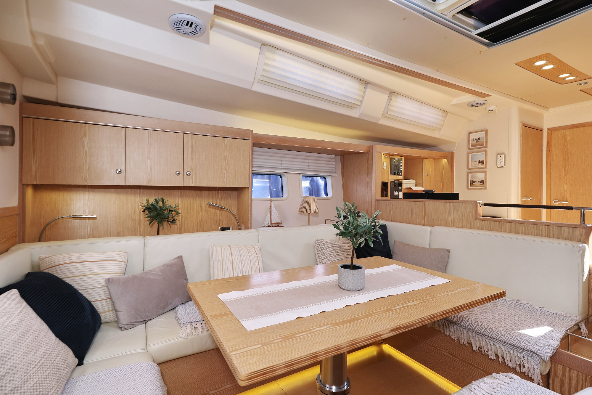 DishwasherNespresso coffee machineWashing machineCongelatoreRefrigerator FornoCucina a gasKitchen utensilsLavelloWeber Gas GrillPillows/blanketsNew High Quality mattresses in forward and aft cabinsIndor Shower in each headUnderwater LightsElica di Prua40'' flat screen TVPC/keyboard/mouse/printerXbox console with gamesFusion multimedia sound systemInterior and exterior speakers with subwooferBimini topHydraulic platform with remoteSprayhoodOutdoor Shower with Hot and Cold Water40kg Anchor with 100m Stainless Steel ChainVolvo Penta 110hp Diesel EnginePilota automaticoSolcometroTV in salonWi-Fi InternetRadio InverterManual flushNew 2x 12'' B&G External GPS PlottersWeather StationZattera di salvataggioFull baten main sailSelf tacking jibCode 0 optionalElectric Main WinchesAir Condition (salon+cabins)GeneratoreSTARLINK 300 Mbps Sunshade on boomSun Cushions on Deck and in CockpitDinghy with OB2x Sun LoungersFull Teak