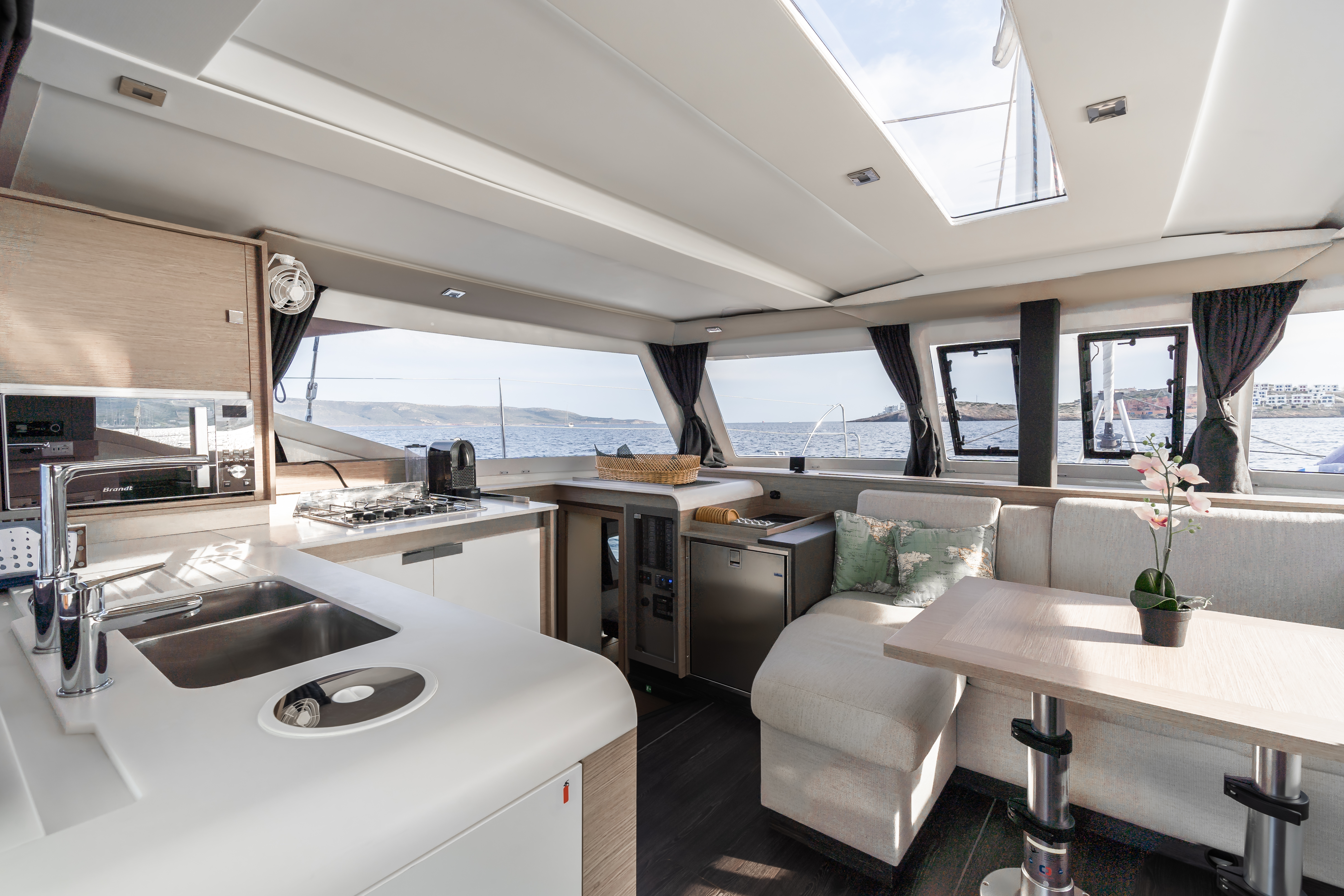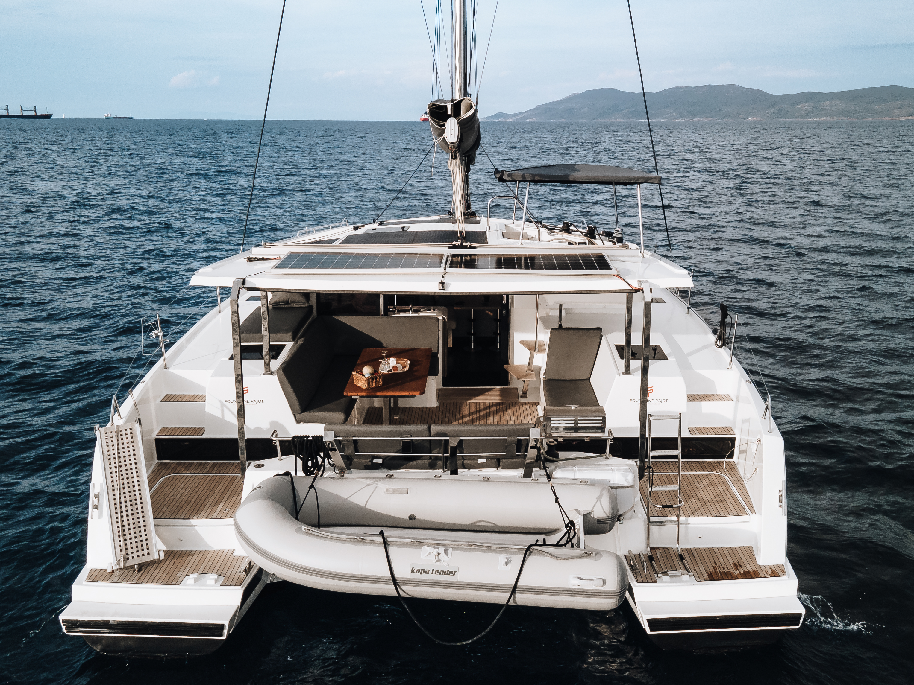 Smart TVSun padsAudio systemInside speakersAltoparlanti esterniSnorkel setSandwich toasterAria condizionataKitchen utensilsRiscaldamentoCoffee machineFornoPillows & blanketsFrigoriferoWater makerCongelatoreLavelloBBQOutside showerWaste tankWC elettricoPilota automaticoGPS PlotterBiminiTenderPannelli solariWinch elettricoGeneratoreFlybridgeInverter