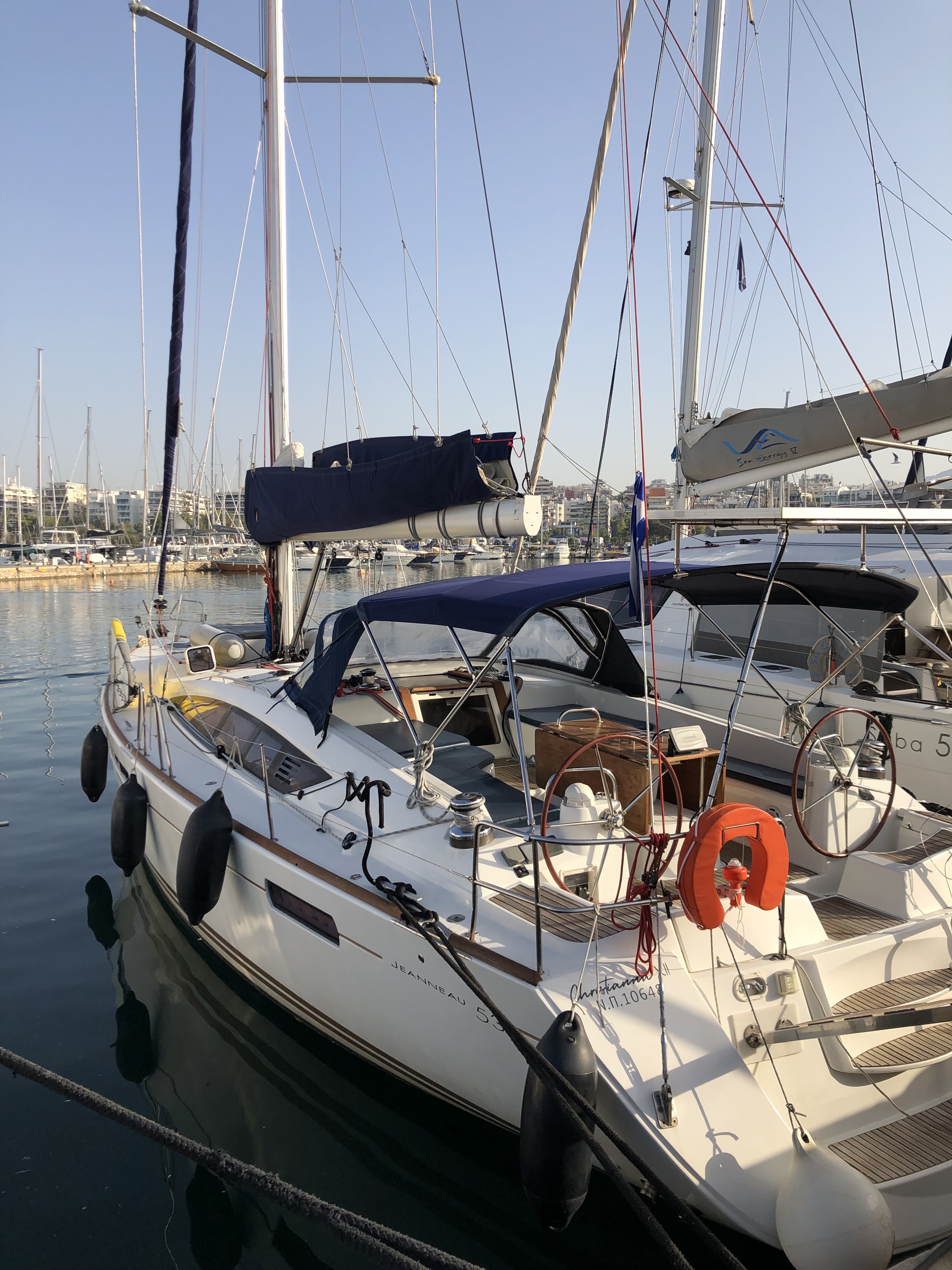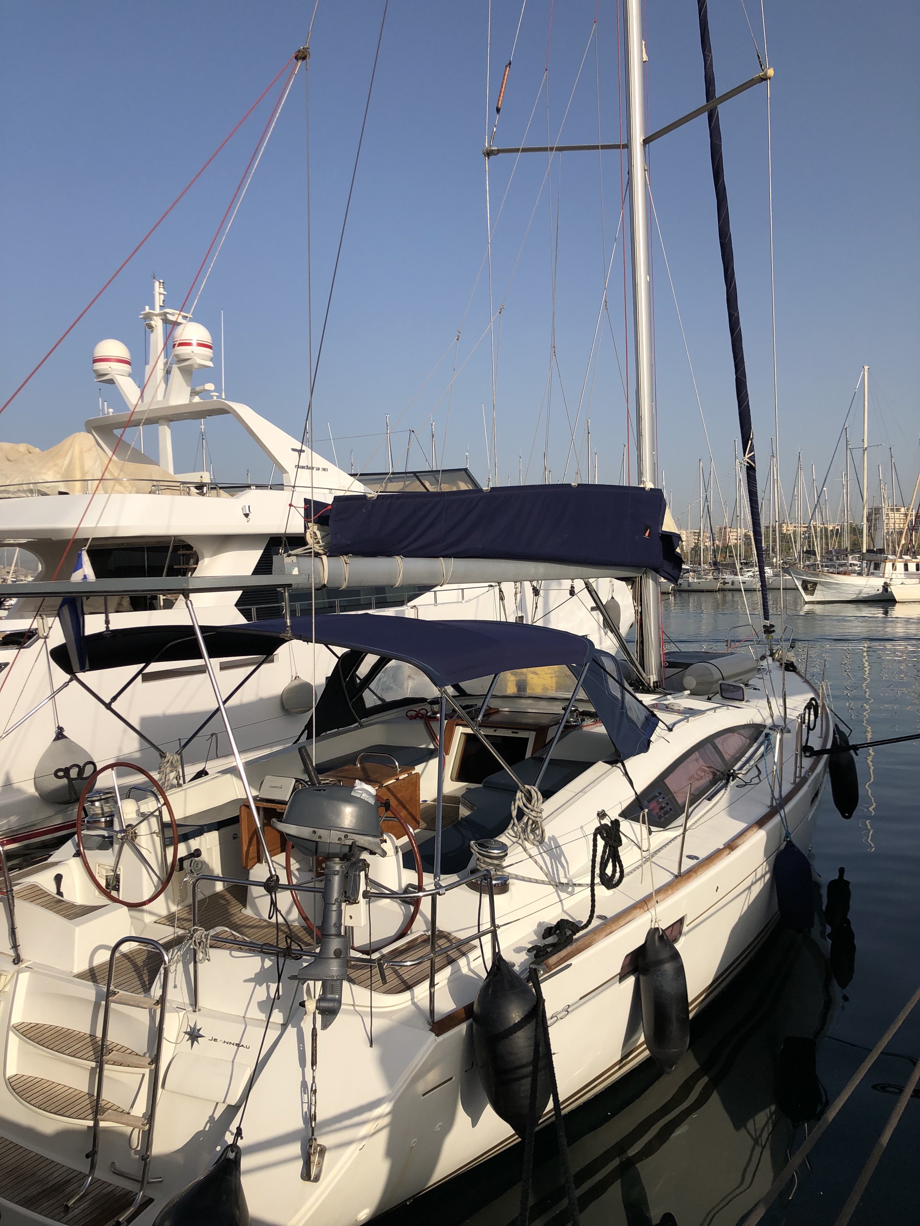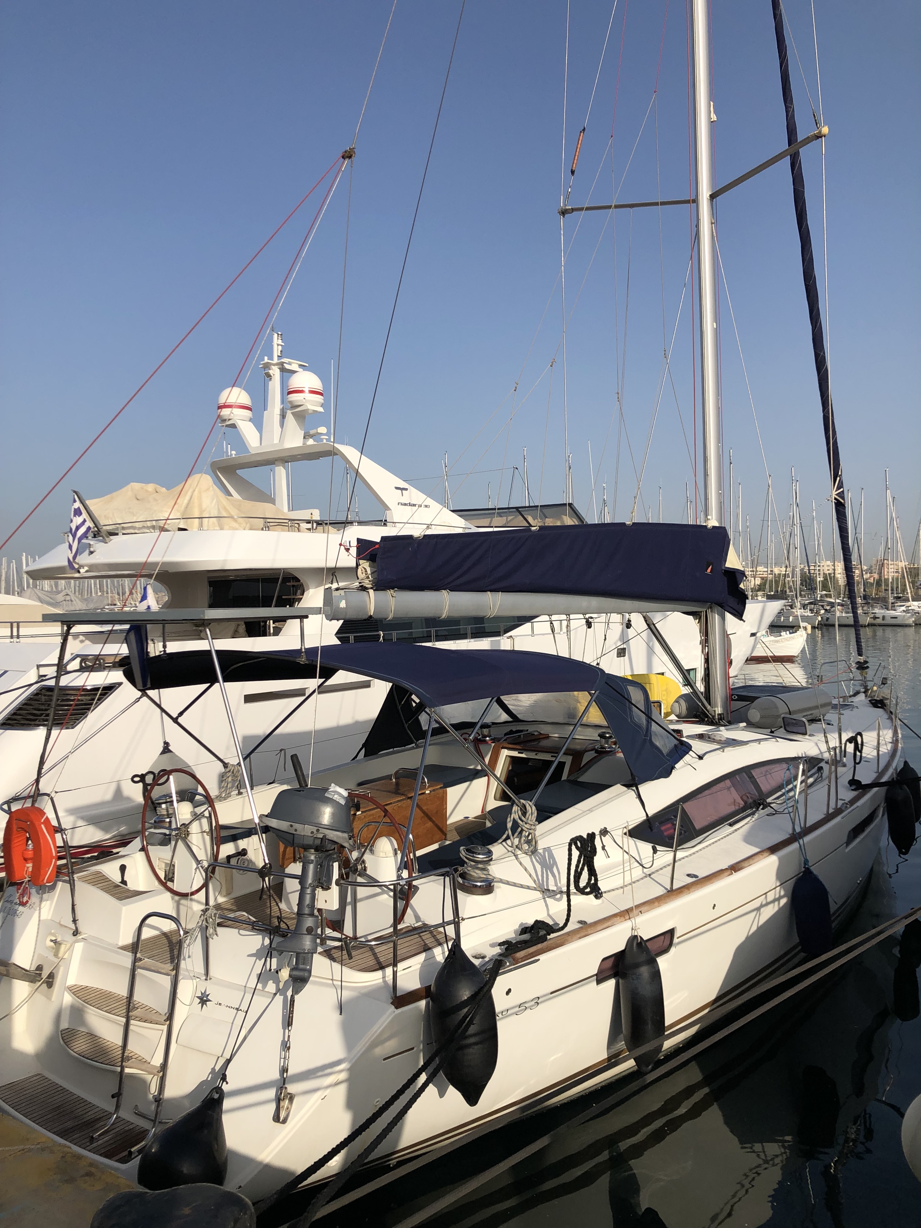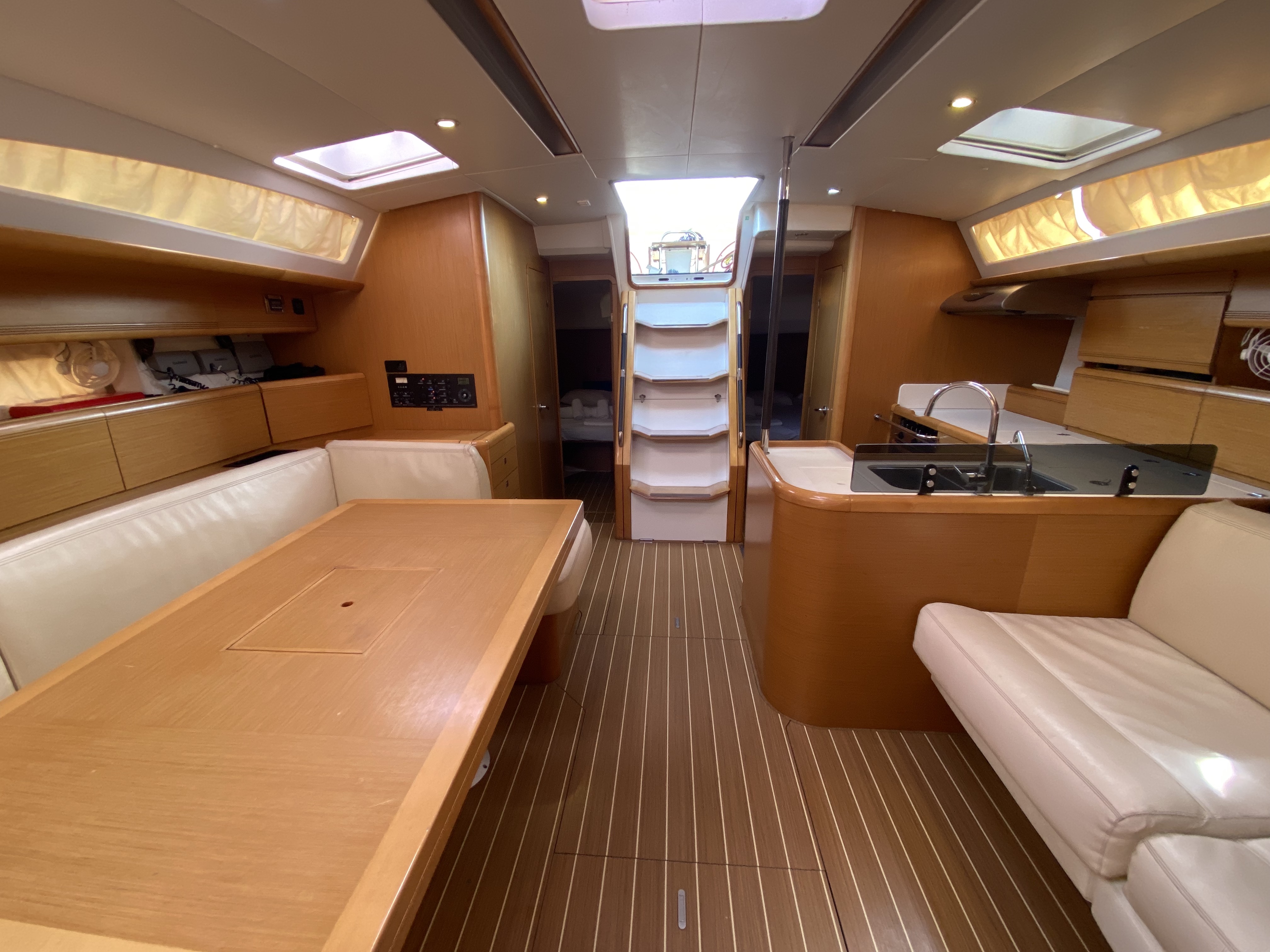 GeneratoreAuto pilotTachimetroStazione VentoDepth meterVHFGPS PlotterRadio CD PlayerAirConditioningUSB ports besides 220V plugs in all cabinsElica di pruaSalpa ancora elettricoCockpit table Cockpit ice-boxDoccetta in pozzettoSteering wheels *2SprayhoodElectric FridgeAcqua caldaAltoparlanti in pozzettoShore Power 220 VTenderNespresso coffee machineBiminiInternetDeck speakersTenderOutboard 4 HPWater toysWater Maker