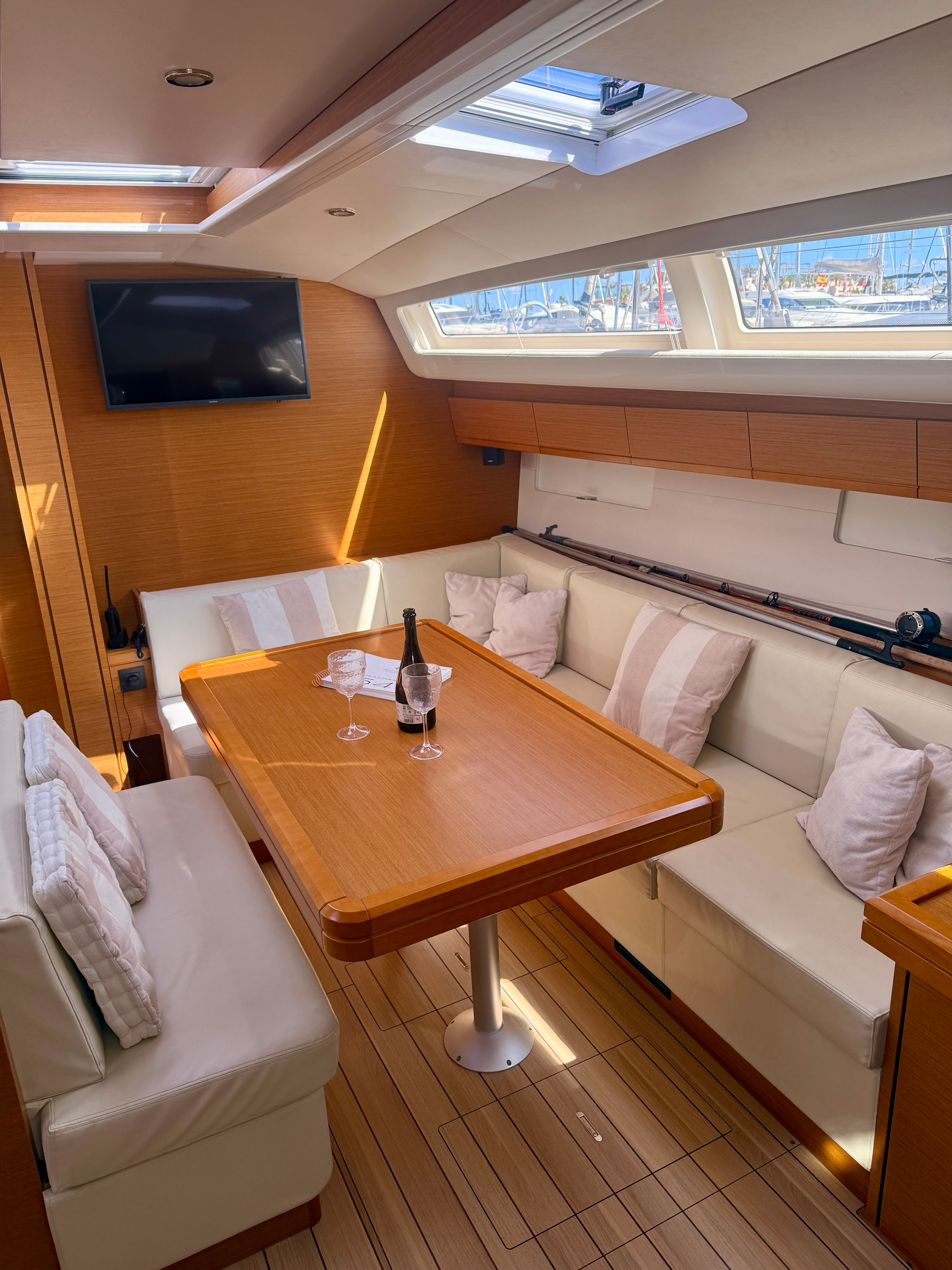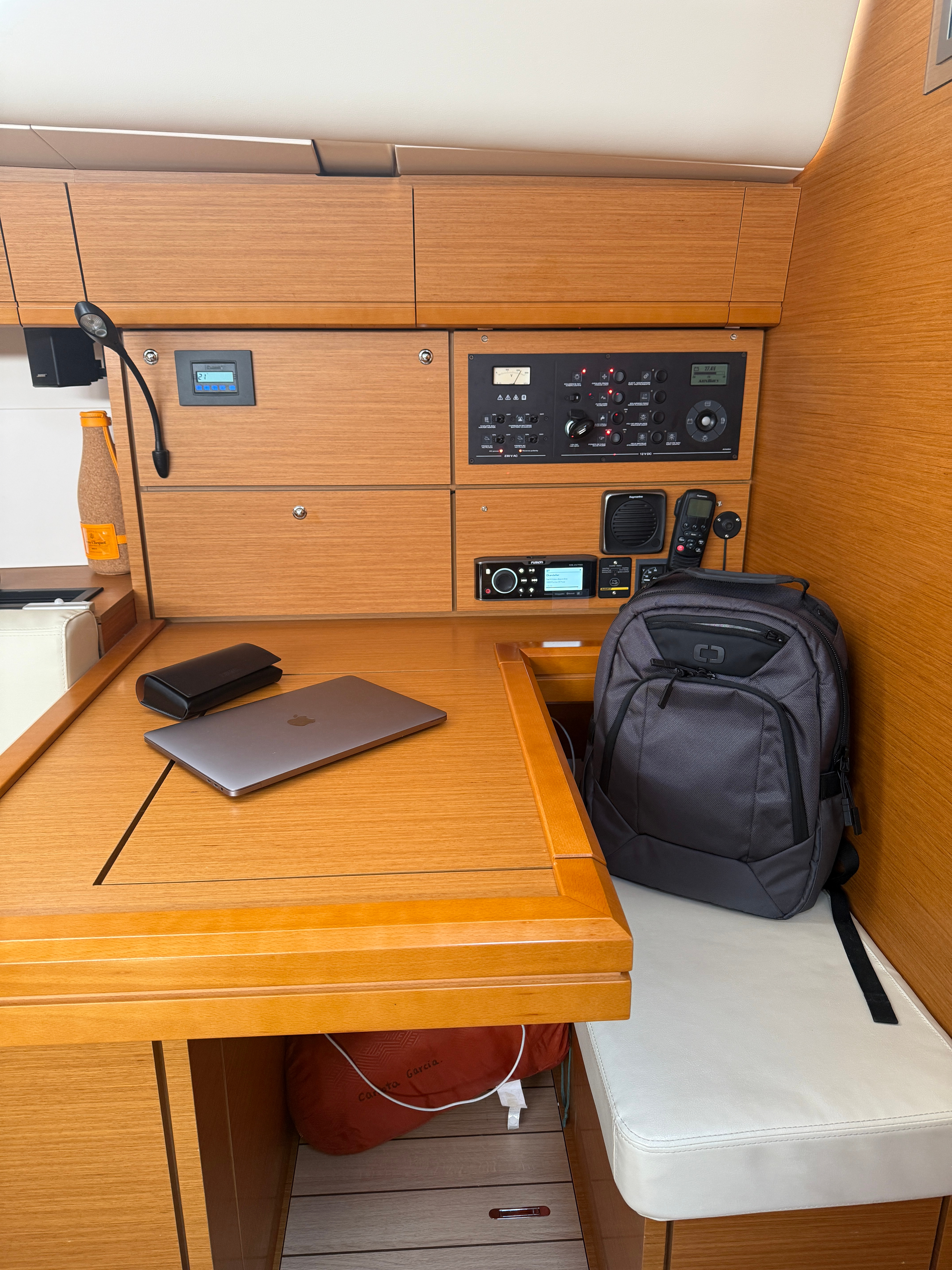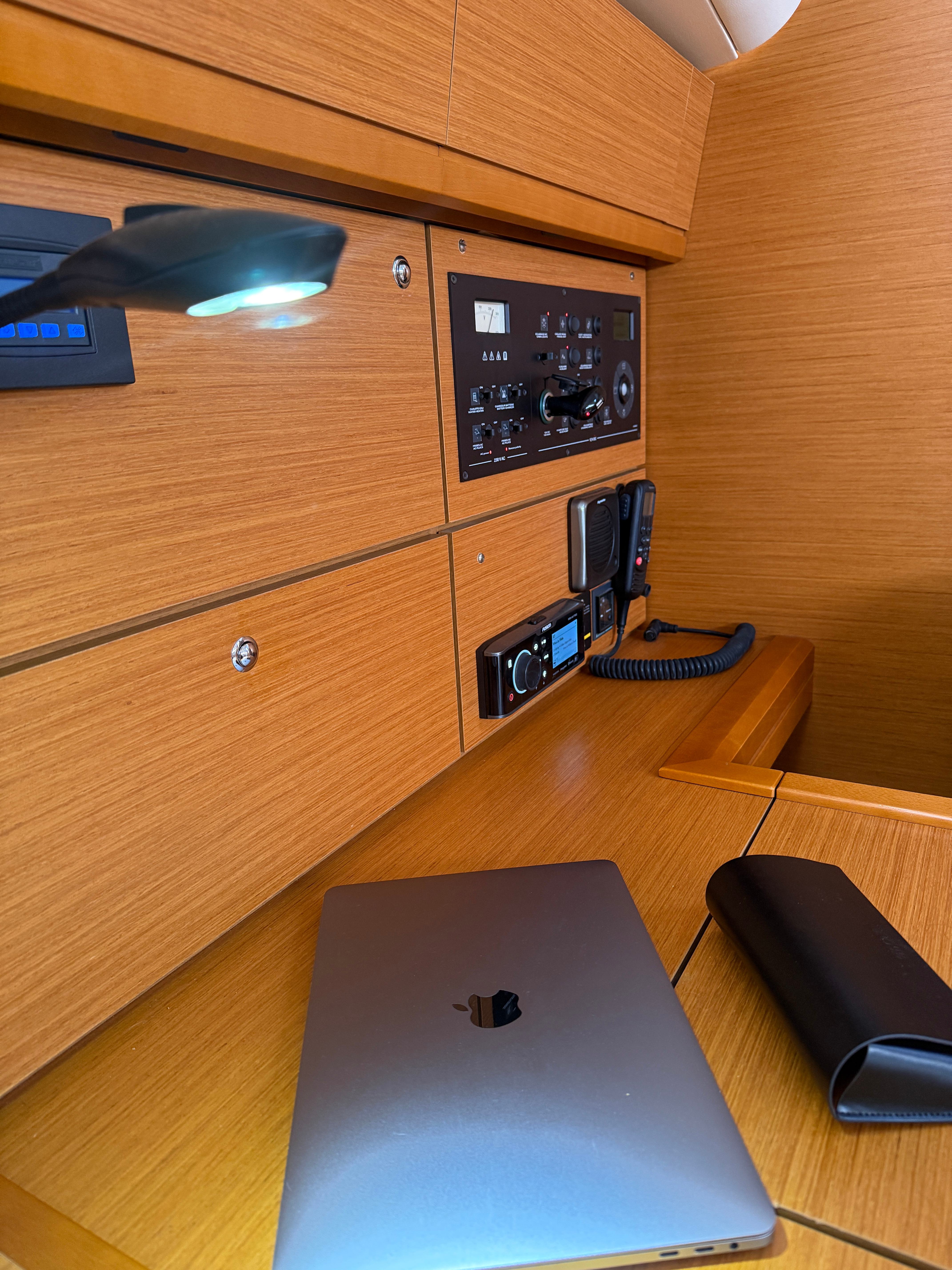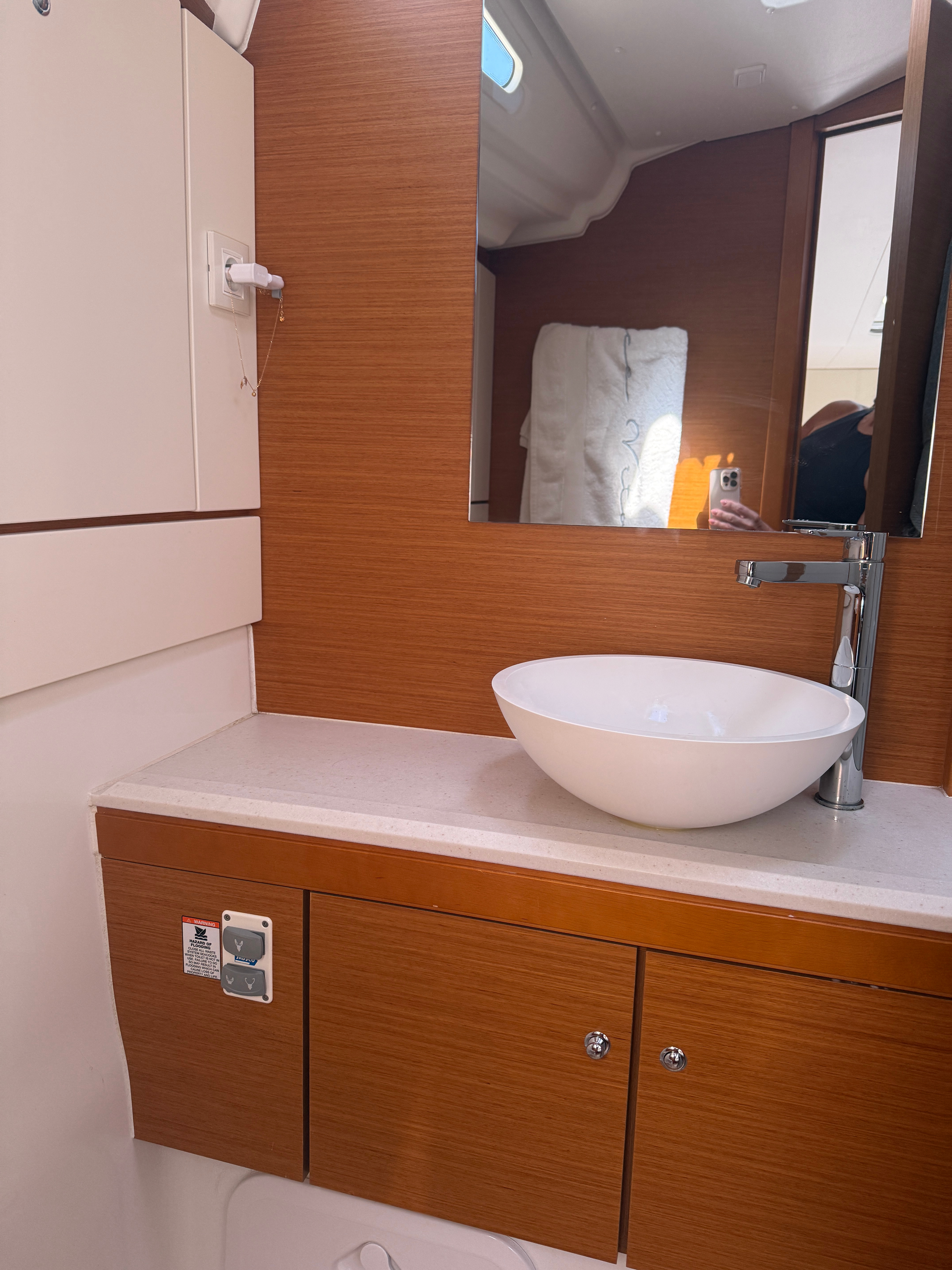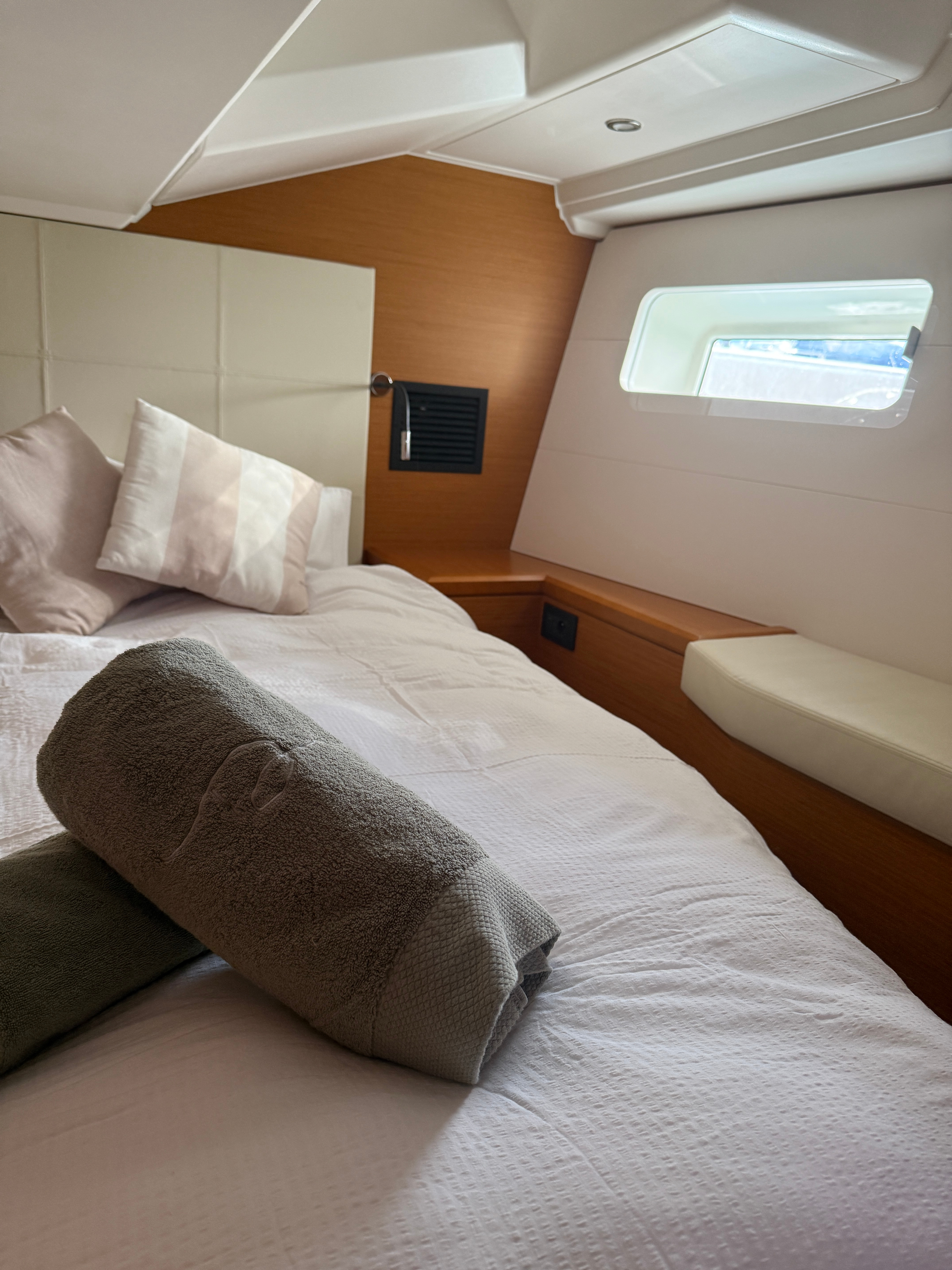 Desalination plantHélice de proaForno220V powerAria condizionataDesalination plantTenderRiscaldamentoAcqua caldaForno a microondeNespresso coffee machineOutboard motor (2.5hp)RadioSafeElica di pruaFornoFrigoriferoTVPannello solareElectric wincherBiminiConverterPonte in teakSoundGenerador