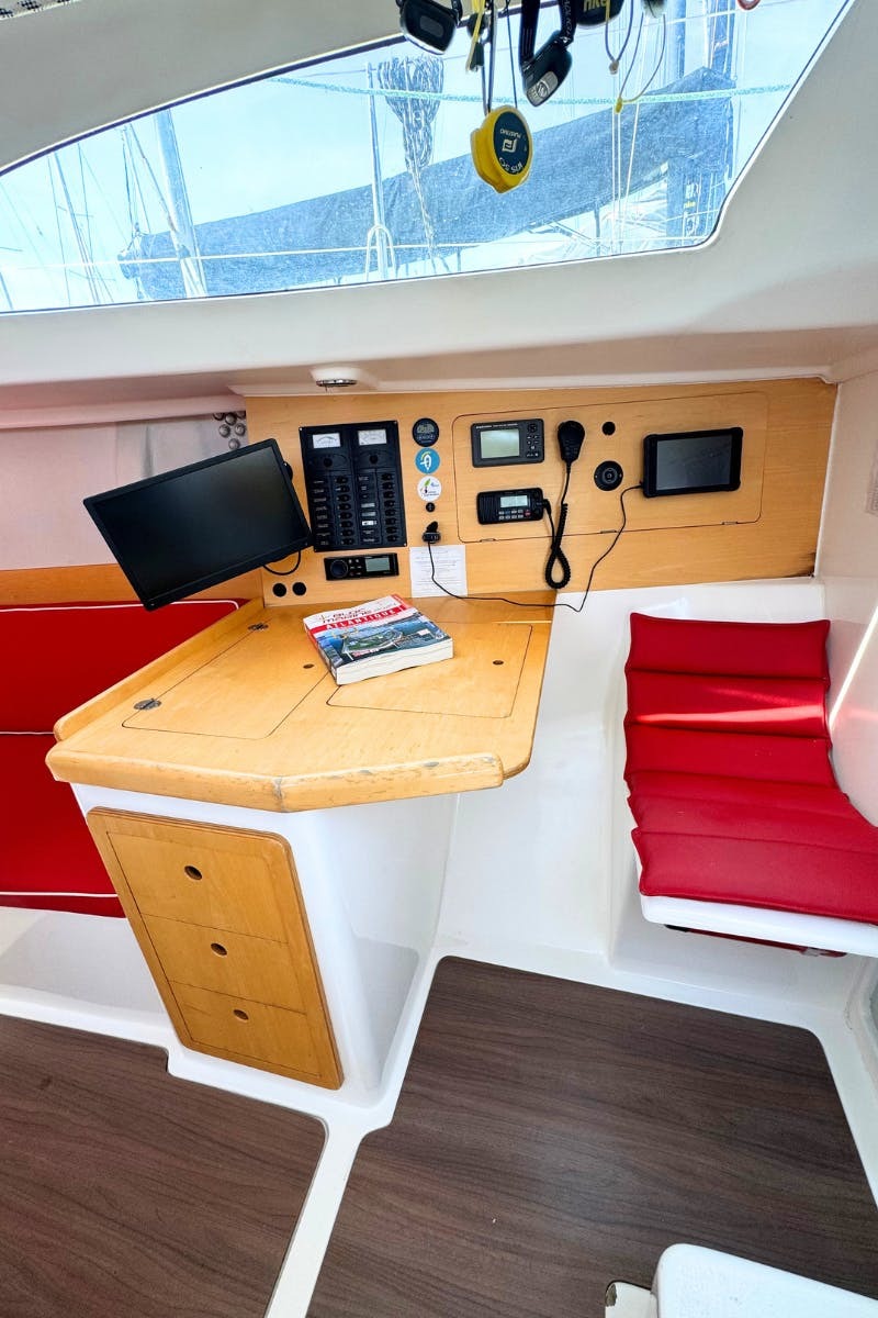 Lazy BagFrigoriferoVHFGPSNavigation softwareDoccetta esternaCuscini in pozzettoNautical guides and mapsPilota automaticoAIS Transmitter / ReceiverGiubbotti di salvataggioSafety materialKitchen utensilsNautical guidesPressurized hot water