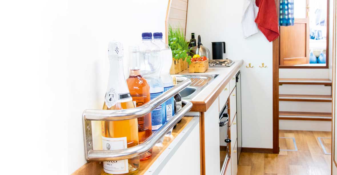 Plancetta Specchio di PoppaOutdoor showerScaletta per il bagnoCrockery, cutlery, pots, pans and cooking utensilsFrigoriferoGas hob and gas ovenForno12V socketsShore power connection230V socketsElica di pruaSteering positionWC elettriciHot water heatingFish finder/ echo sounderAudio system