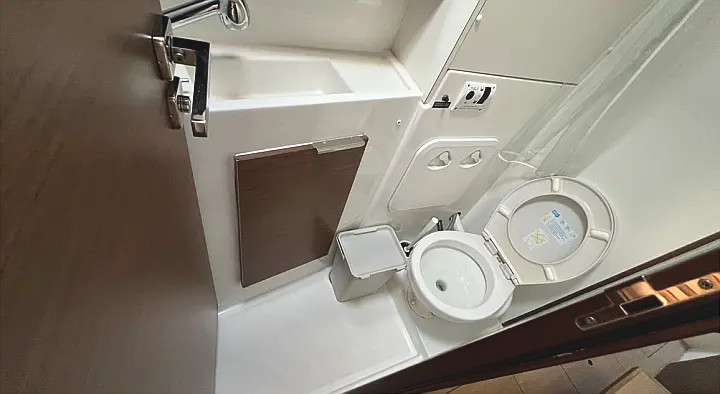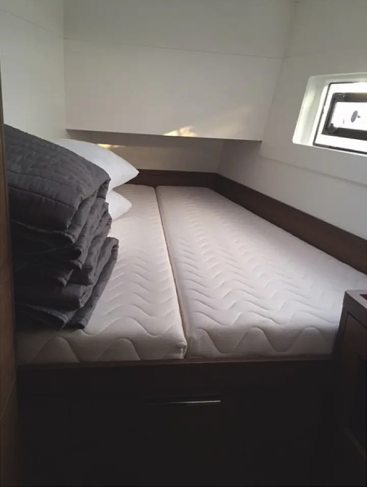 VHFAir ConditionConvertible saloon tablePannelli solariBluetoothElectric Fans in cabinsRadio-CD PlayerStovigliePilota automaticoGPS plotter esternoSolcometroWind-depth-speed instruments