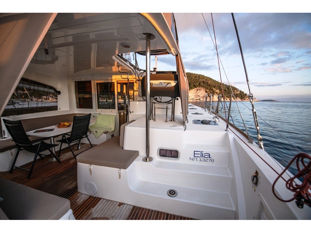 Zattera di salvataggioTenderHorseshoe BuoyGiubbotti di salvataggioCinture di salvataggioSalpa ancora elettricoTavolo in pozzettoFuoribordoBimini Top220V Shore powerLazy jacksCuscini in pozzettoFixed GangwayTenderSnorkelling equipmentWooden cockpitWinch elettricoPannelli solariAria condizionataCaricabatterieBerth in port bow comp.Convertible table in the saloonFrigoriferoEl. toiletsExtra water tankFans in cabins/saloonGeneratoreAcqua caldaInverterPax onboard (max)USB sockets in cabinsWater makerWC/Shower+sink in starb bow compartmentGPS PlotterTachimetroVHFEcoscandaglioWind SpeedPilota automatico