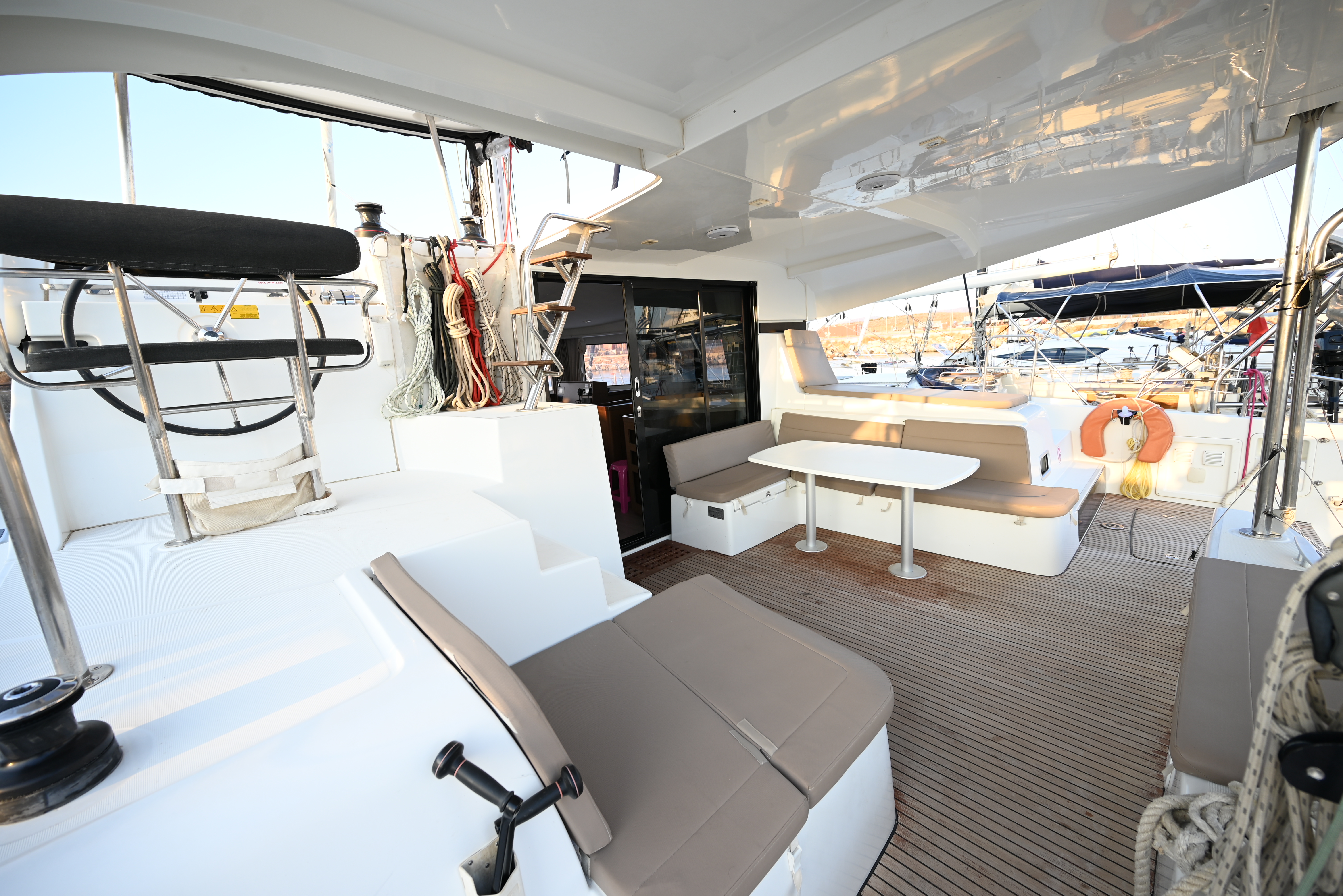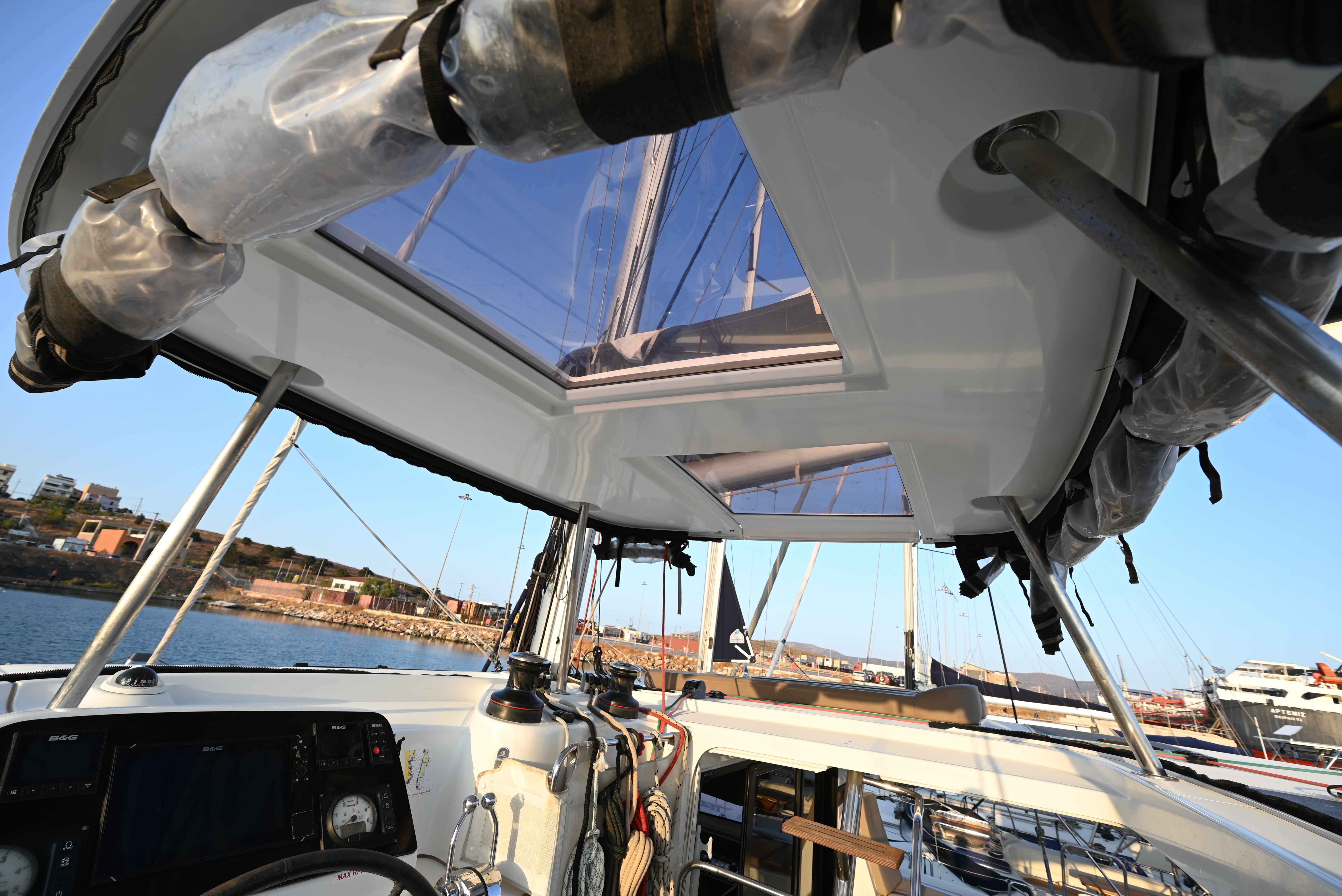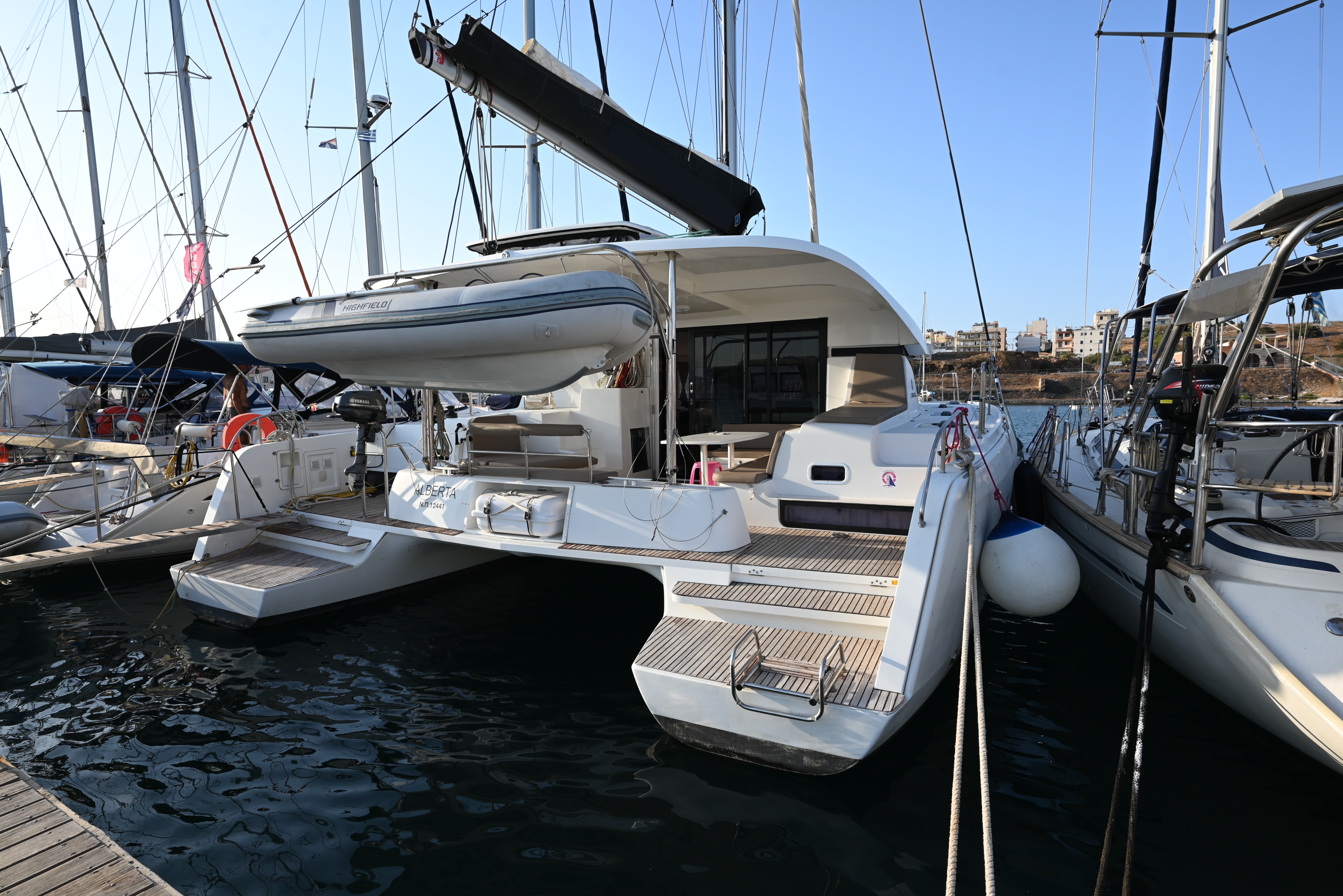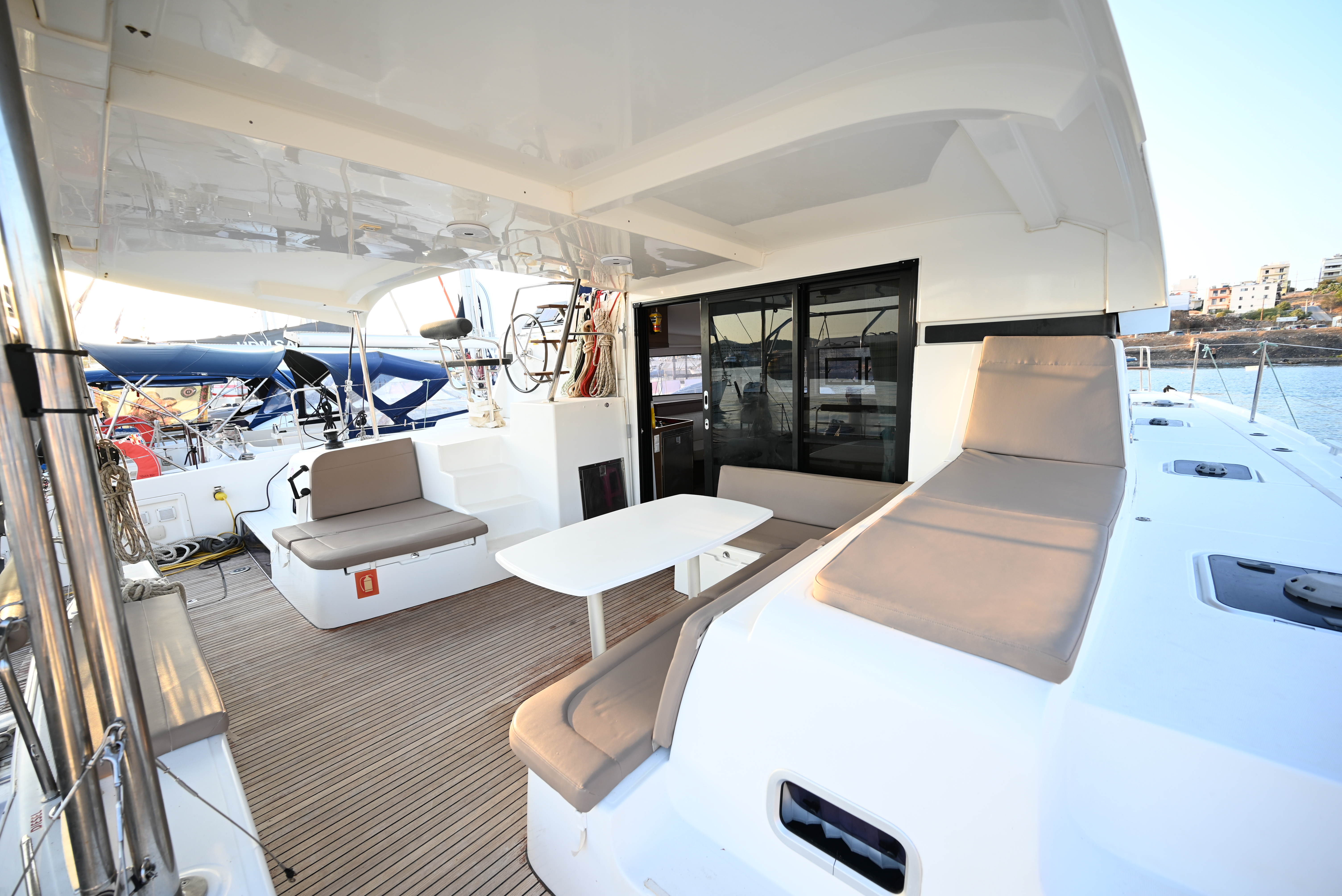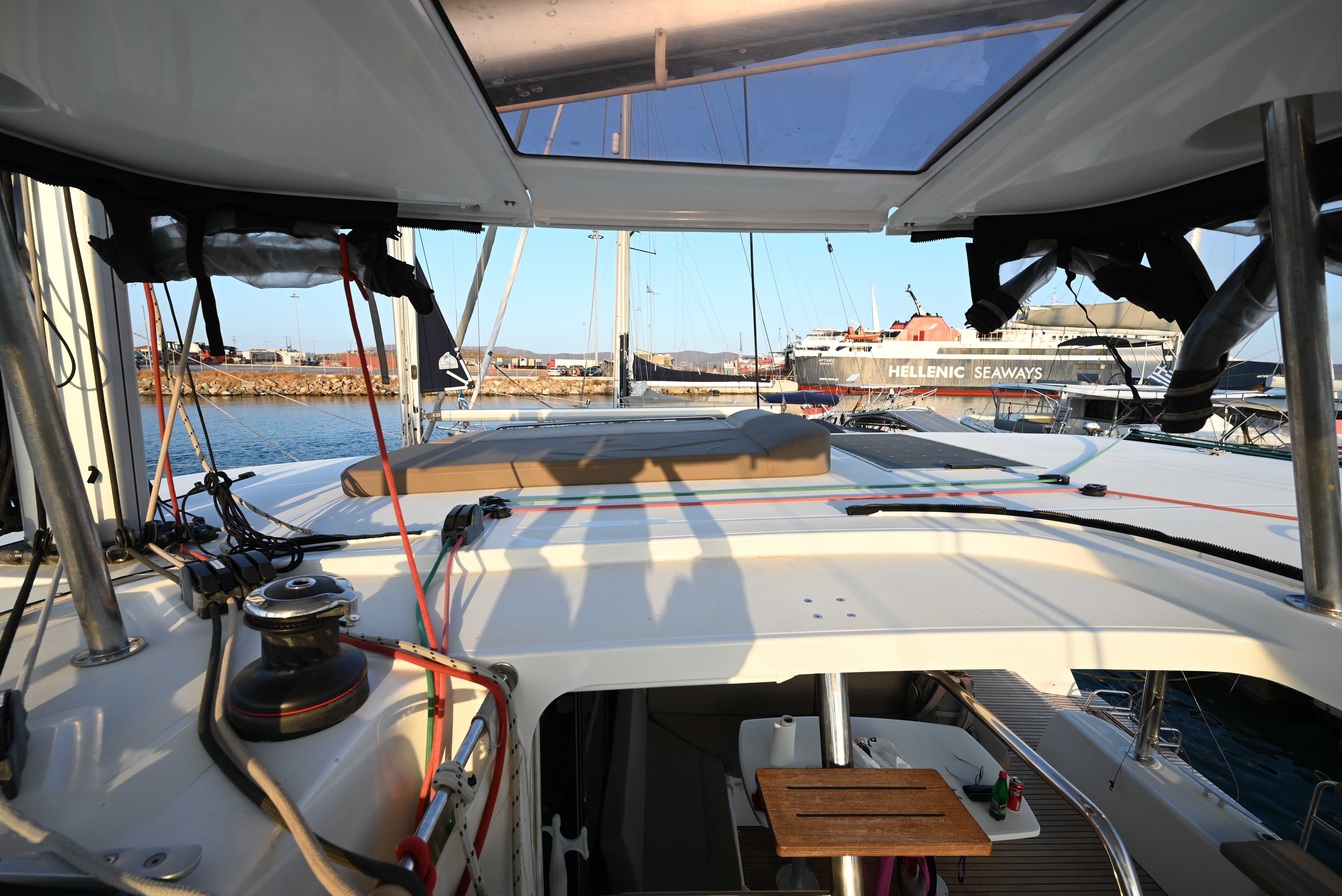 Aria condizionataGeneratoreWatermakerAltoparlanti esterniCoffee machineBombole gasBimini topCockpit/sternDoccetta in pozzettoSprayhoodPonte in teakStazione VentoWind instrument/AnemometerPasserellaLazy bagLazy jacksAcqua caldaCabin FansLenzuolaAsciugamaniConvertible table220 volt socket