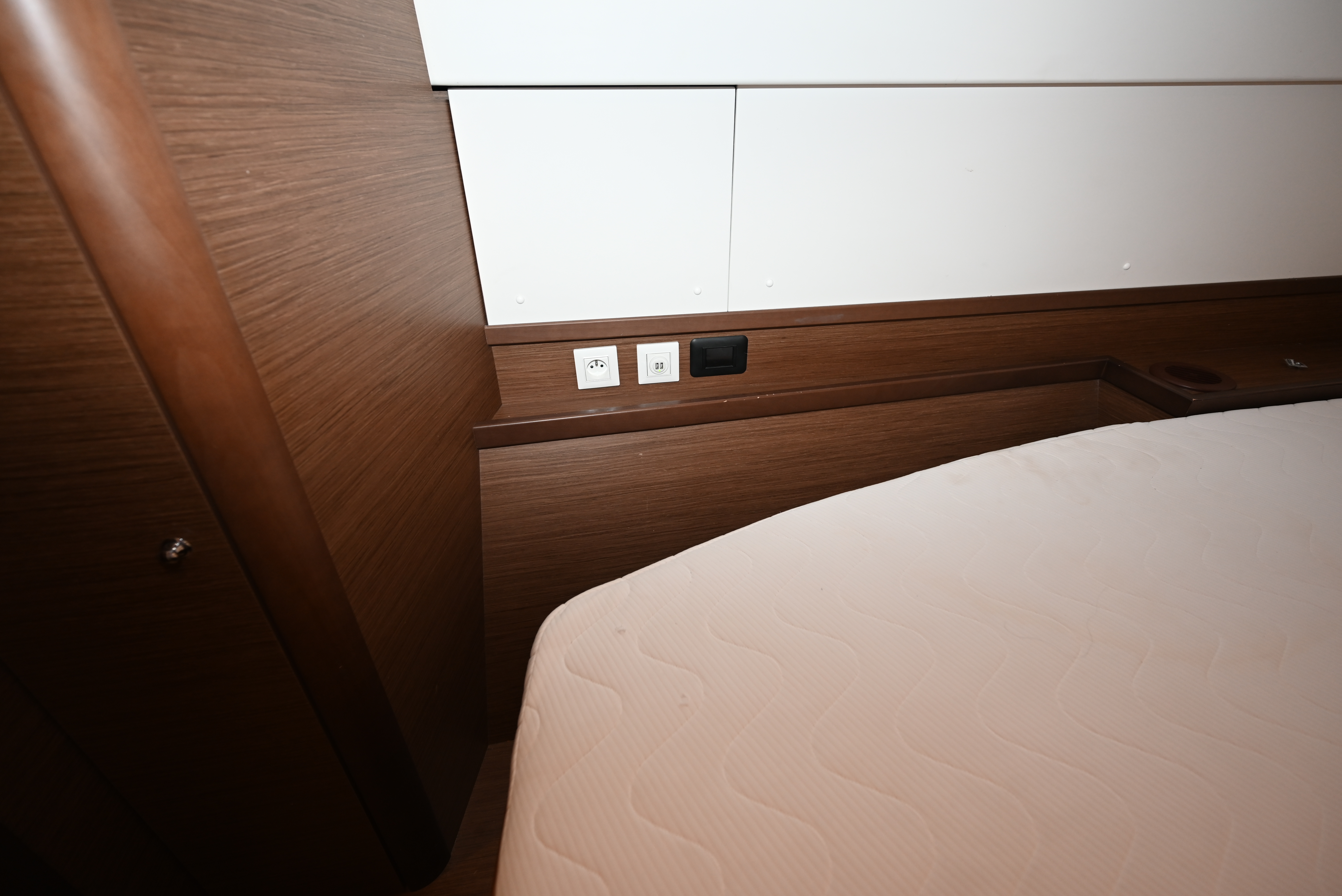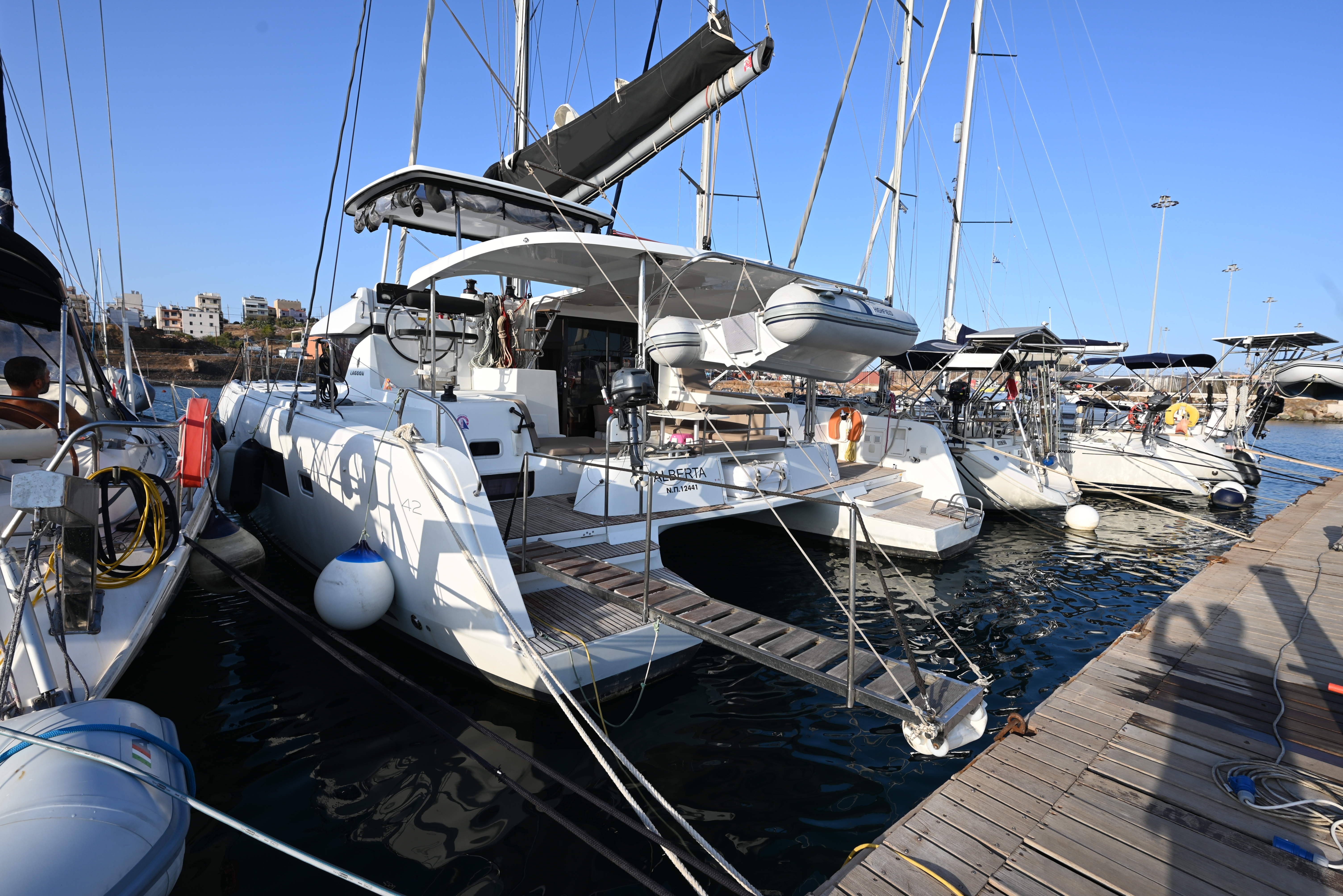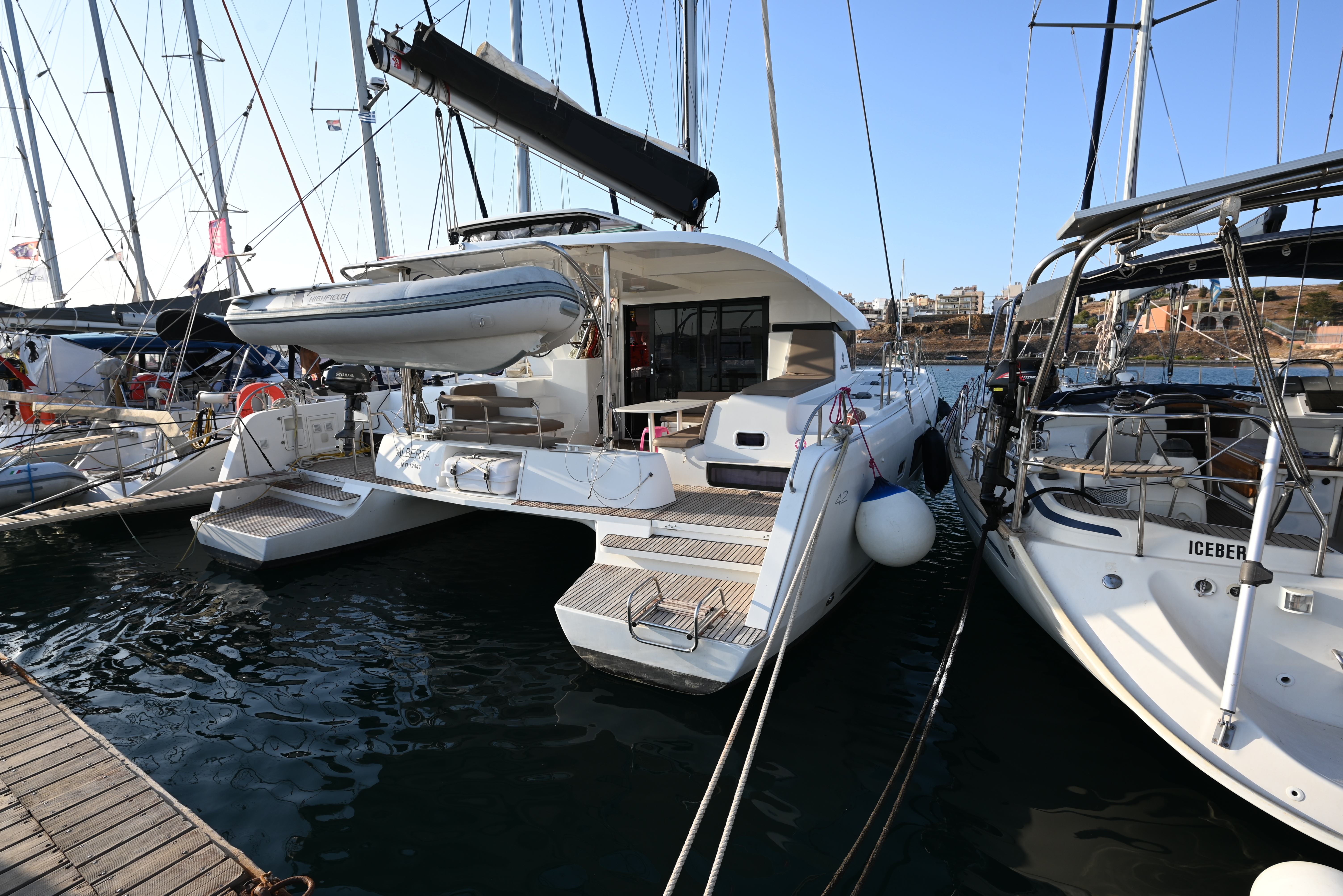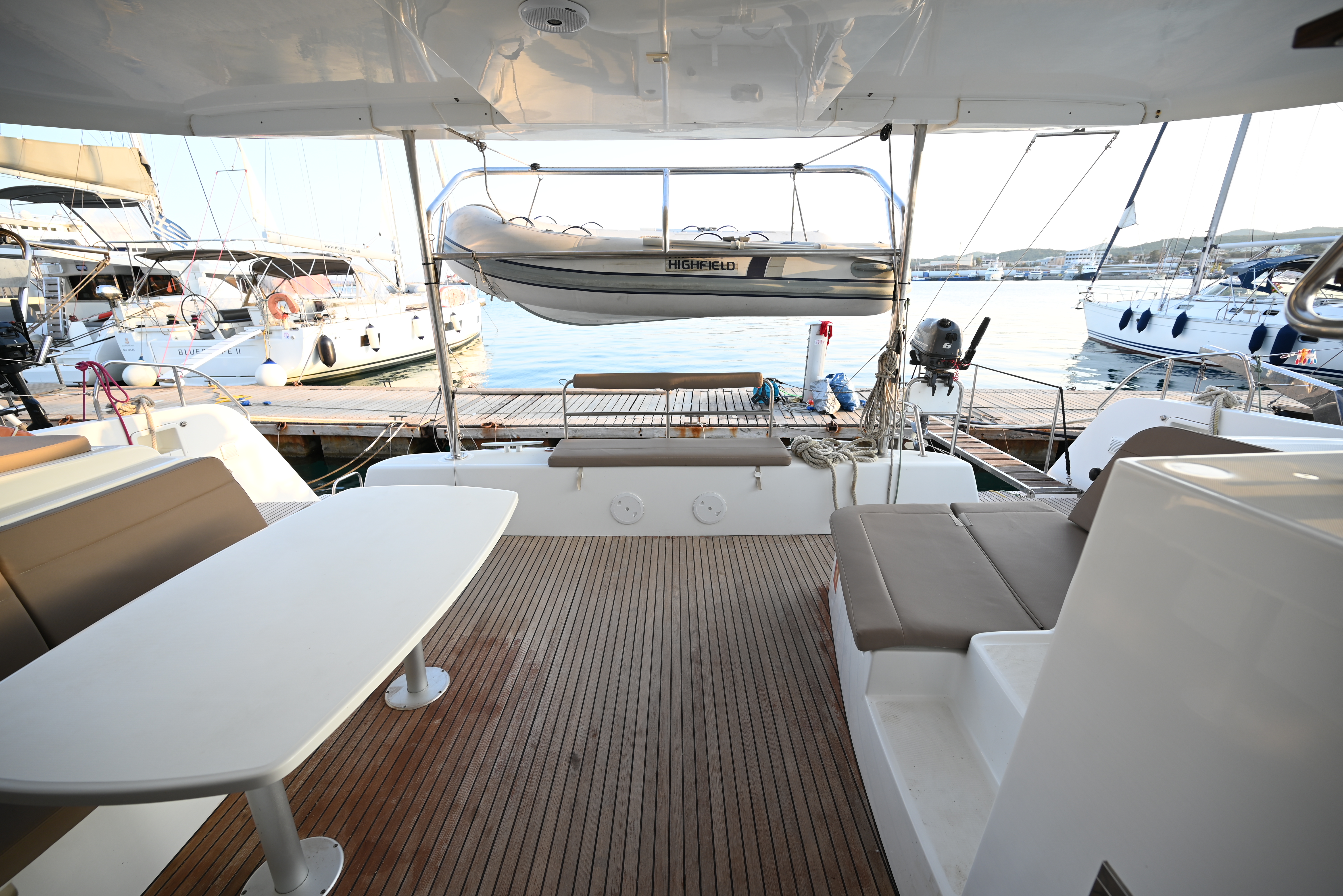 Aria condizionataGeneratoreWatermakerAltoparlanti esterniCoffee machineBombole gasBimini topCockpit/sternDoccetta in pozzettoSprayhoodPonte in teakStazione VentoWind instrument/AnemometerPasserellaLazy bagLazy jacksAcqua caldaCabin FansLenzuolaAsciugamaniConvertible table220 volt socket