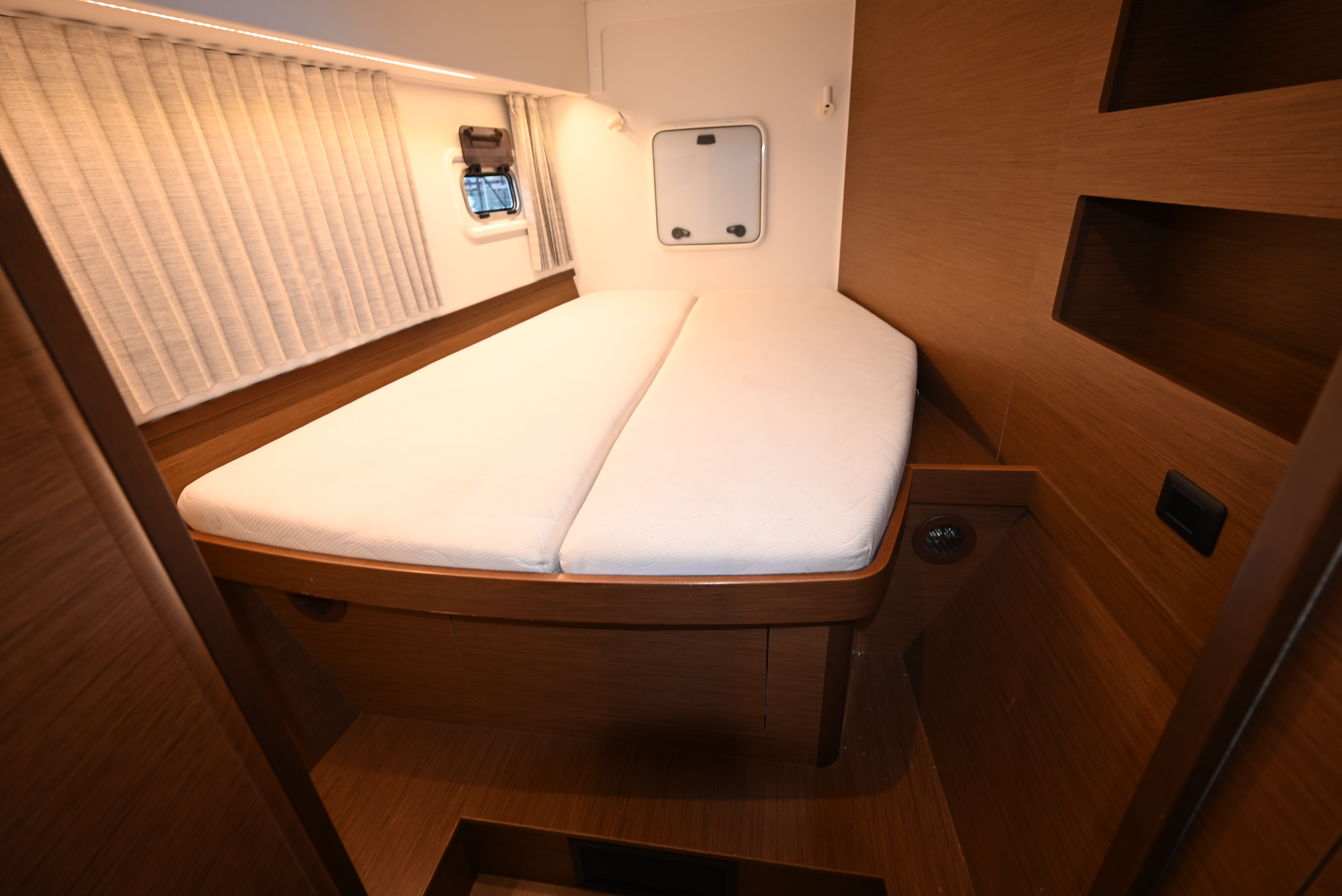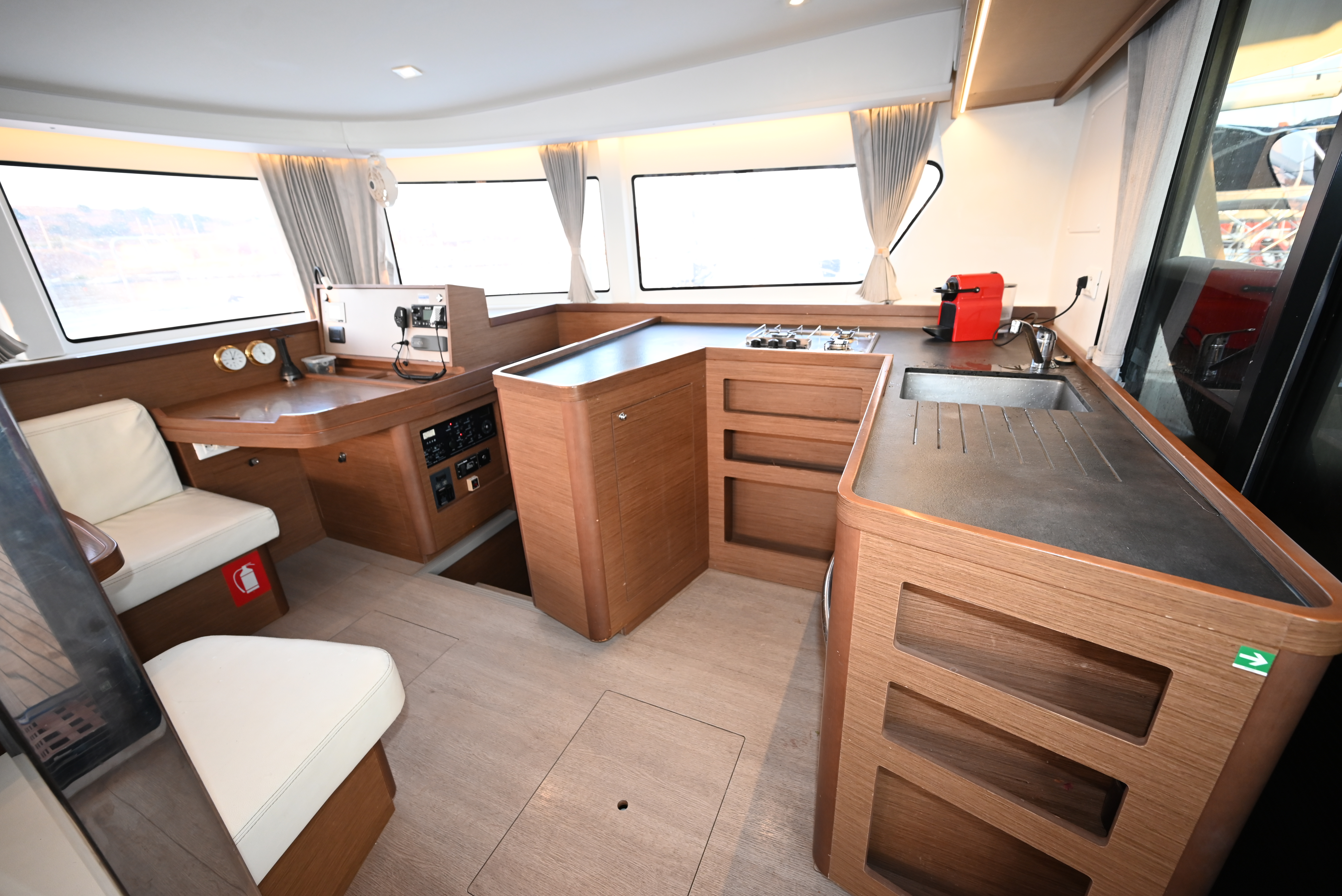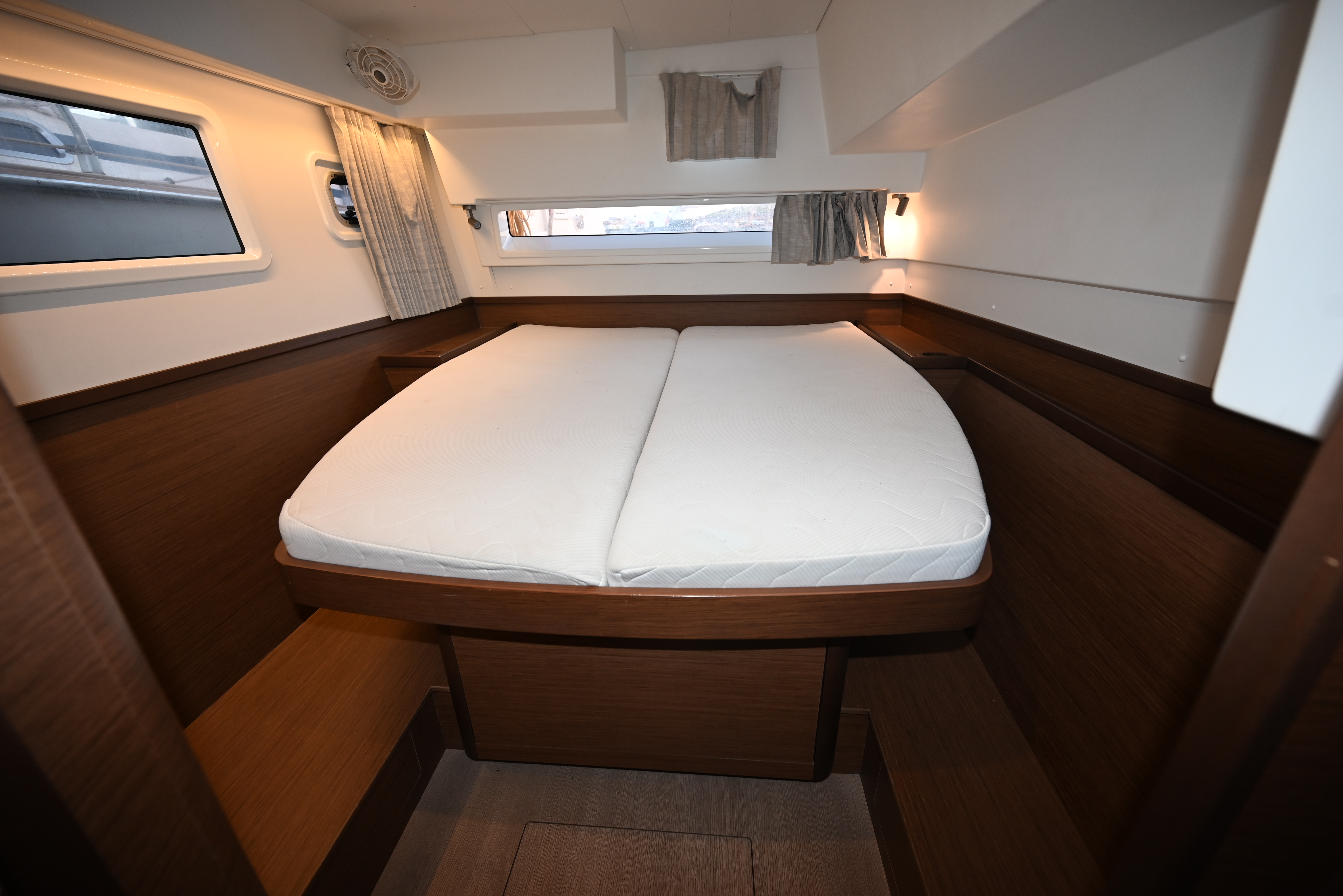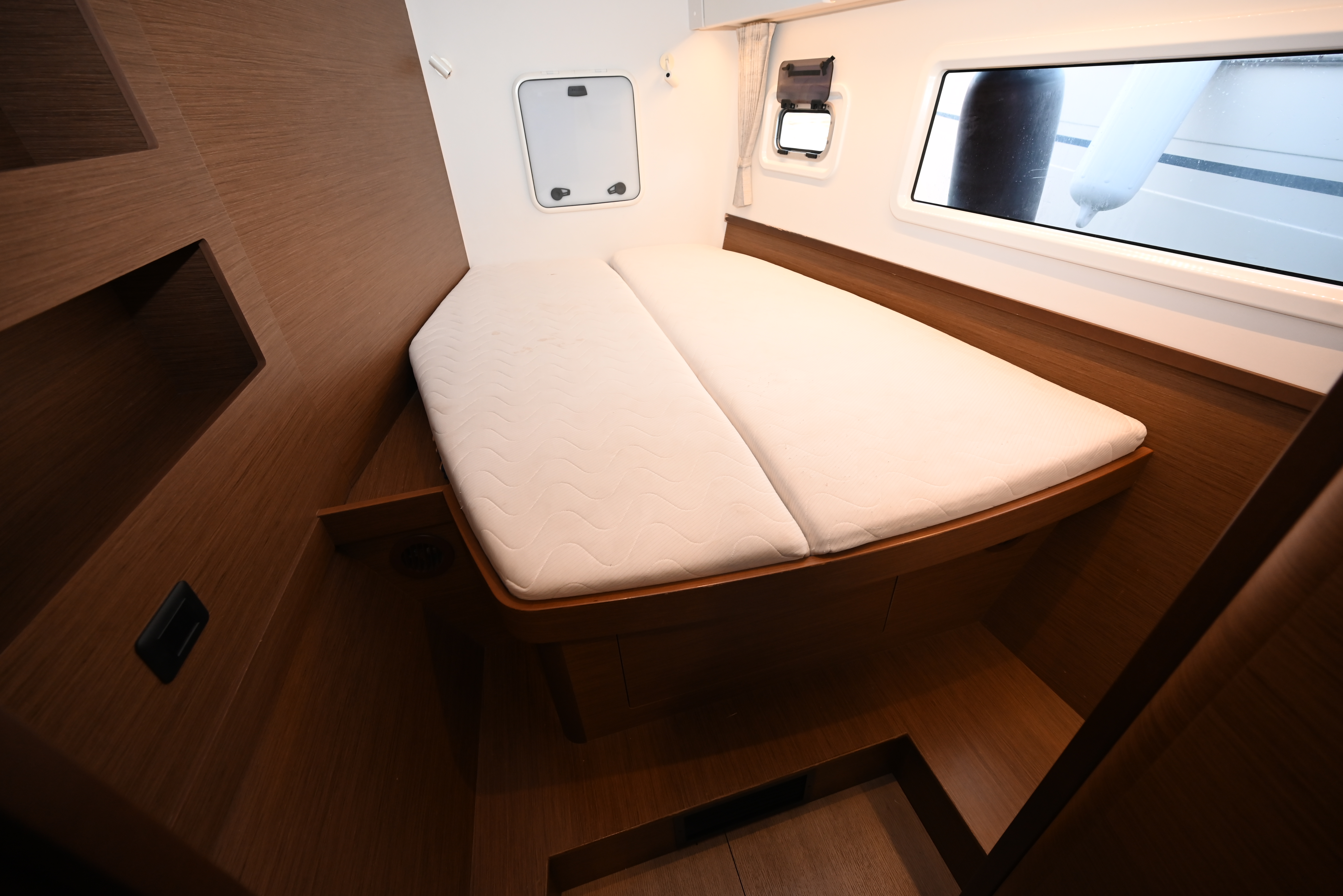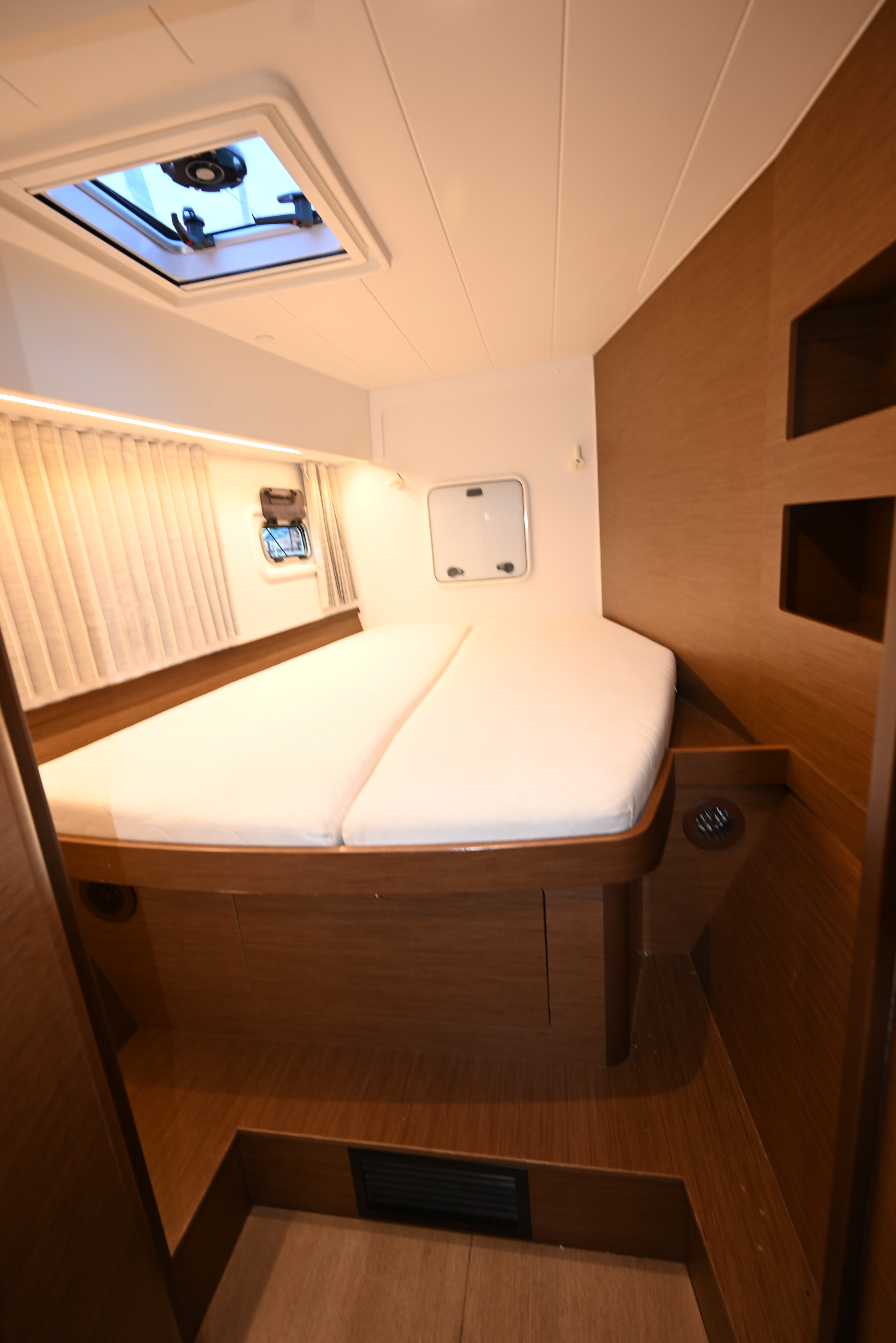 Aria condizionataGeneratoreWatermakerAltoparlanti esterniCoffee machineBombole gasBimini topCockpit/sternDoccetta in pozzettoSprayhoodPonte in teakStazione VentoWind instrument/AnemometerPasserellaLazy bagLazy jacksAcqua caldaCabin FansLenzuolaAsciugamaniConvertible table220 volt socket