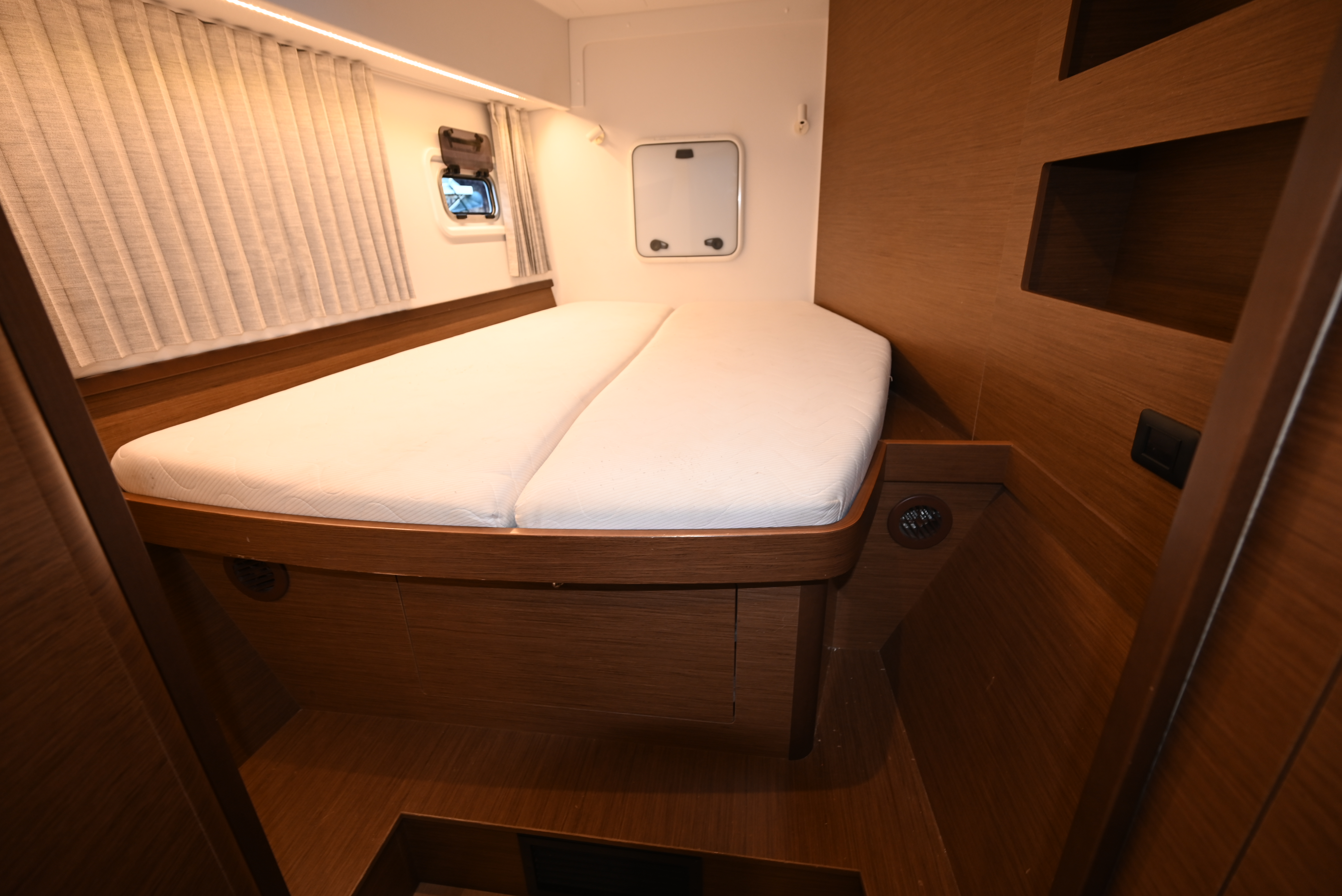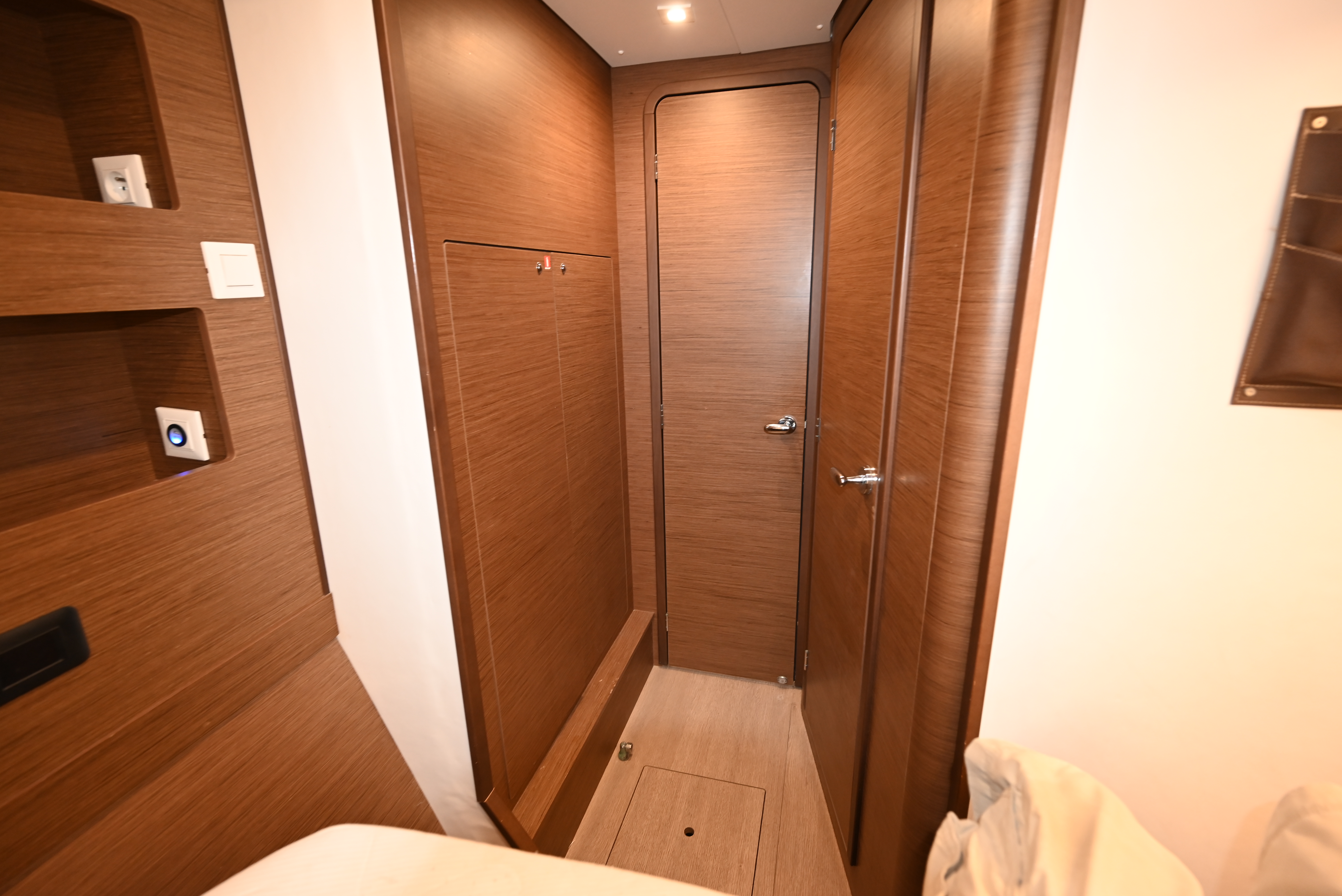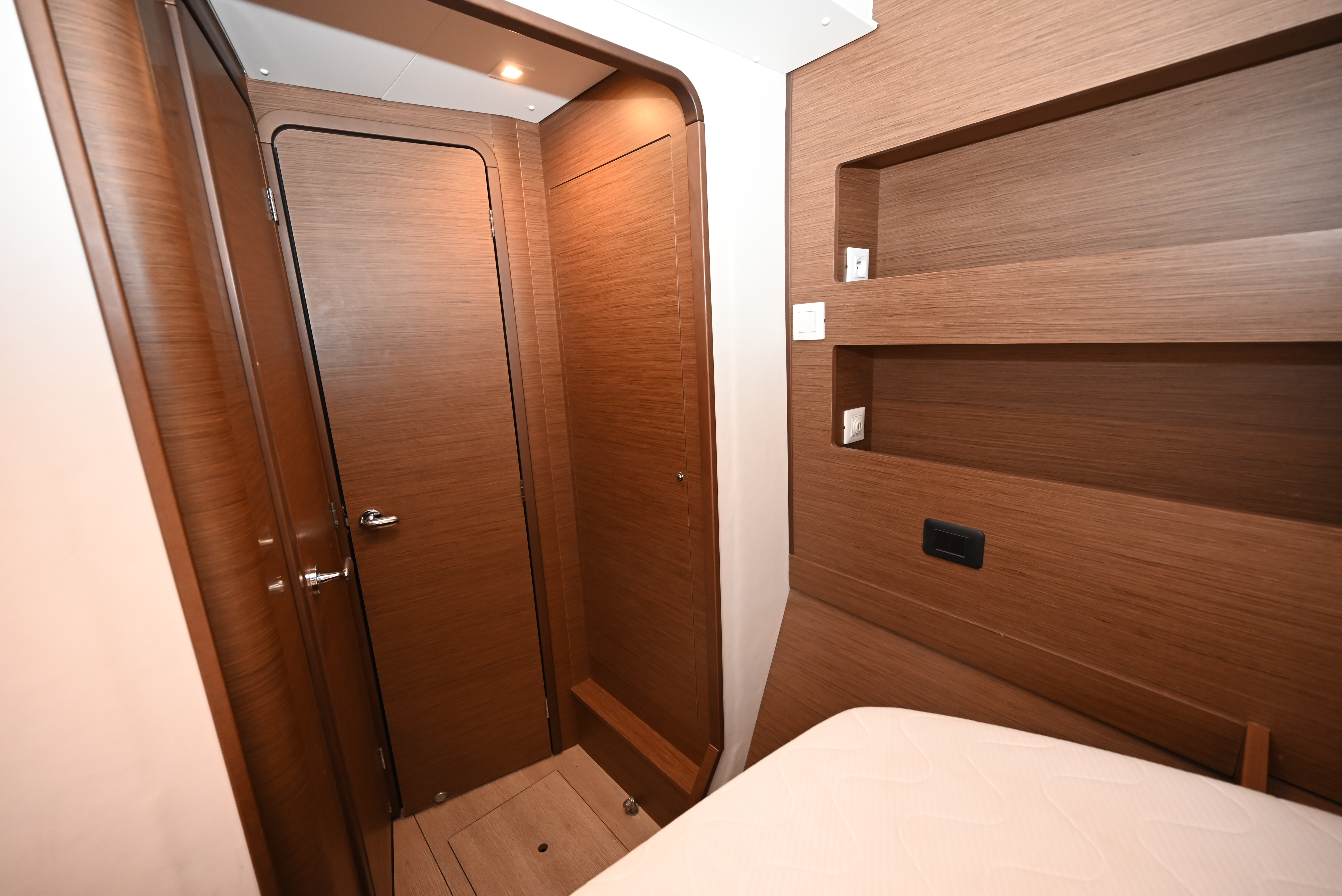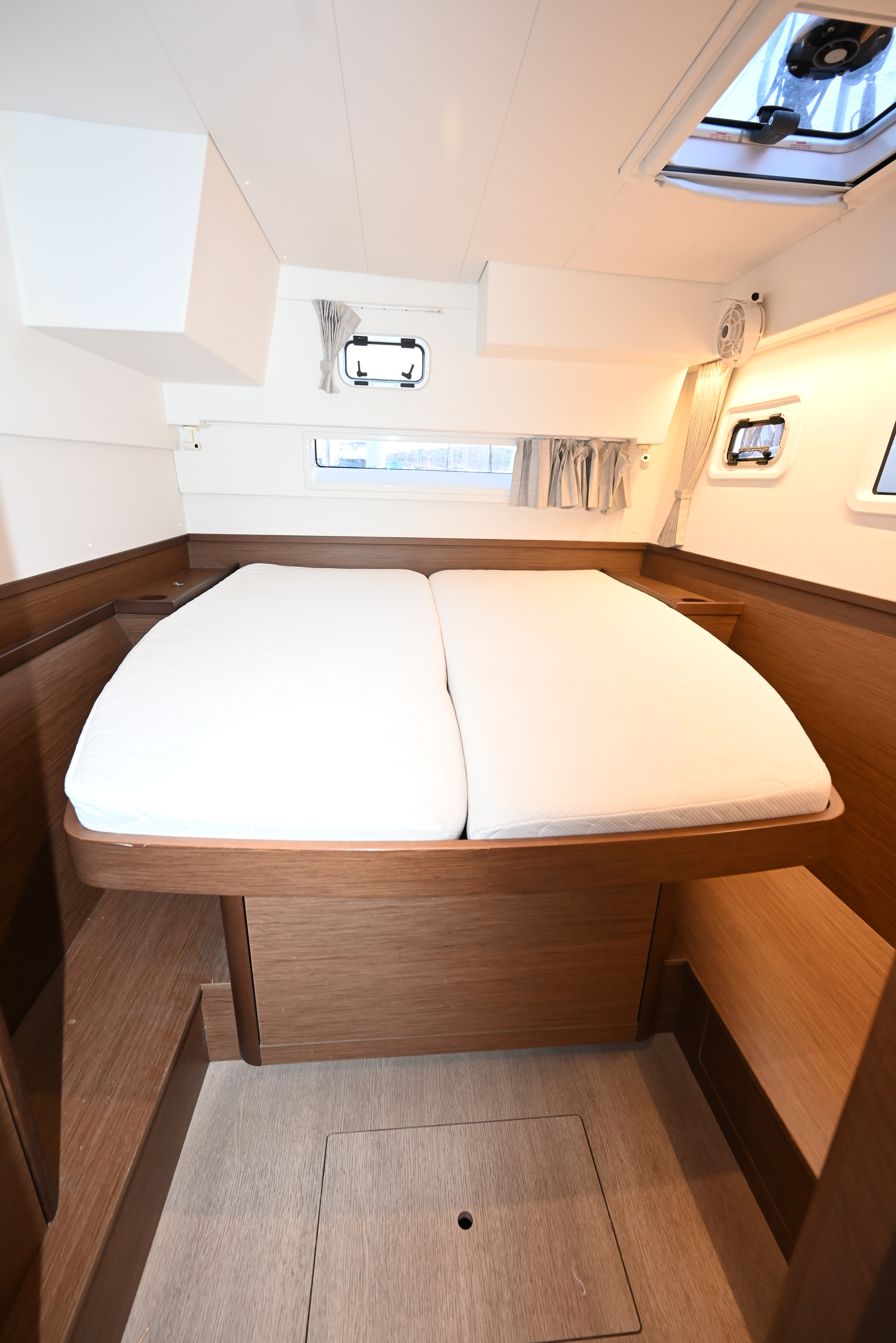Aria condizionataGeneratoreWatermakerAltoparlanti esterniCoffee machineBombole gasBimini topCockpit/sternDoccetta in pozzettoSprayhoodPonte in teakStazione VentoWind instrument/AnemometerPasserellaLazy bagLazy jacksAcqua caldaCabin FansLenzuolaAsciugamaniConvertible table220 volt socket