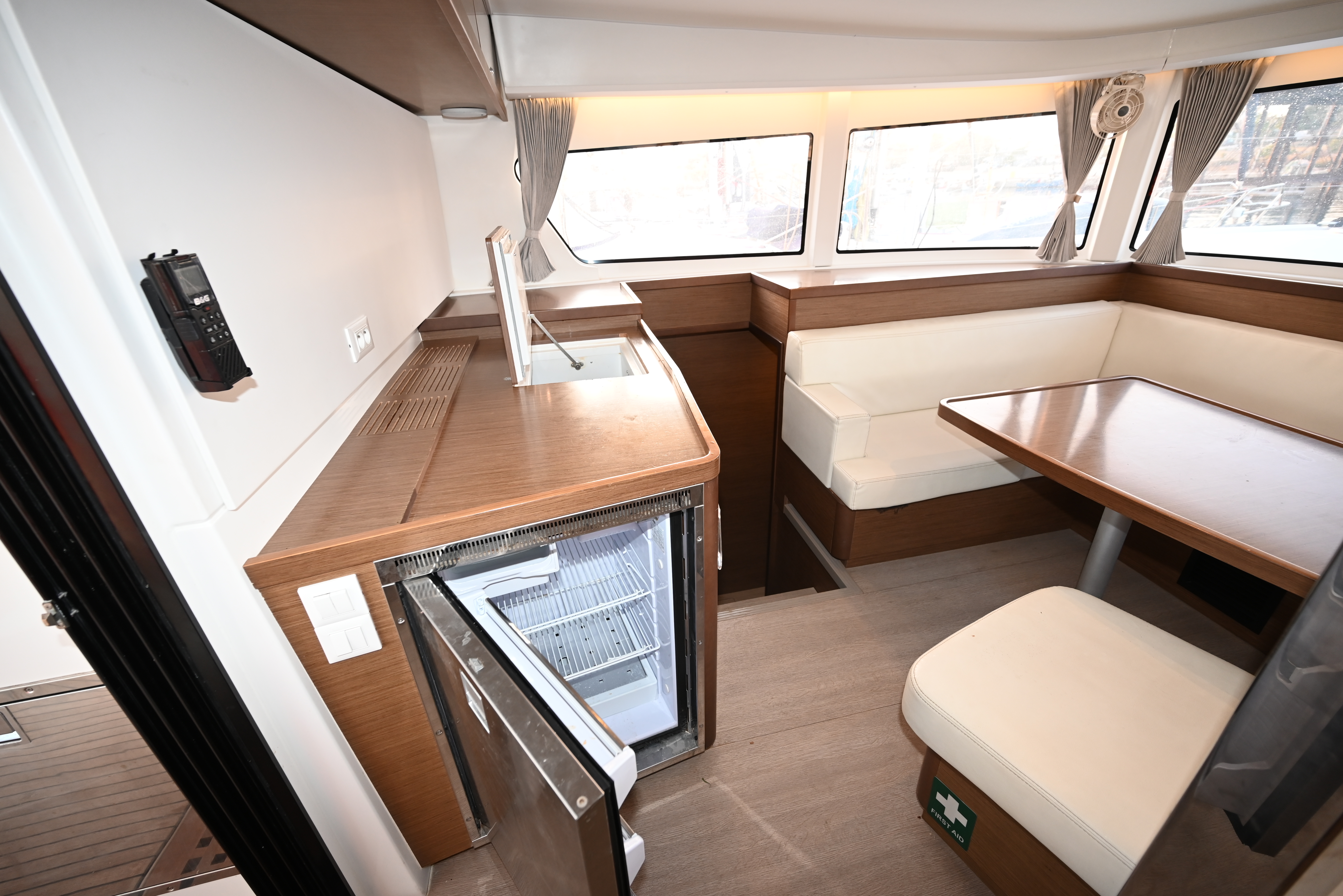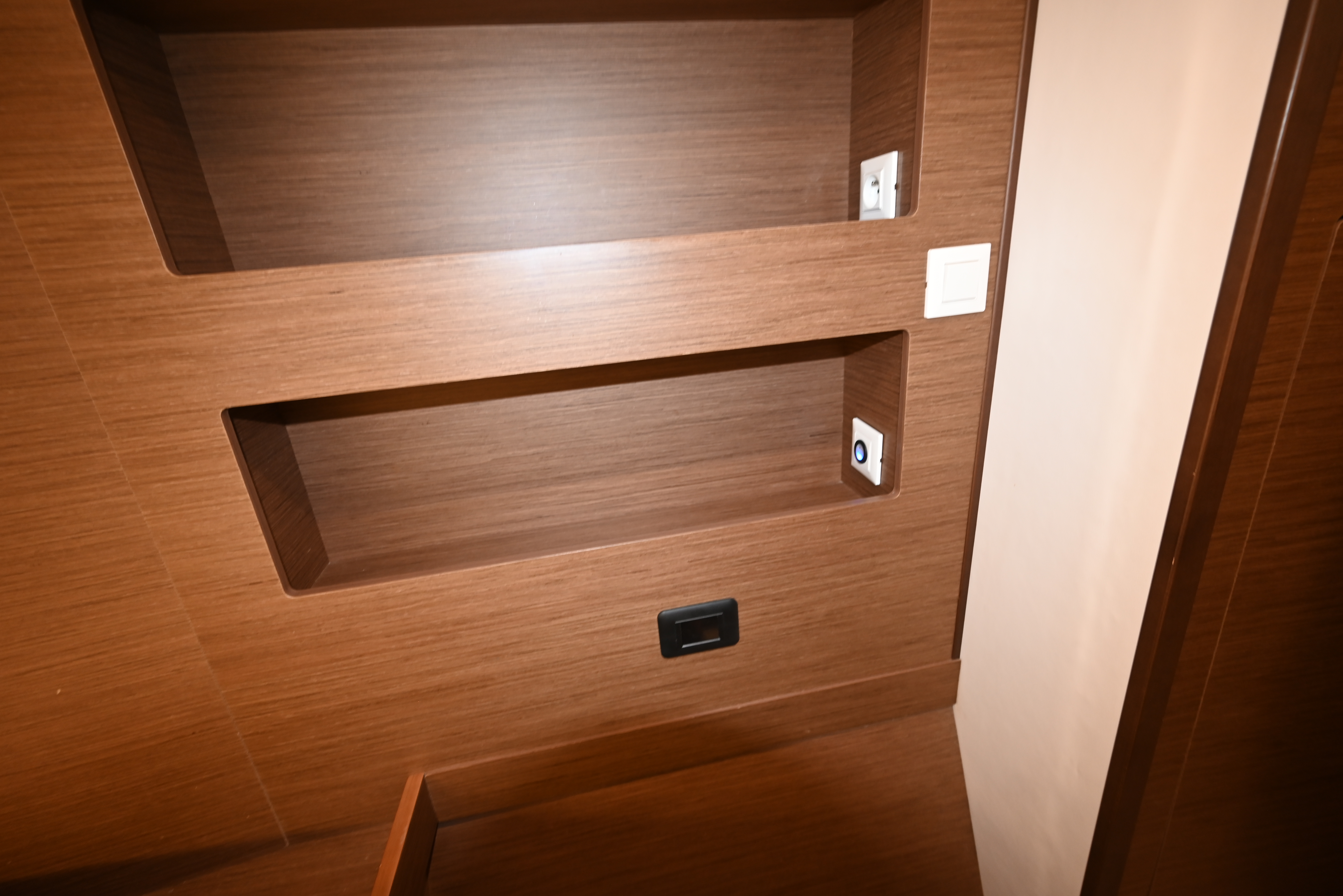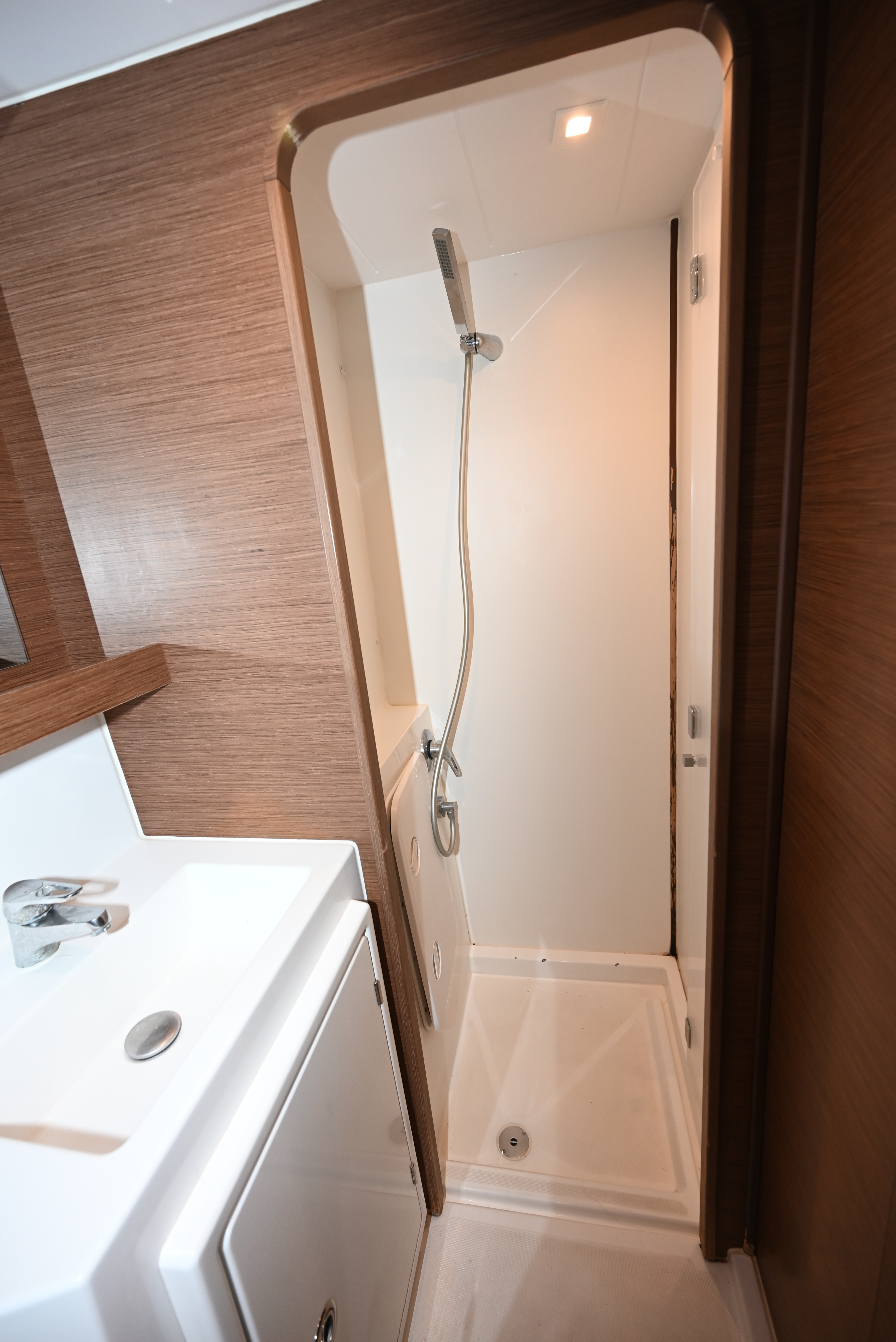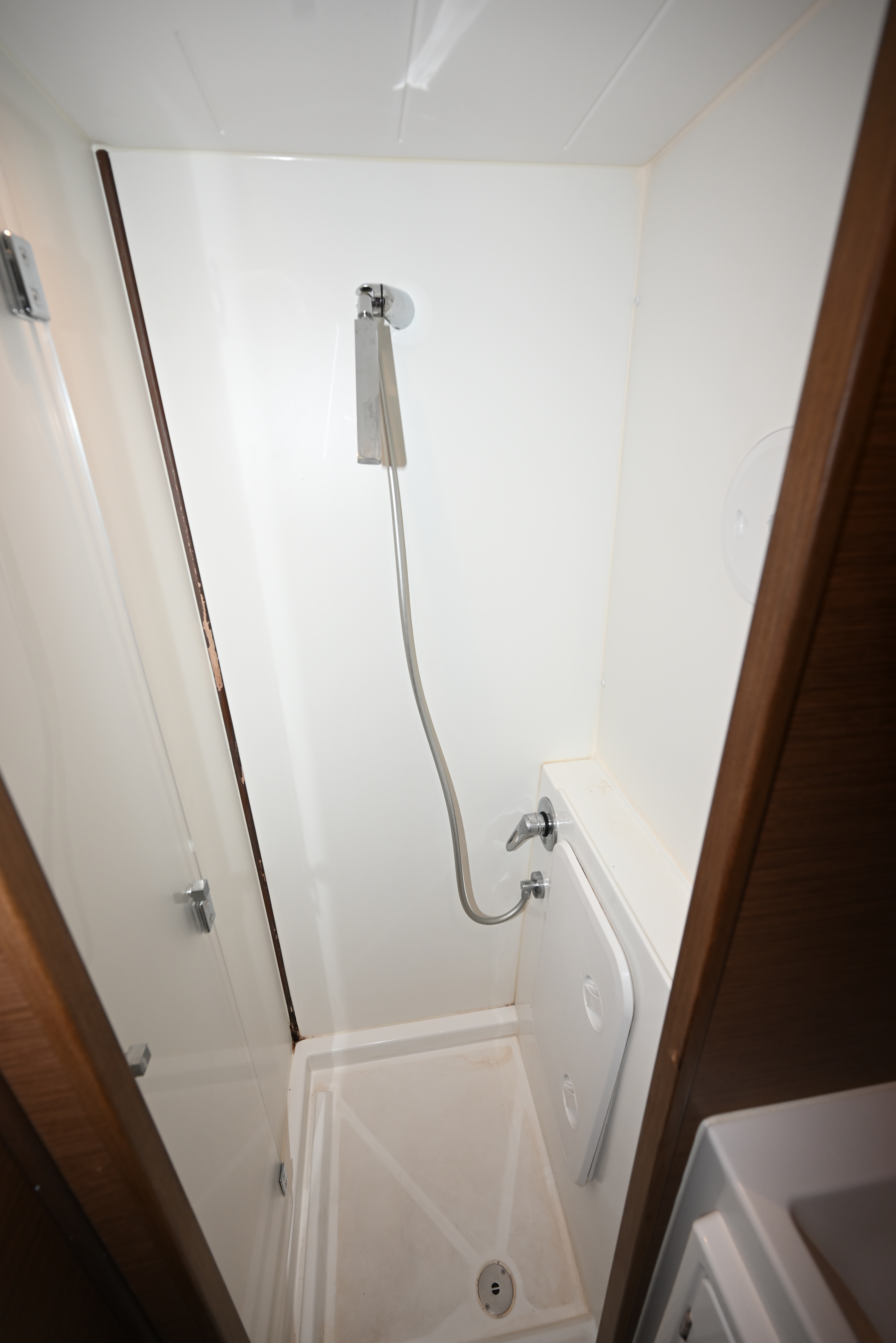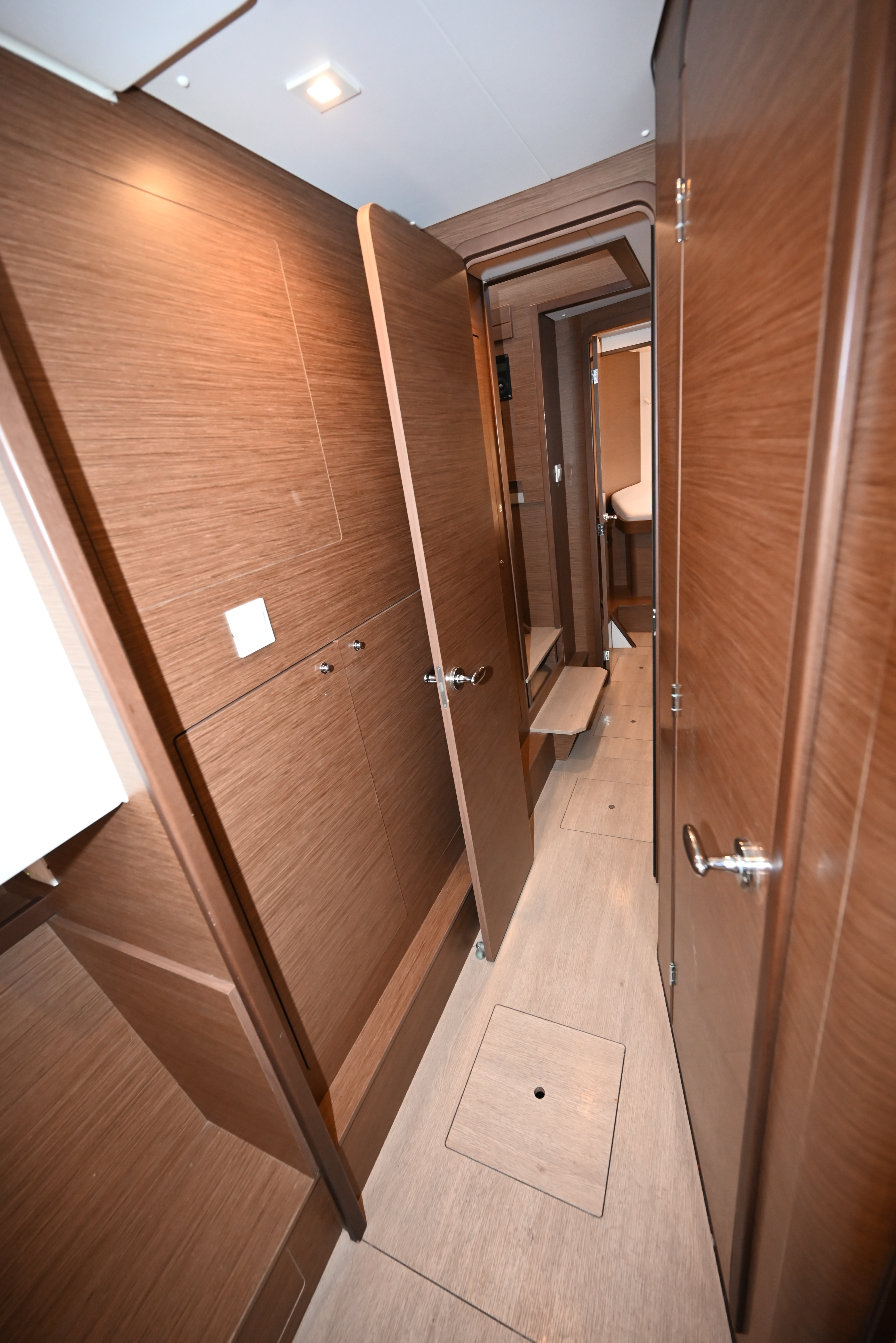 Aria condizionataGeneratoreWatermakerAltoparlanti esterniCoffee machineBombole gasBimini topCockpit/sternDoccetta in pozzettoSprayhoodPonte in teakStazione VentoWind instrument/AnemometerPasserellaLazy bagLazy jacksAcqua caldaCabin FansLenzuolaAsciugamaniConvertible table220 volt socket