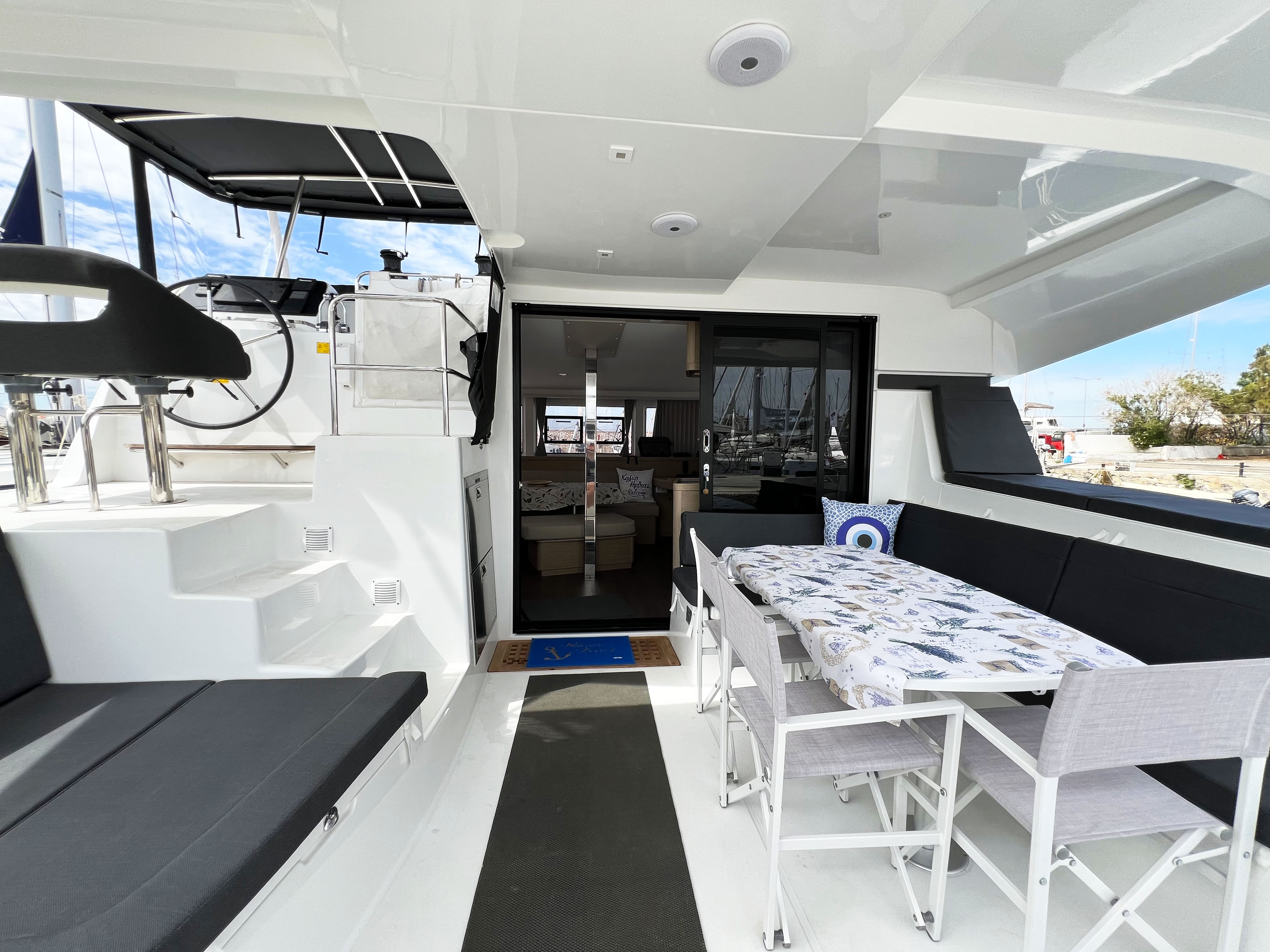 Air ConditionPillow CasesBed SheetsCoperteAsciugamaniFans (saloon & Cabins)WaterTanksPouf SeatsPozzetto in teakBiminiCuscini in pozzettoScaletta per il bagnoAnchor winchSalpa ancora elettricoAncora di rispettoScaletta per il bagnoMezzo marinaioTenderFuoribordoParabordiMooring ropes Doccetta esternaInox -Teak GangwayAltoparlanti in pozzettoGeneratoreBatteriePlugs 12vUSB in CabinsUSB sockets SaloonUSB Sockets CockpitElectrical WinchesElectrical ToiletsWatermakerMast LightsDeck LightsBattery Charger Electric Anchor WindlassCavo 220VFrigoriferoFridge & FreezerFrigoriferoCockpit fridgeNespresso coffee machineFilter coffee machineGas burner stoveCooking utensilsCrockery and cutleryHot water kettlerGas OvenGPS plotterBussolaStazione VentoSpeed LogPilota automaticoBarometroEchosounder/DepthsounderStazione VentoVHFGreek Water PilotsNautical ChartsGiubbotti di salvataggioSalvagenteZattera di salvataggioRazzi di segnalazioneEstintoriFirst Aid KitEPIRB - Boa di emergenzaEmergency TillerSegnale sonoroBlack BallsSalvagenteHorseshoeSafety BeltsHolding TanksCalibrated Anchor ChainLazy jackFully battened mainsailLazy bagSprayhoodGenoa avvolgibileManiglia WinchSnorkeling EquipmentBoard GamesRadio Player