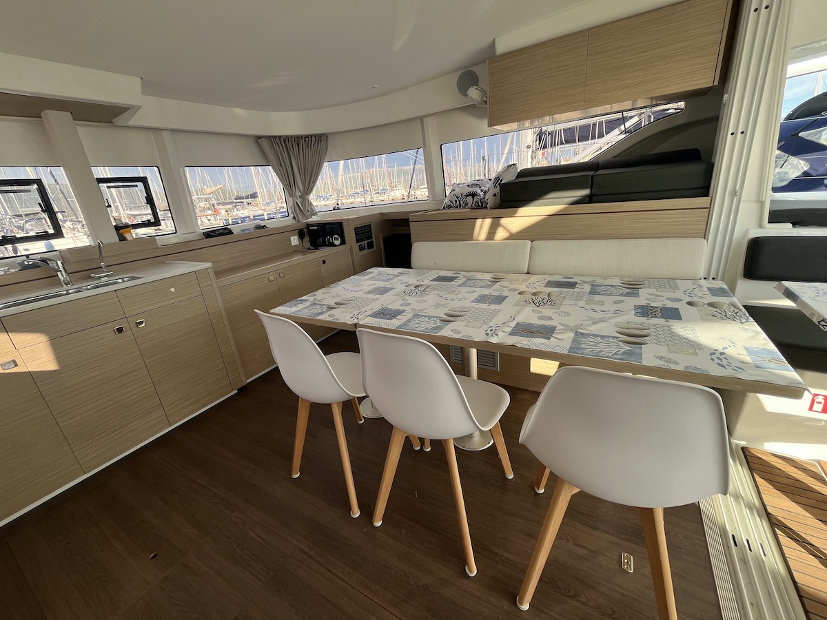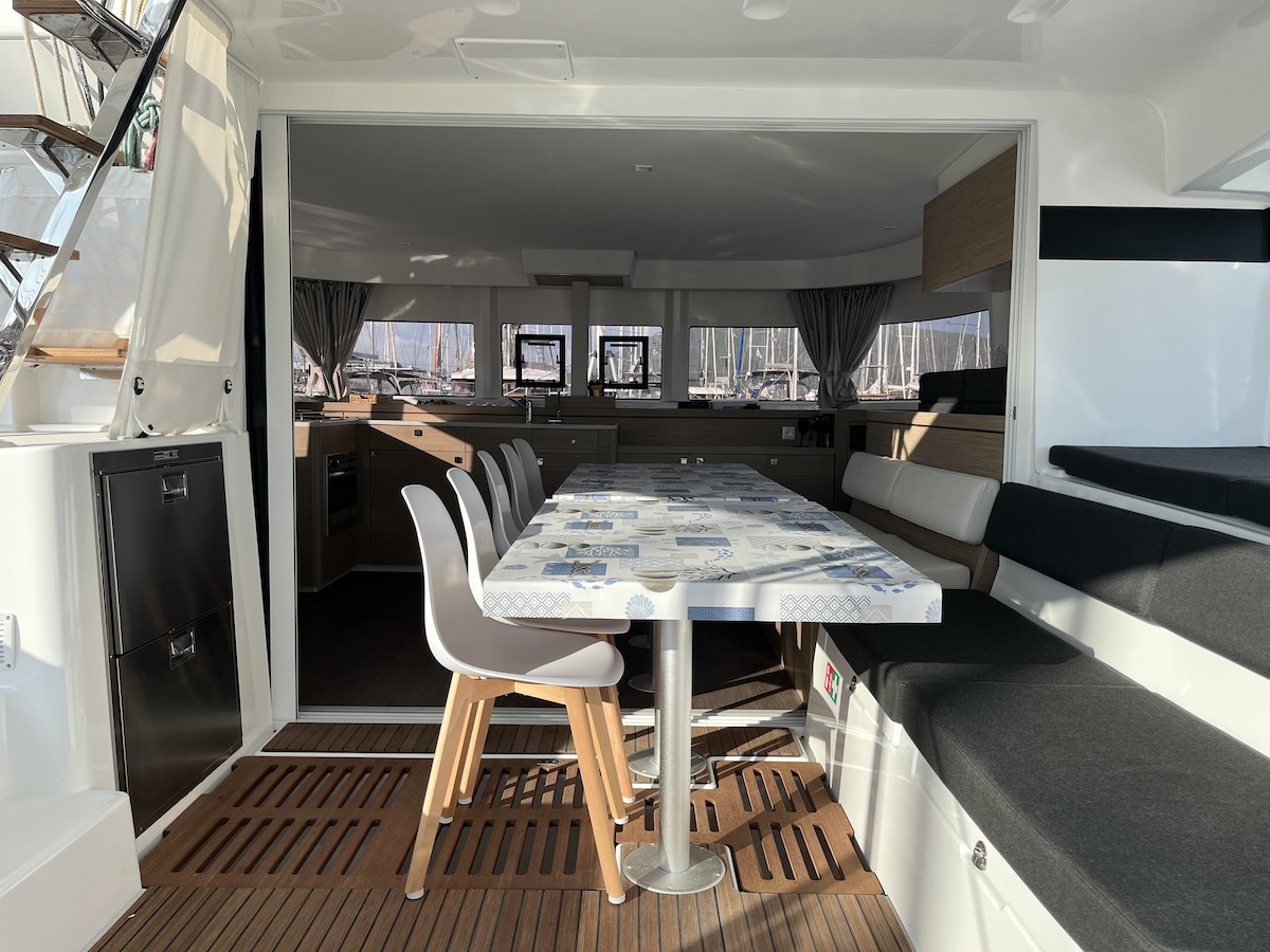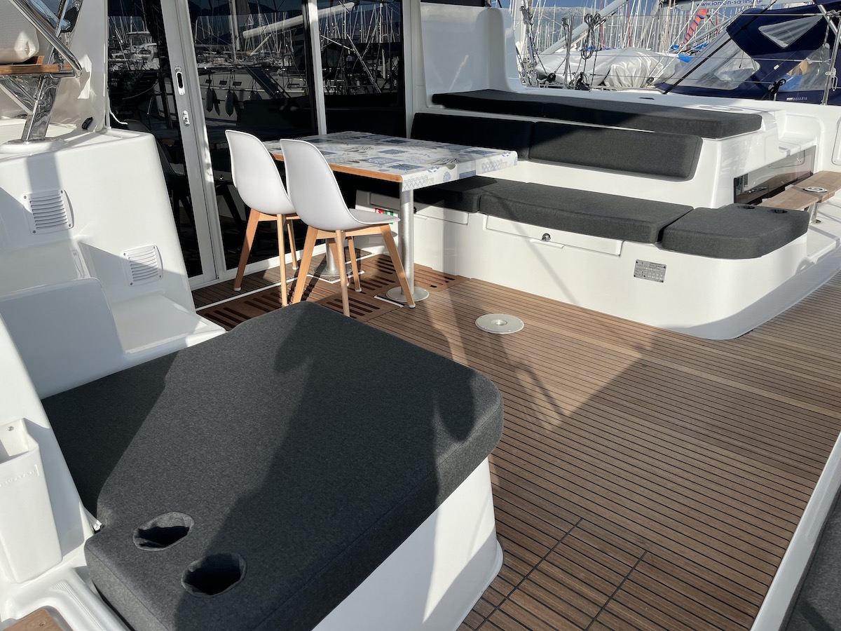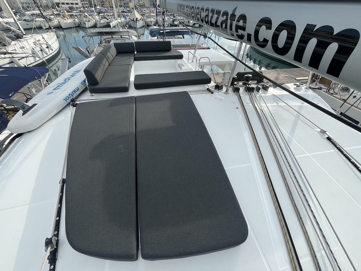 Electric Halyard WinchRanda steccataGenoa avvolgibileTimone a ruotaBussolaSolcometroVHFEcoscandaglioGPS ChartplotterChartplotterRiscaldamentoDoccetta esternaDeck TentPosateForno a microondeFrigoriferoCongelatoreFornello con fornoBatteria del motoreBatteria serviziCavo 220VGeneratorePannello solareDinghy RigidSnorkel EquipmentAncora di rispettoCinture di sicurezzaEstintoreCatena di ancoraggio calibrataKit di primo soccorsoSalvagenteCima di salvataggioZattera di salvataggioRazzi di segnalazioneCuscini e coperteTachimetroStazione VentoAncora di rispettoCarte nautiche e guidaGiubbotto di salvataggioBiancheriaAnchor winchWatermakerAir ConditionGeneratoreAltoparlanti in pozzettoCuscini in pozzettoParabordiPasserellaEasy bagScaletta per il bagnoOutside showerPompa di sentinaRiflettore radarOutside tableBussolaSolcometroEcoscandaglioStazione VentoPilota automaticoCarte nauticheBinocoloEPIRB - Boa di emergenzaCassetta attrezziBansigoRazzi di segnalazioneKitchen utilitiesBarra Timone di emergenzaBiminiSpray hoodInverter