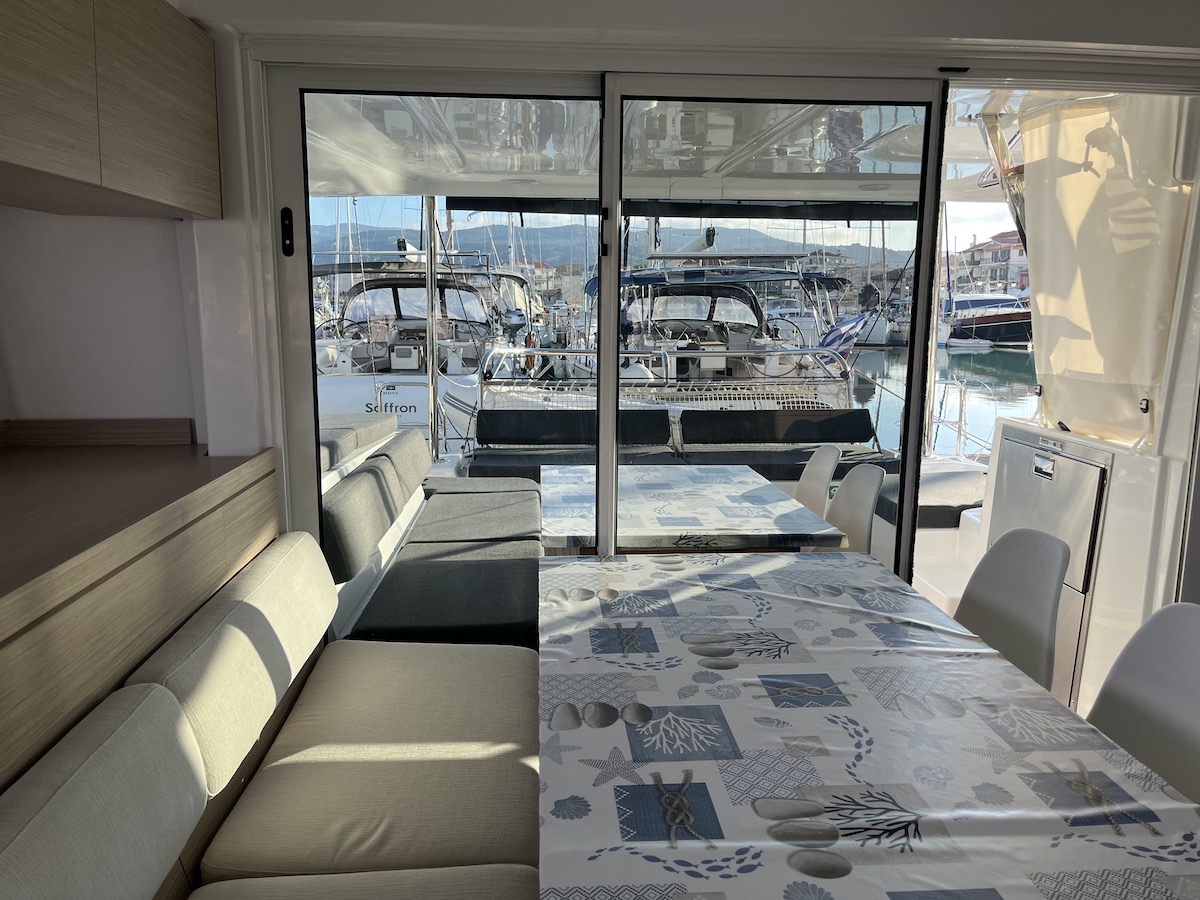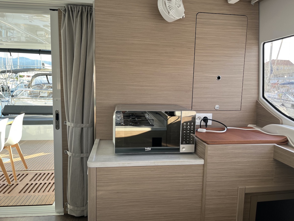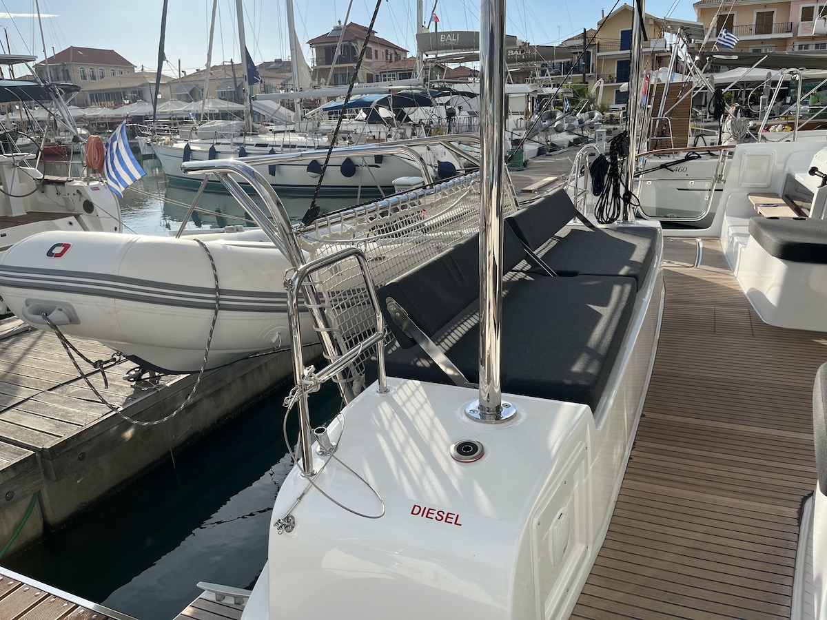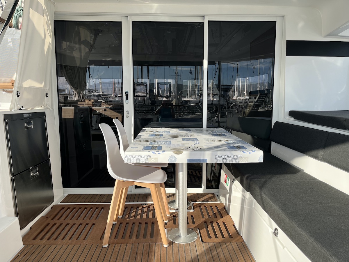 Electric Halyard WinchRanda steccataGenoa avvolgibileTimone a ruotaBussolaSolcometroVHFEcoscandaglioGPS ChartplotterChartplotterRiscaldamentoDoccetta esternaDeck TentPosateForno a microondeFrigoriferoCongelatoreFornello con fornoBatteria del motoreBatteria serviziCavo 220VGeneratorePannello solareDinghy RigidSnorkel EquipmentAncora di rispettoCinture di sicurezzaEstintoreCatena di ancoraggio calibrataKit di primo soccorsoSalvagenteCima di salvataggioZattera di salvataggioRazzi di segnalazioneCuscini e coperteTachimetroStazione VentoAncora di rispettoCarte nautiche e guidaGiubbotto di salvataggioBiancheriaAnchor winchWatermakerAir ConditionGeneratoreAltoparlanti in pozzettoCuscini in pozzettoParabordiPasserellaEasy bagScaletta per il bagnoOutside showerPompa di sentinaRiflettore radarOutside tableBussolaSolcometroEcoscandaglioStazione VentoPilota automaticoCarte nauticheBinocoloEPIRB - Boa di emergenzaCassetta attrezziBansigoRazzi di segnalazioneKitchen utilitiesBarra Timone di emergenzaBiminiSpray hoodInverter