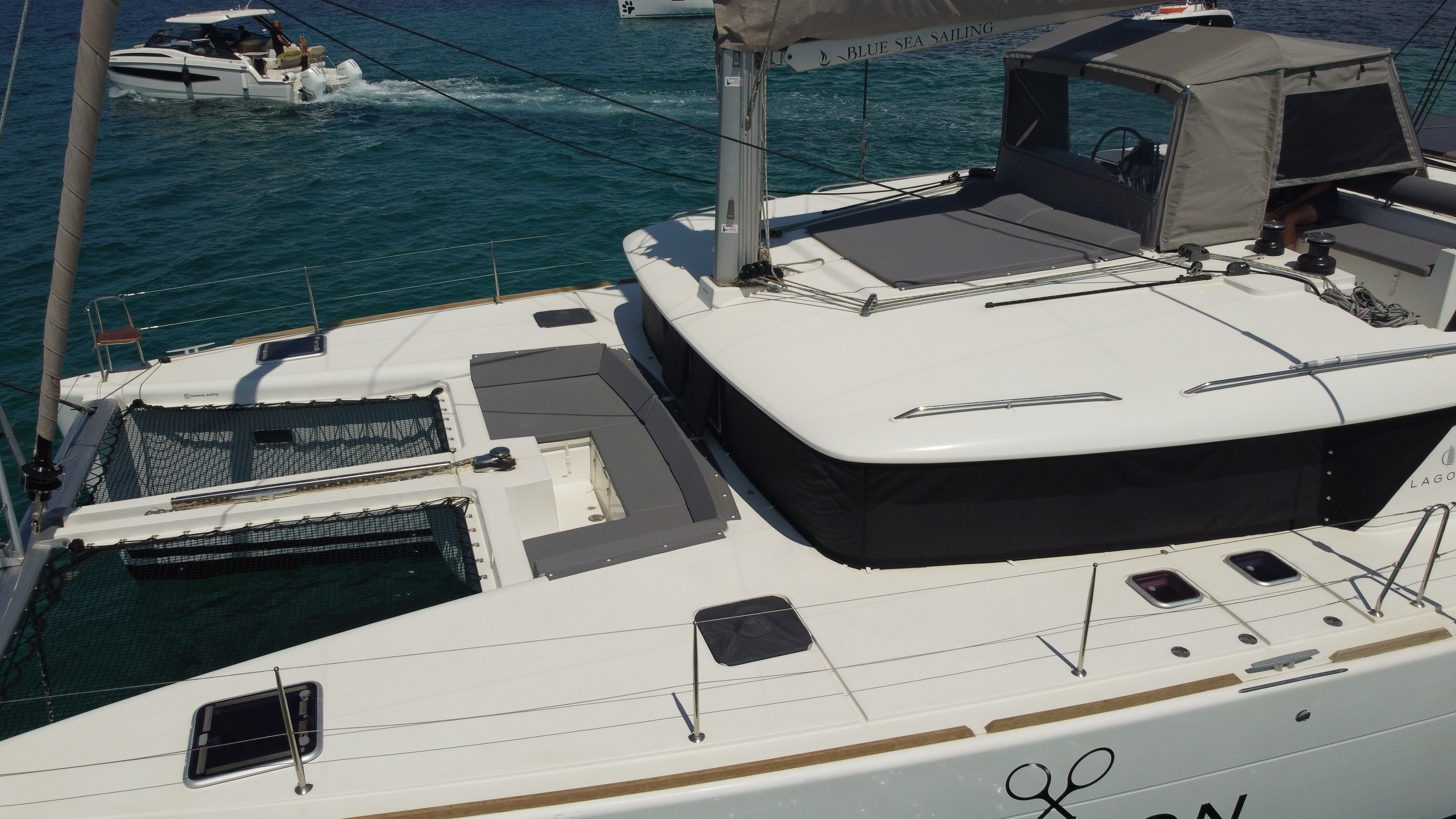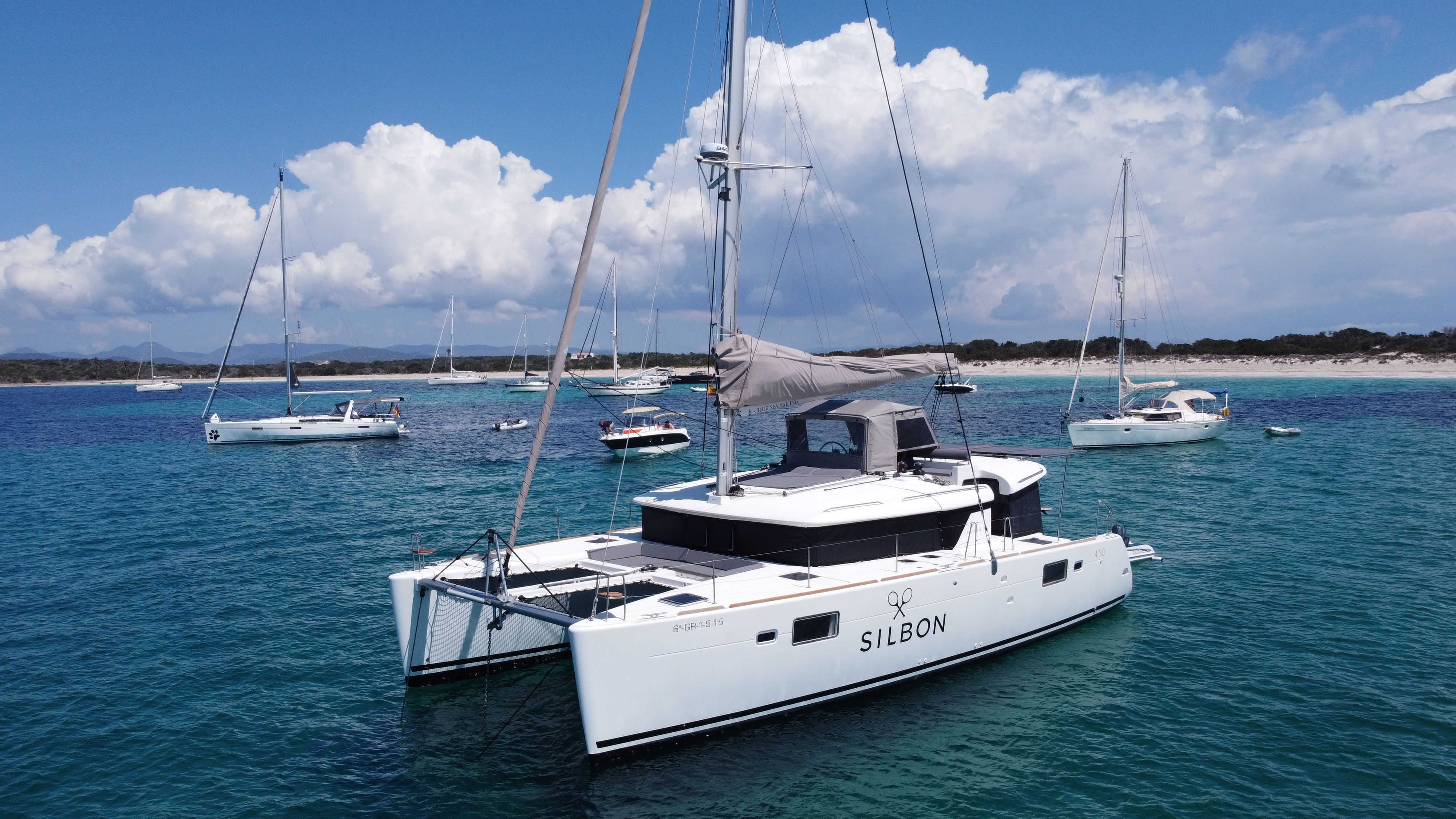 GeneratoreSerbatoio dell'acquaPannelli solariTavolo in pozzettoBarbecueLED lights in cockpitAria condizionataFully equipped kitchenWi-FiAttrezzatura per lo snorkelingFlybridgeConvertible loungeSun lounger areas (bow, stern, and flybridge)TenderPaddleboard
