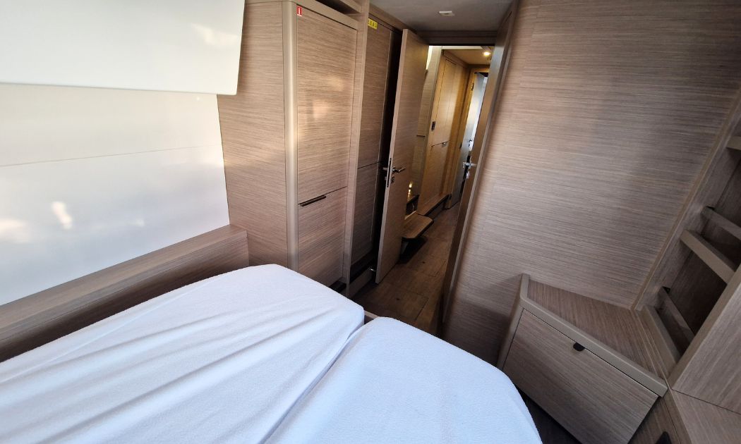 Zattera di salvataggioTenderHorseshoe BuoyGiubbotti di salvataggioCinture di salvataggioSalpa ancora elettricoTavolo in pozzettoFuoribordoBimini TopLazy jacksCuscini in pozzettoTenderSnorkelling equipmentWooden cockpitWinch elettricoAria condizionataCaricabatterieBerth in port bow comp.Berth in starboard bow comp.Convertible table in the saloonFrigoriferoEl. toiletsEspresso machineFans in cabins/saloonCongelatoreGeneratoreAcqua caldaHydraulic gangwayInverterForno a microondePax onboard (max)USB sockets in cabinsWater makerWC (only head) in the port bowWC (only head) in the strb bowGPS PlotterTachimetroVHFEcoscandaglioWind SpeedPilota automatico