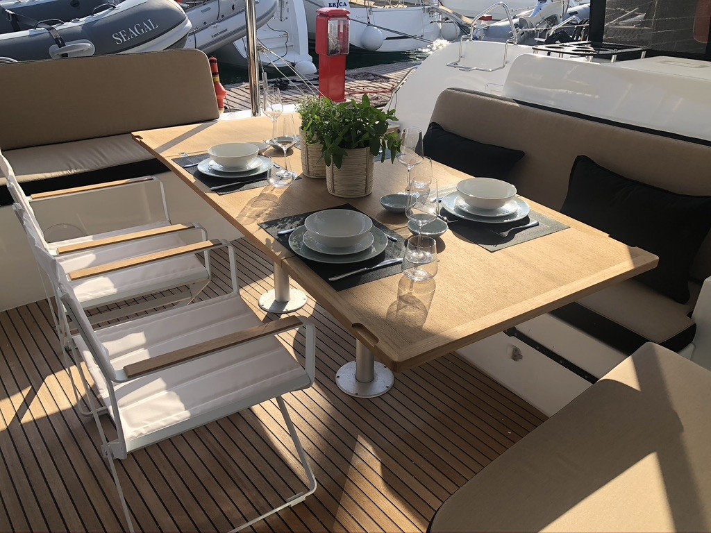 Hydraulic tenderlift platform12 V cockpit fridge 90l12 V electric fridge 110l12 V electric fridge 130lA/CB&G Zeus3 16" (in cockpit)CushionsElectric WCWinch elettricoEspresso Coffee makerFansCongelatoreFull batten MainsailGenoa avvolgibileFusion Radio MP3 playerGeneratoreHydraulic gangwayIcemakerInverterMicrowave ovenNespresso Coffe makerFuoribordoRib Highfield Dighy 3,40mSUPAttrezzatura per lo snorkelingTVPozzetto in teakUSB socketsUnder water lightsWater maker