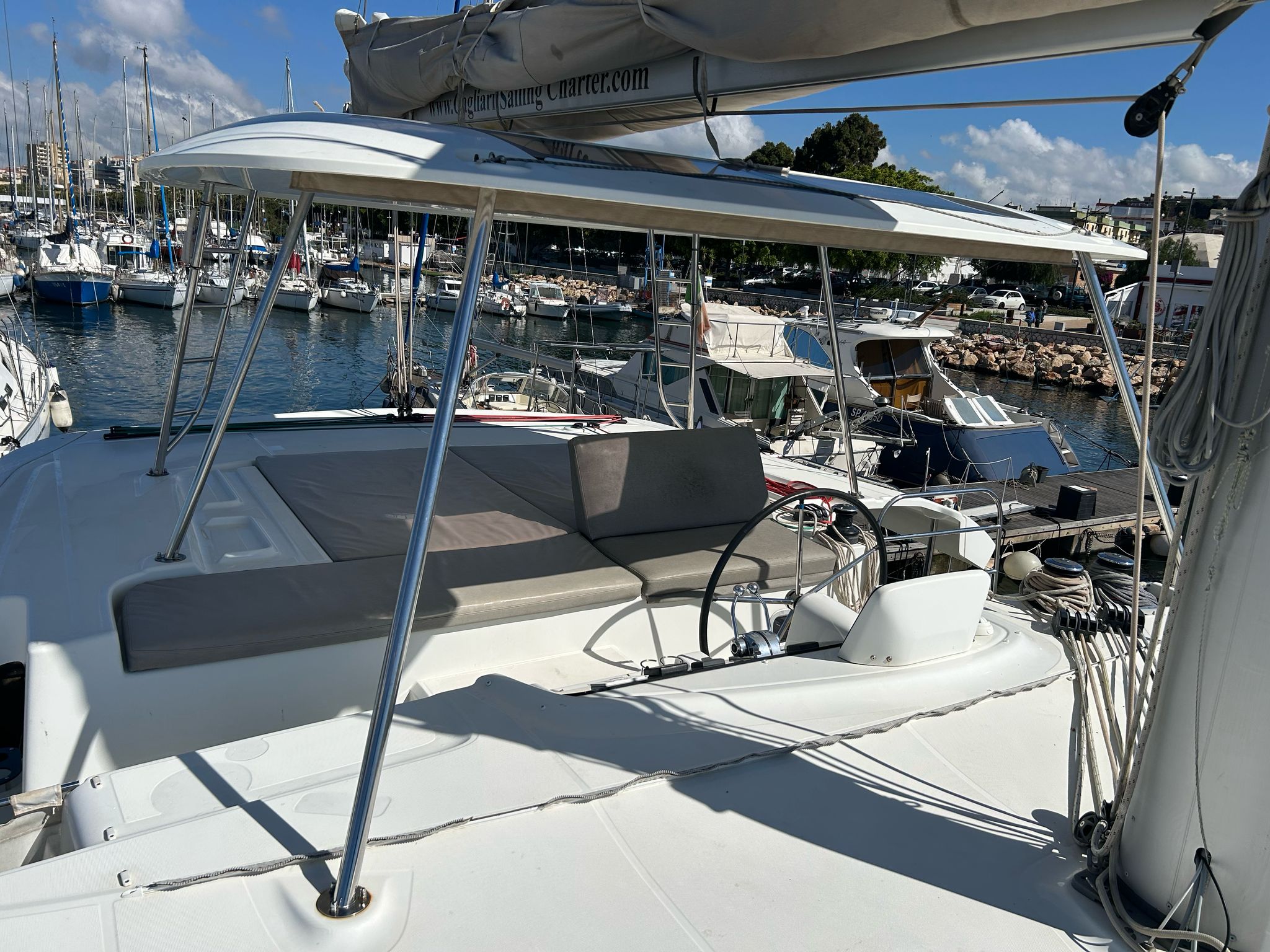 mapsCuscini e coperteNautical ChartsGiubbotti di salvataggioWood gangwayCushions in cockpit Cushions in Fly BridgeHarbour hooksAcqua caldaPilota automaticoTavolo in pozzettoDesalter(220 lt/h) GeneratoreLazy BagExternal Deck ShowerAuxiliary anchor EstintoreDistress FlaresMain AnchorFirst Aid KitLife BuoyZattera di salvataggioSalpa ancora elettricoGeneratoreBattery charger (220V)Aria condizionataWC elettricoVHFMain deck CompassChart PlotterSolcometroGPSPlotter B&G saloon and Fly bridgeStazione VentoAria condizionataGenerator InverterFly Bridge SpeakersSaloon SpeakersAltoparlanti in pozzettoRadio Fusion Marine serie A770 - USB -BluetoothFornoMoka Machine like NespressoCongelatoreFrigoriferoFull Galley equipment Dinghy rigid KeelElectric Mainsail WinchBattened MainsailWheel Steering Genoa avvolgibileWinches selftailing