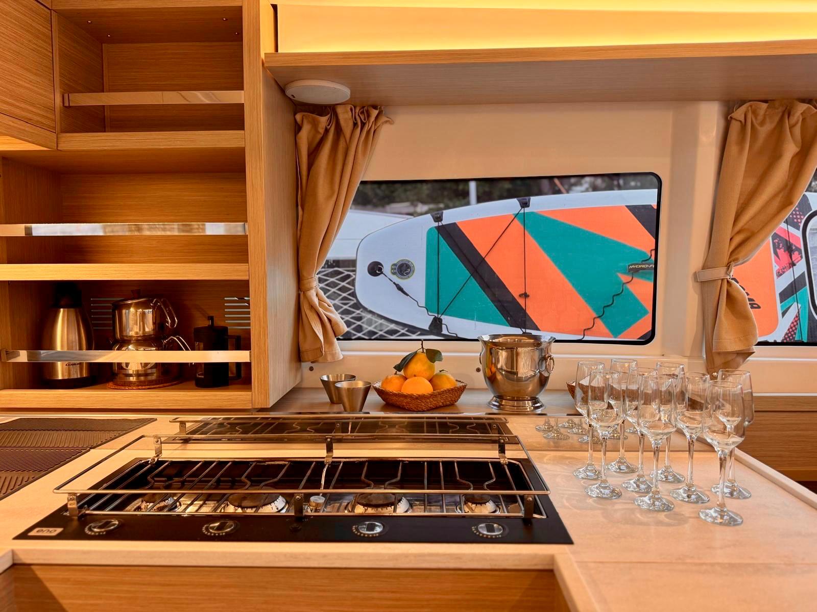 Semi-full batten mainsailVHFGPS ChartplotterRadio/CDCompasNavigational set + ChartsHandbooksVHF V60Wind IndicatorStazione VentoDepth IndicatorWind & Speed & Log & Temperature SensorsRiflettore radarPilota automaticoChart PlotterLog, wind, speed, temperature sensorAcqua caldaPlancetta Specchio di PoppaBiminiDoccetta esternaFornello con fornoTender gonfiabileKit di primo soccorsoEcoscandaglioStrumenti carteggioLife Jackets and Life beltsDistress signalsEmergency TillerEstintoriNational and Guests flagsRiflettore radarKit di primo soccorsoZattera di salvataggioFull equipped pantryAdditional BatteryHot water for pantryInsulated cooling box and refrigeratorInverterAir conditioning USB sockets in the cabinsGeneratorePannelli solari