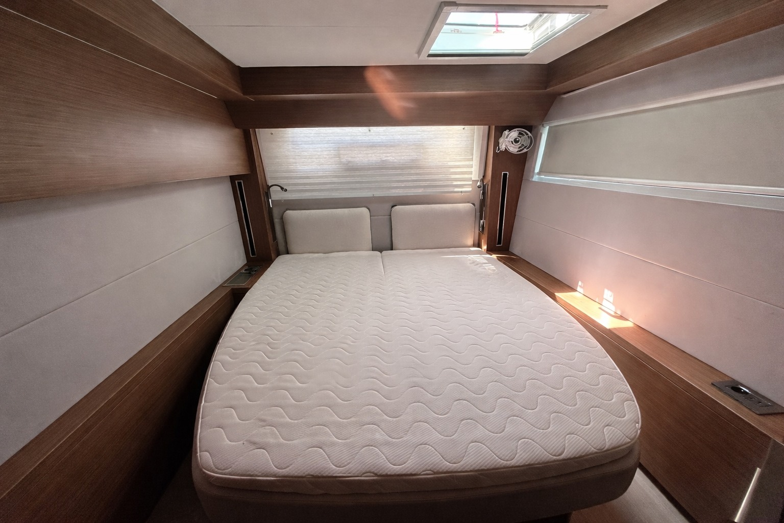 1x 130L front-opening fridge with freezer compartment1 x 90L freezer1 x 190L fridge with 2 drawers 1x icemaker in cockpit 1 x 78L fridge 2x80HP sail drive with 3-blade fixed propellers2x gas cylinders (2.75 kg)electric anchor windlass with wired remotehot/cold cockpit showerLazy BagTender1x rod holderPilota automaticoSolcometrofishfinderStazione Ventowind stationweather stationtoolboxengine spare partsItalian flag safety equipment within 50 nmexternal cushions on seats and backrestscockpit in teakexternal sinkwatermakersolar panel systemLED lighting in cockpit AIS 500 B&Gelectric mainsail traveler3x electric winchescockpit table in teak with extensionhydraulic tender lift with opening and connection to the aft swim platformsB&G GPS chartplotter, interior and exterior courtesy lights all over the deckunderwater lightsforward cushions cushions on coachroofhard bimini over helmcarbon gangwayfixed VHF at chart table VHF with handheld set and charging base at helmRadarsonar1x manual crew toilet 4x head with electric toilet and holding tankDacron furling genoaself-tacking jibDacron square top mainsail, full battens 1,40 mt4x fresh water tanks (830L total)2x fuel tank (1040L total)Stand Up Paddle € 60,00/weekend - € 110,00/weekparking inside Marina di Nettuno € 17,00/dayextra towel set (face towel, body towel) € 30,00/double set - € 15,00/single setExtra bedding sheets pack € 15,00/single - € 30,00/doubleFusion Bluetooth stereo with internal and external speakers220 V outlets + 12 V outletfansgas ovenpots, pans, dishes, and kitchen utensilsUSB outlets11 kw generator setair conditioning hot/cold with control in all cabins and dinette6-place setting dishwasher7 kg washing machineForno a microondeWi-Fi40" retractable smart TV pod coffee machineinverter 2 KWfour-burner deluxe stove