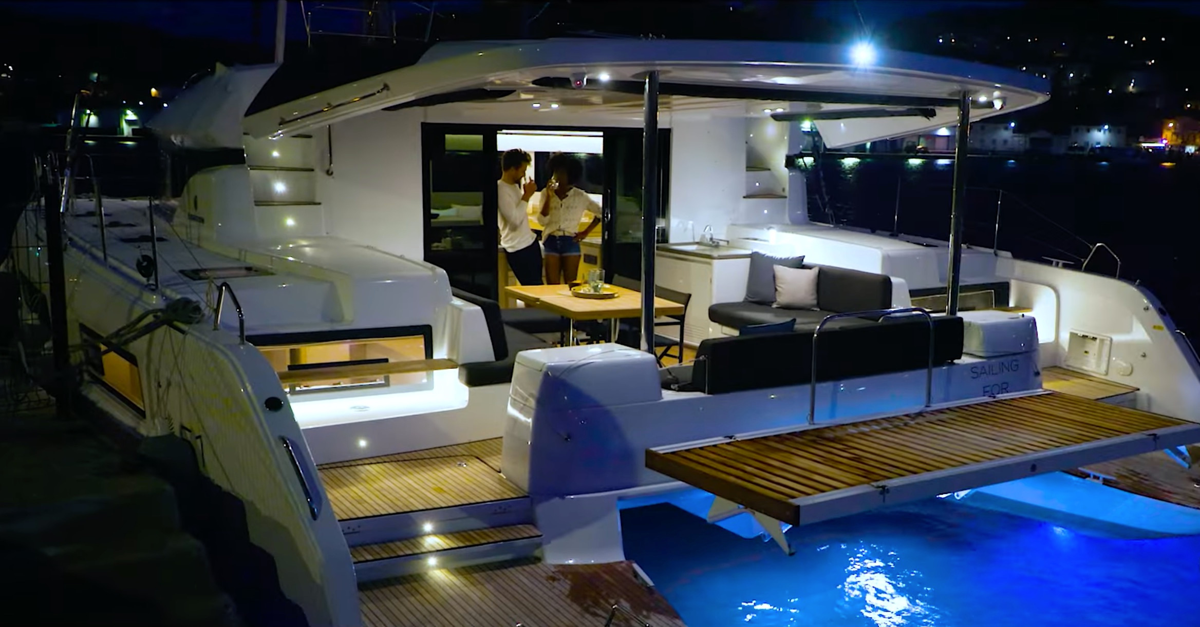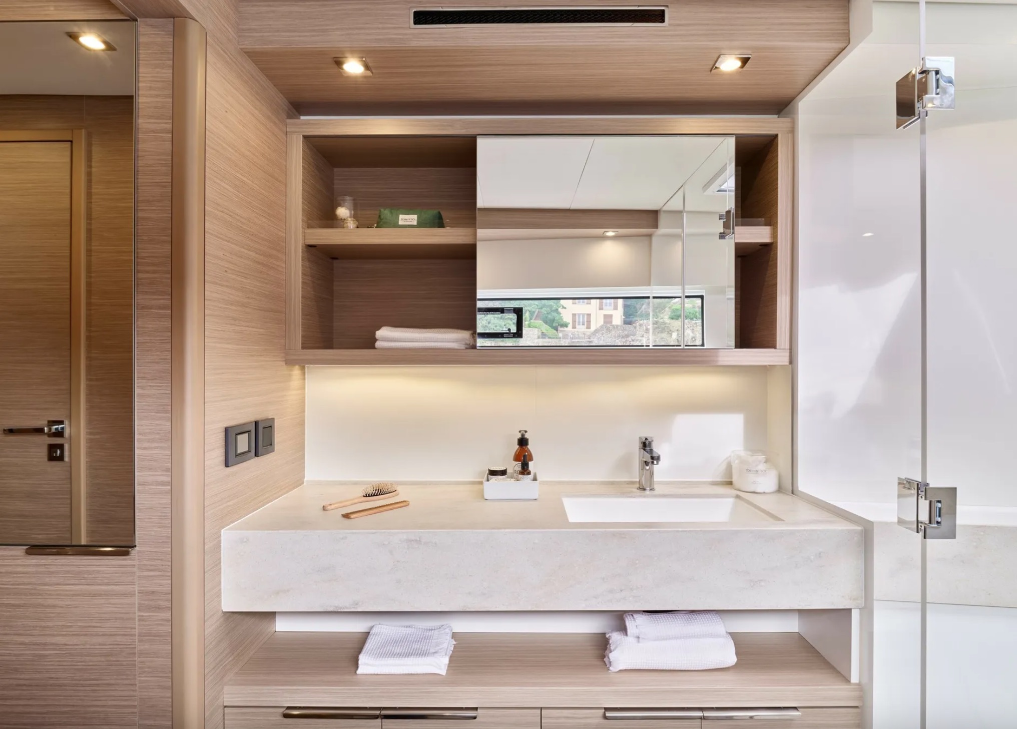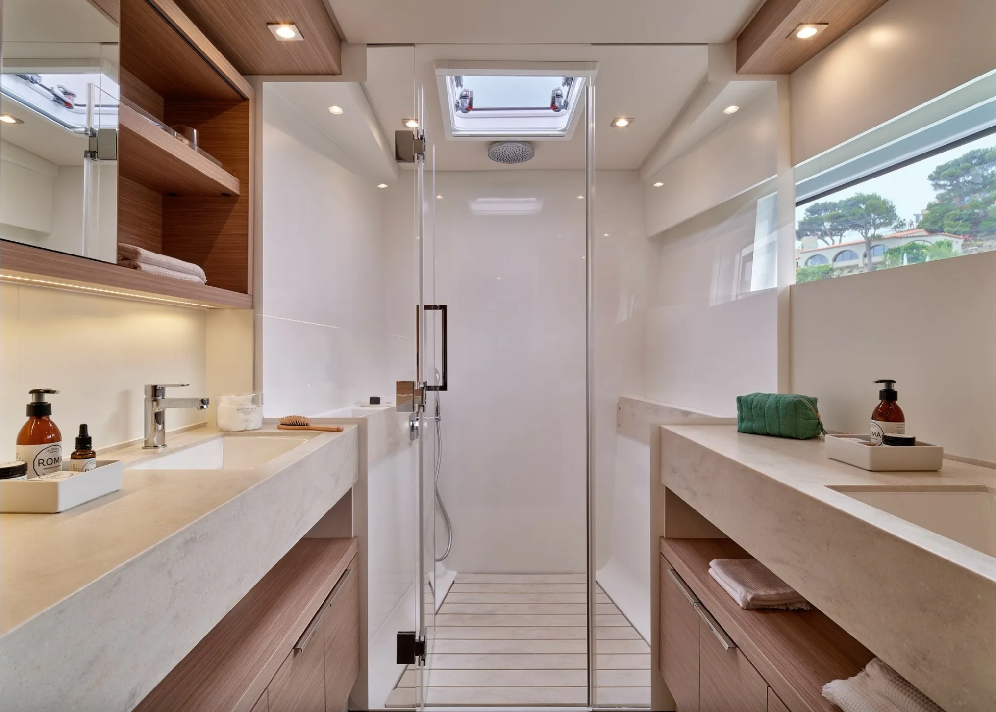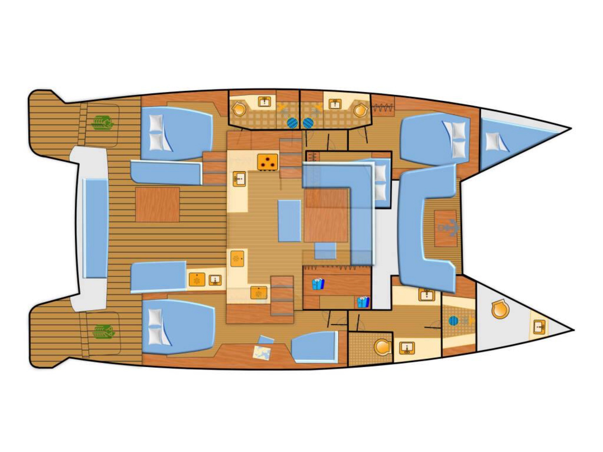 Outside cushions (bow, flybridge, cockpit)SunshadesElectric halyard winchElectric main sail winchLazy jacksGenoa (manual)Pilota automaticoDepthsounderGPS chart plotterManualeWind instrument/AnemometerStazione VentoEPIRB-Distress radio beaconsRadio VHFAria condizionata2 x Batteries - extraBaterry chargerGeneratoreInverterShore connection 220 VUSB socketsWC pump - electricWatermaker2 x Bilge pump - MechanicBimini topCockpit table - woodenTenderSalpa ancora elettricoParabordiHydraulic gangwayMain anchor - 45 kg with 80 mOutboard engine - 20HPSpare anchor (Reserve, Auxiliary anchor) - 20 meters chainScaletta per il bagnoBombole gasAcqua caldaKitchen utensils (Galley equipment, cutlery)4 x Refrigerator + 1 FridgeElectric fans in cabinsBluetooth playerRadioAttrezzatura per lo snorkeling