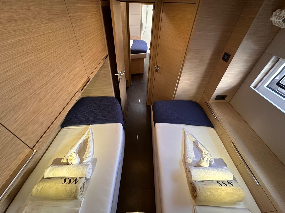 Cuscini in pozzettoAltoparlanti in pozzettoBow cushionsPosateNespresso machineMoka - Coffee machineBoiler + Filter for Intern. CoffeeFornoPilota automaticoInverter 12 /220 VGeneratoreGPS+ChartPlotterSprayhoodPozzetto in teakAcqua caldaDoccetta in pozzettoPonte in teakTavolo in pozzettoDistress FlaresZattera di salvataggioEstintoriKit di primo soccorsoVHFTenderliftElectric ToiletsA/CWasher/DryerWatermakerSUP RadarSet snorkeling