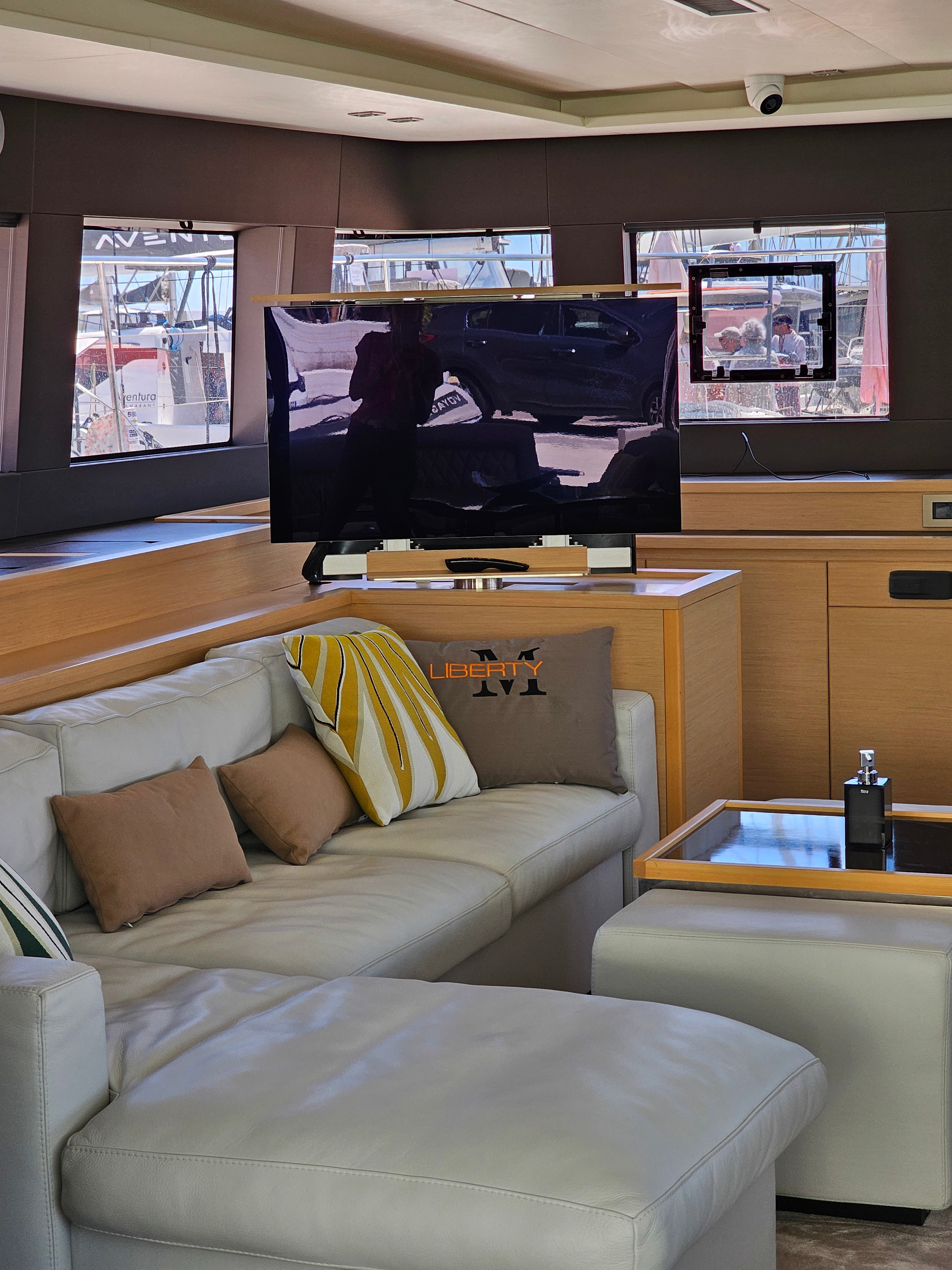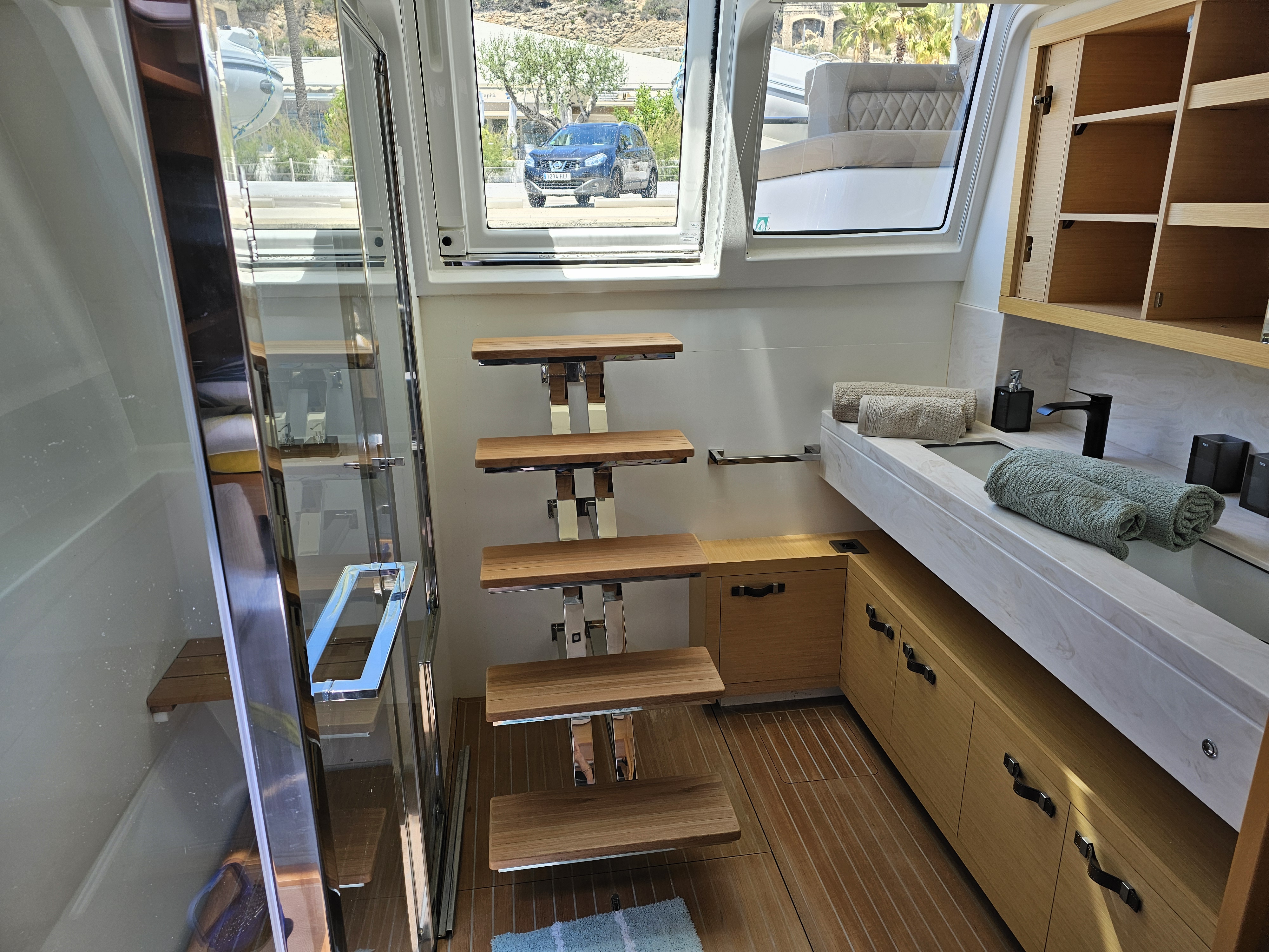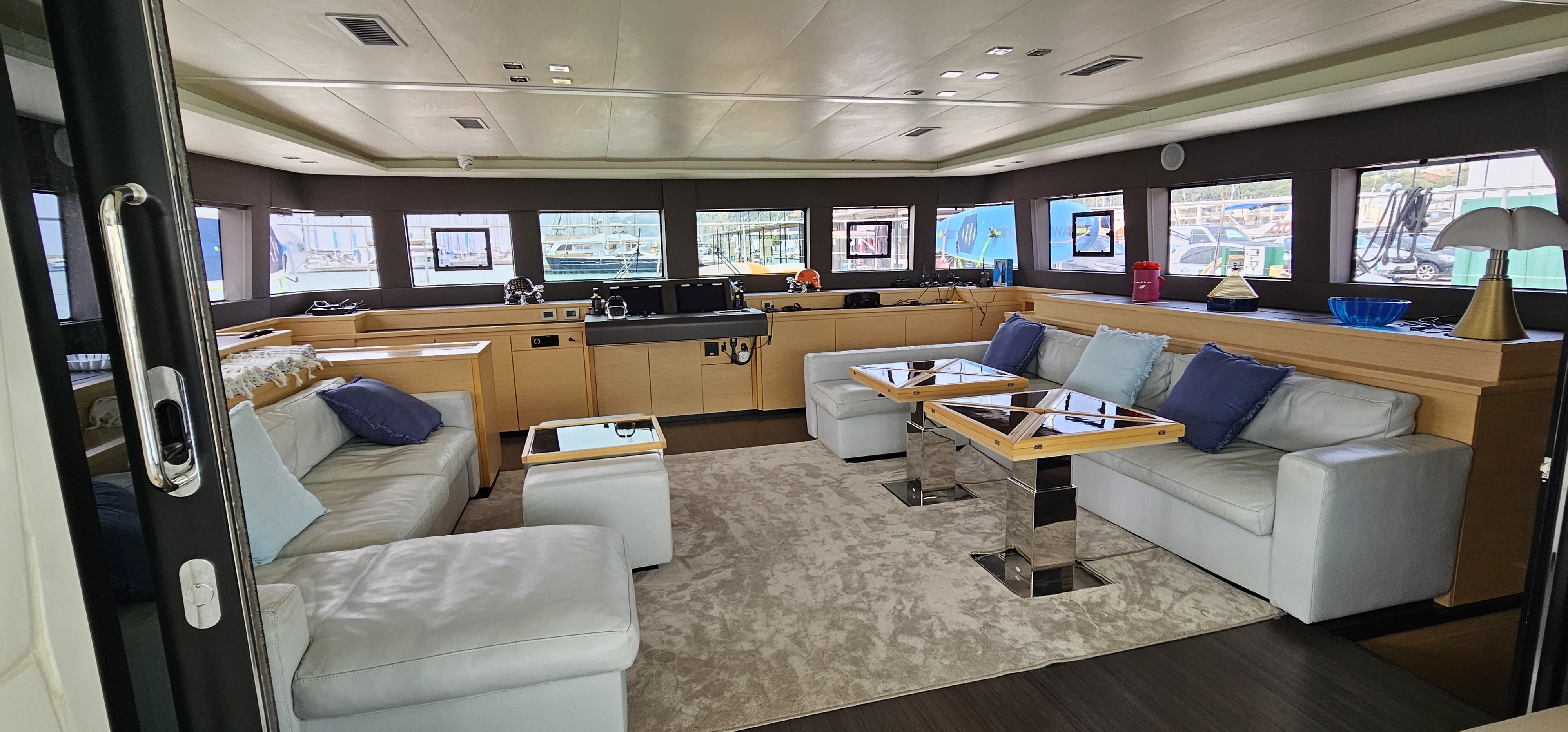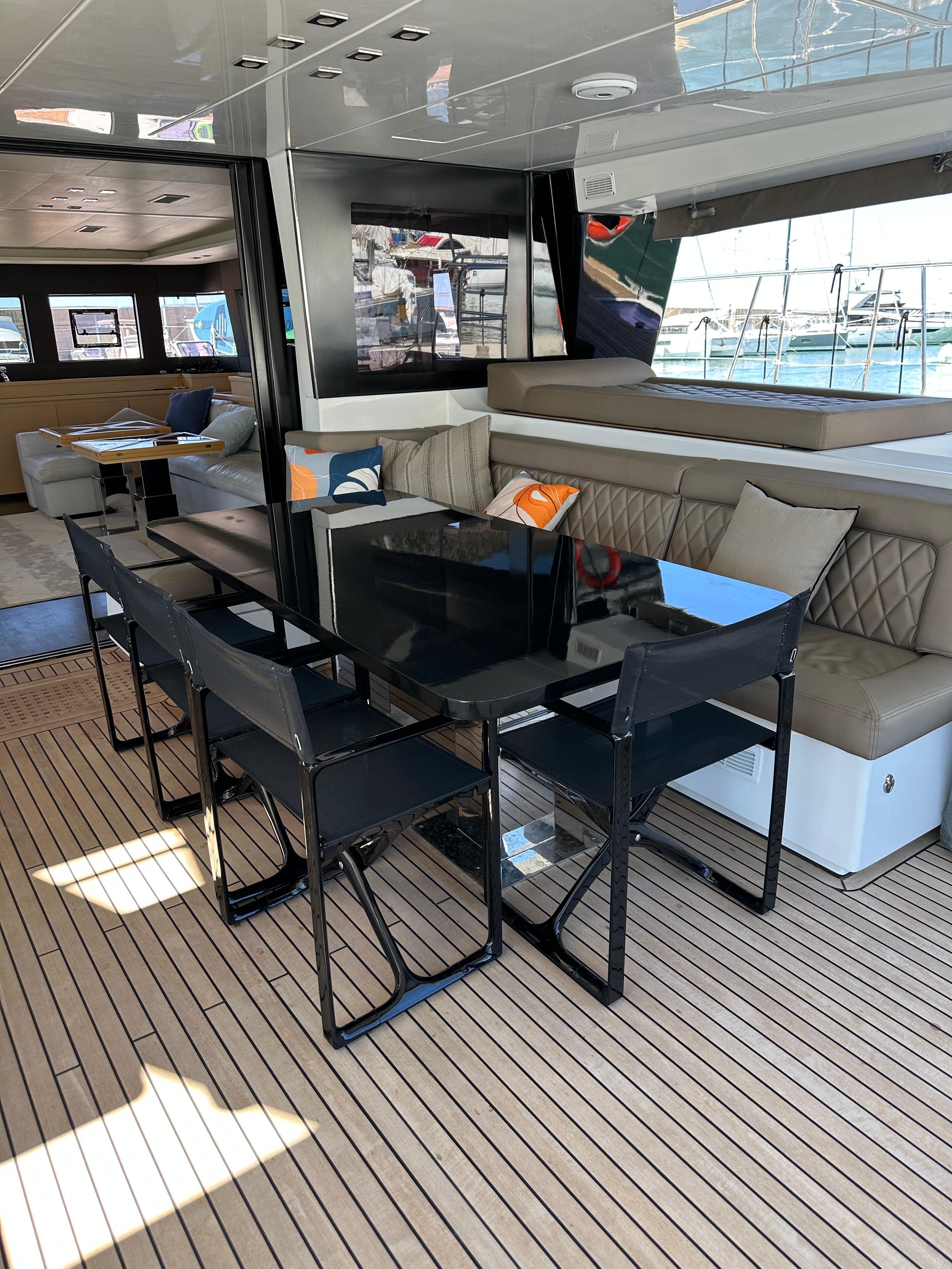 Microwave oven MieleDishwasherWasher dryer Miele FornoWine fridgeFridge with FreezerMacchina del ghiaccioTVSafe boxFansFUSION sound system in saloon, flybridge and individual sound Satellite TV antennaPeplink SystemHydraulic Tenderlift platform with remote controlHydraulic retractable gangwayScaletta per il bagnoGrill 220VFrigoriferoSundeck cushionsGeneratorePannelli solariAria condizionataRiscaldamentoTenderMarine mini scooter SUBLUEPaddle surfTowable flotation (2 person)Wake boardSnorkel kits