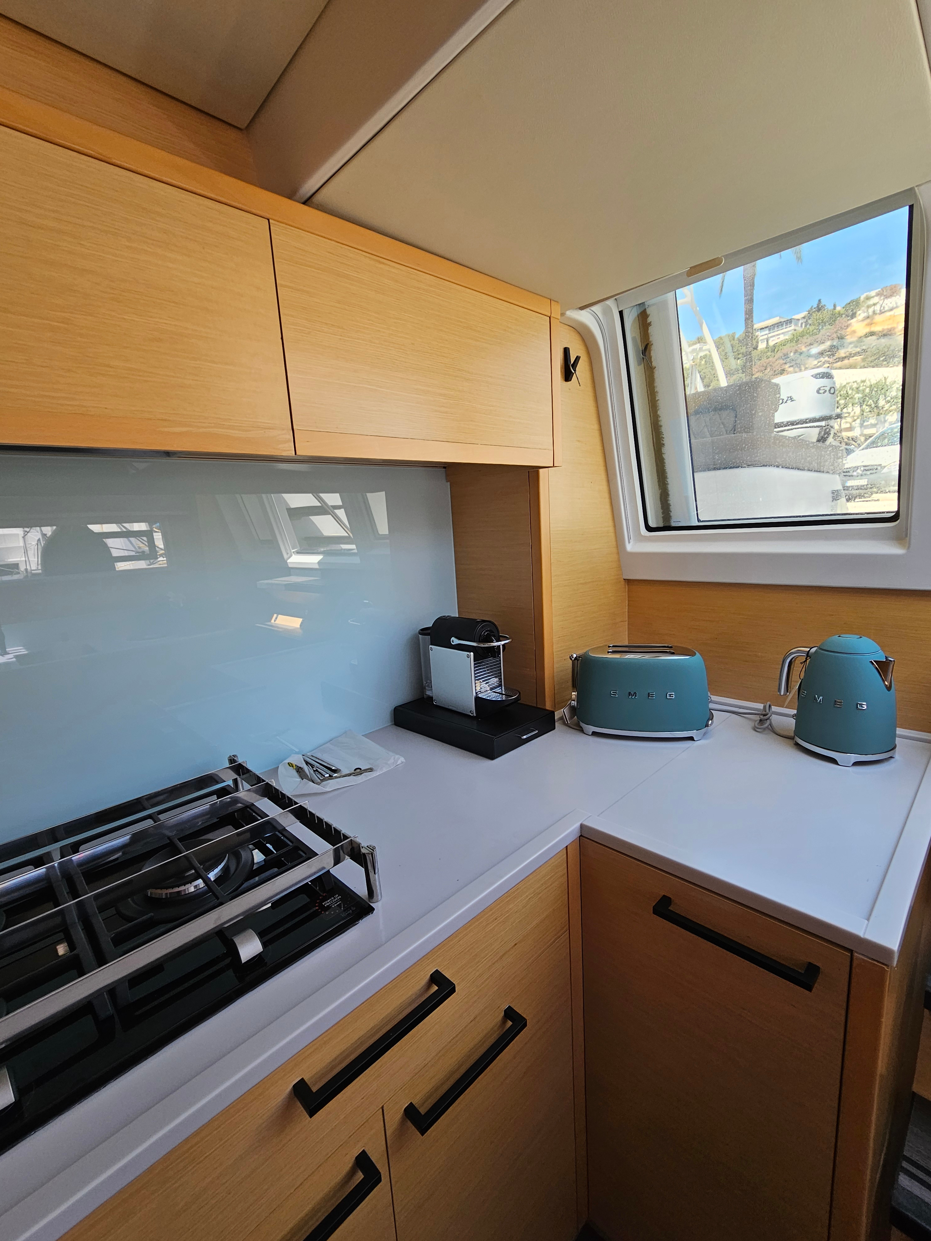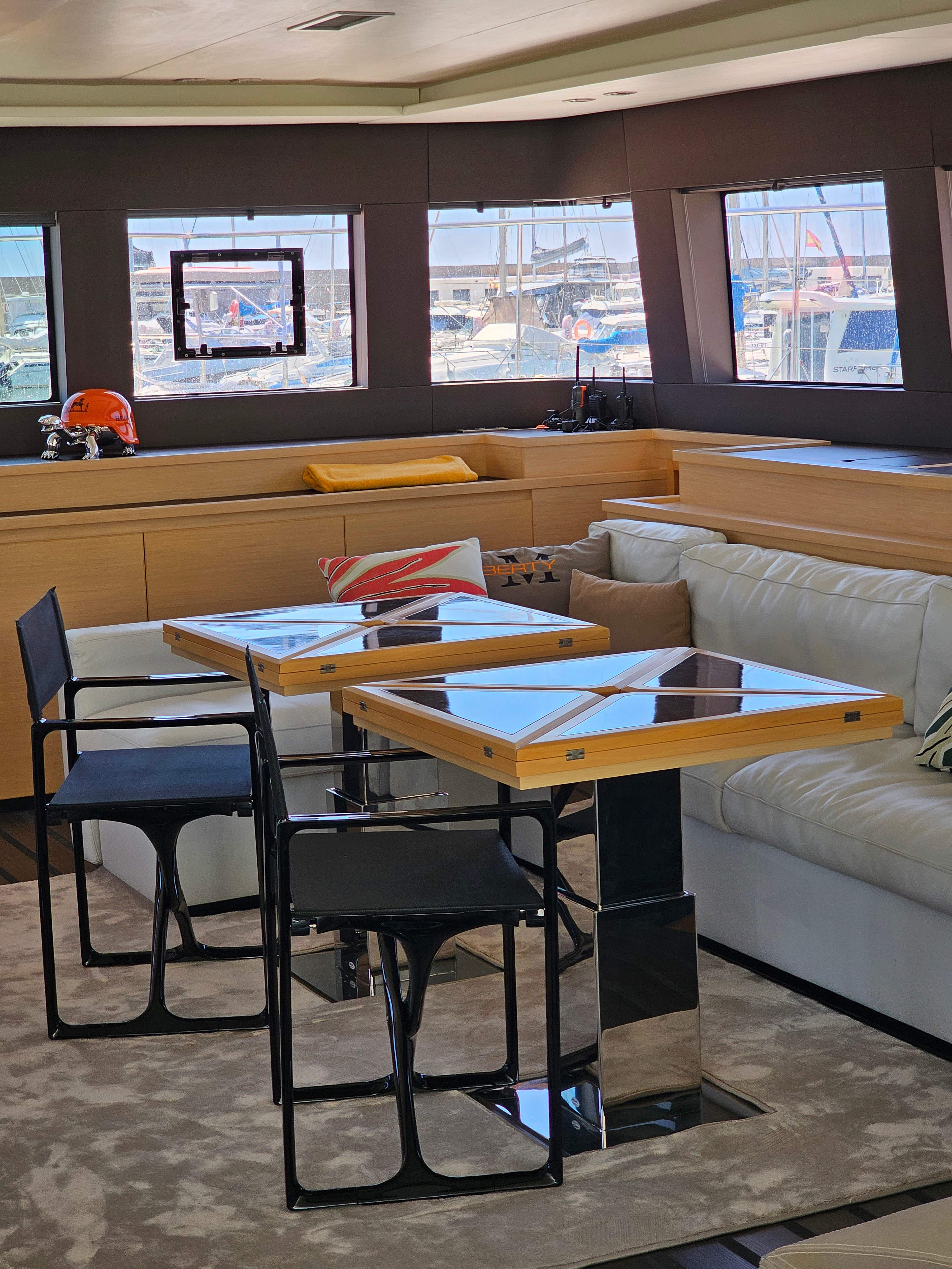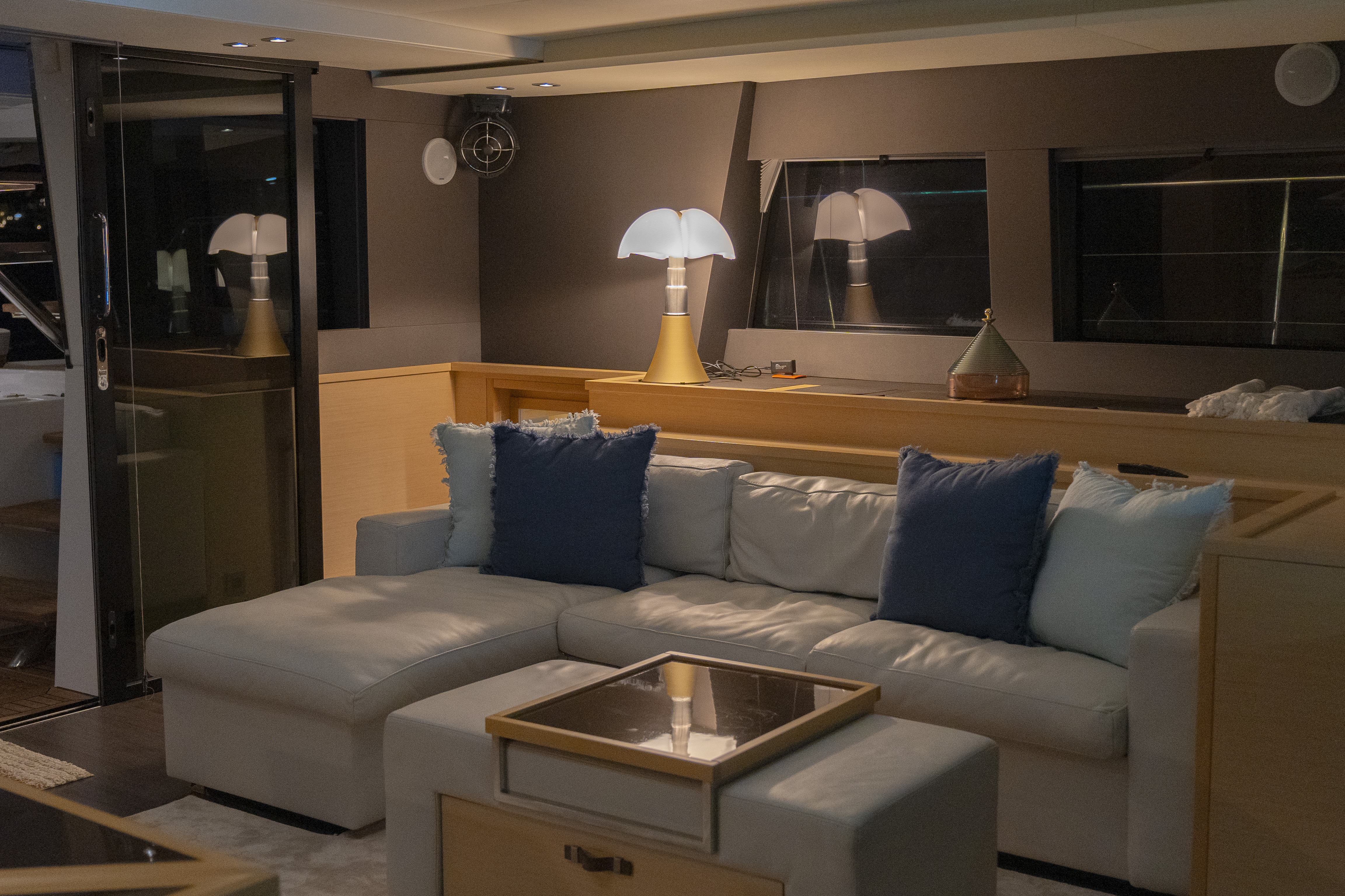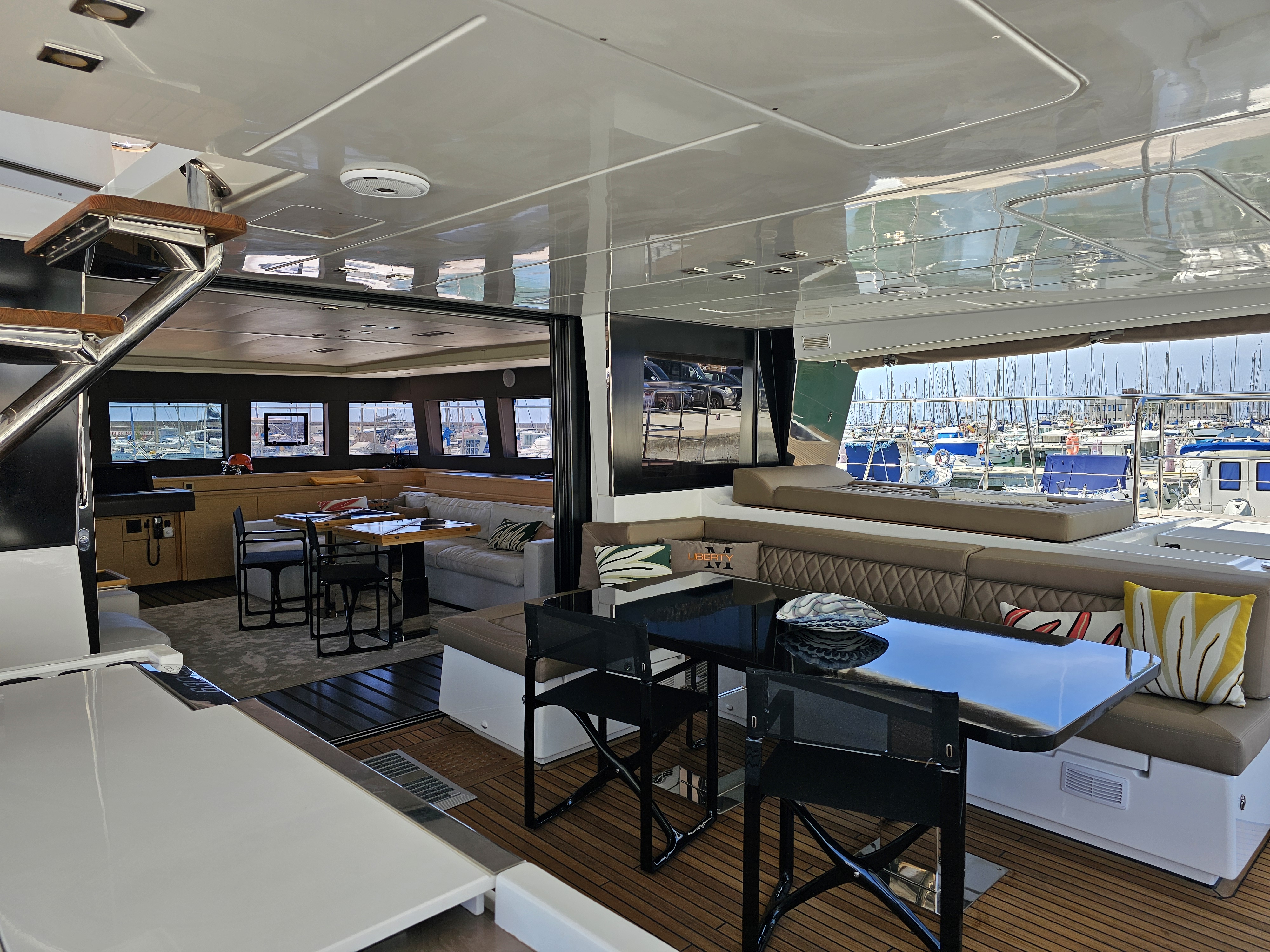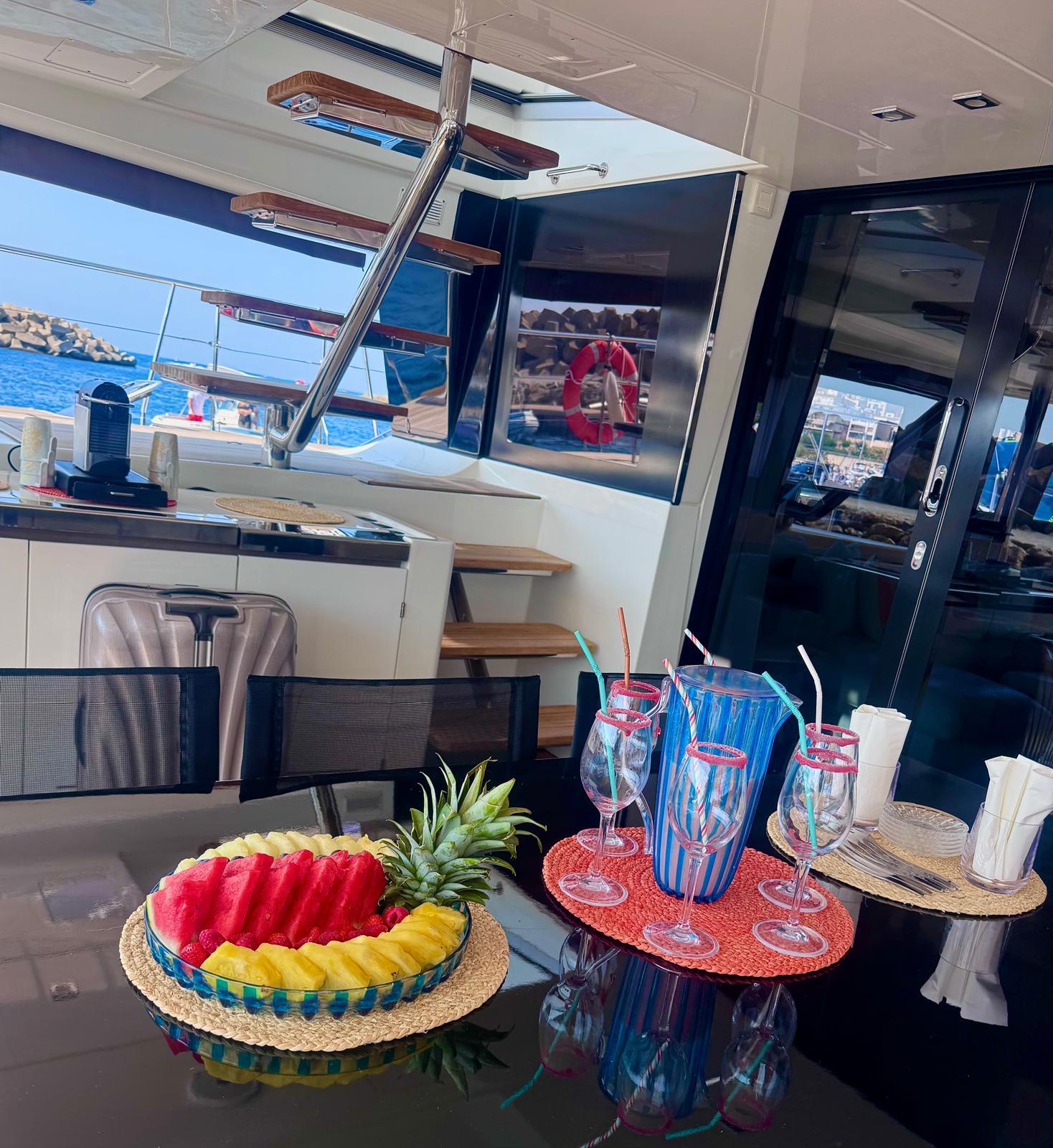 Microwave oven MieleDishwasherWasher dryer Miele FornoWine fridgeFridge with FreezerMacchina del ghiaccioTVSafe boxFansFUSION sound system in saloon, flybridge and individual sound Satellite TV antennaPeplink SystemHydraulic Tenderlift platform with remote controlHydraulic retractable gangwayScaletta per il bagnoGrill 220VFrigoriferoSundeck cushionsGeneratorePannelli solariAria condizionataRiscaldamentoTenderMarine mini scooter SUBLUEPaddle surfTowable flotation (2 person)Wake boardSnorkel kits