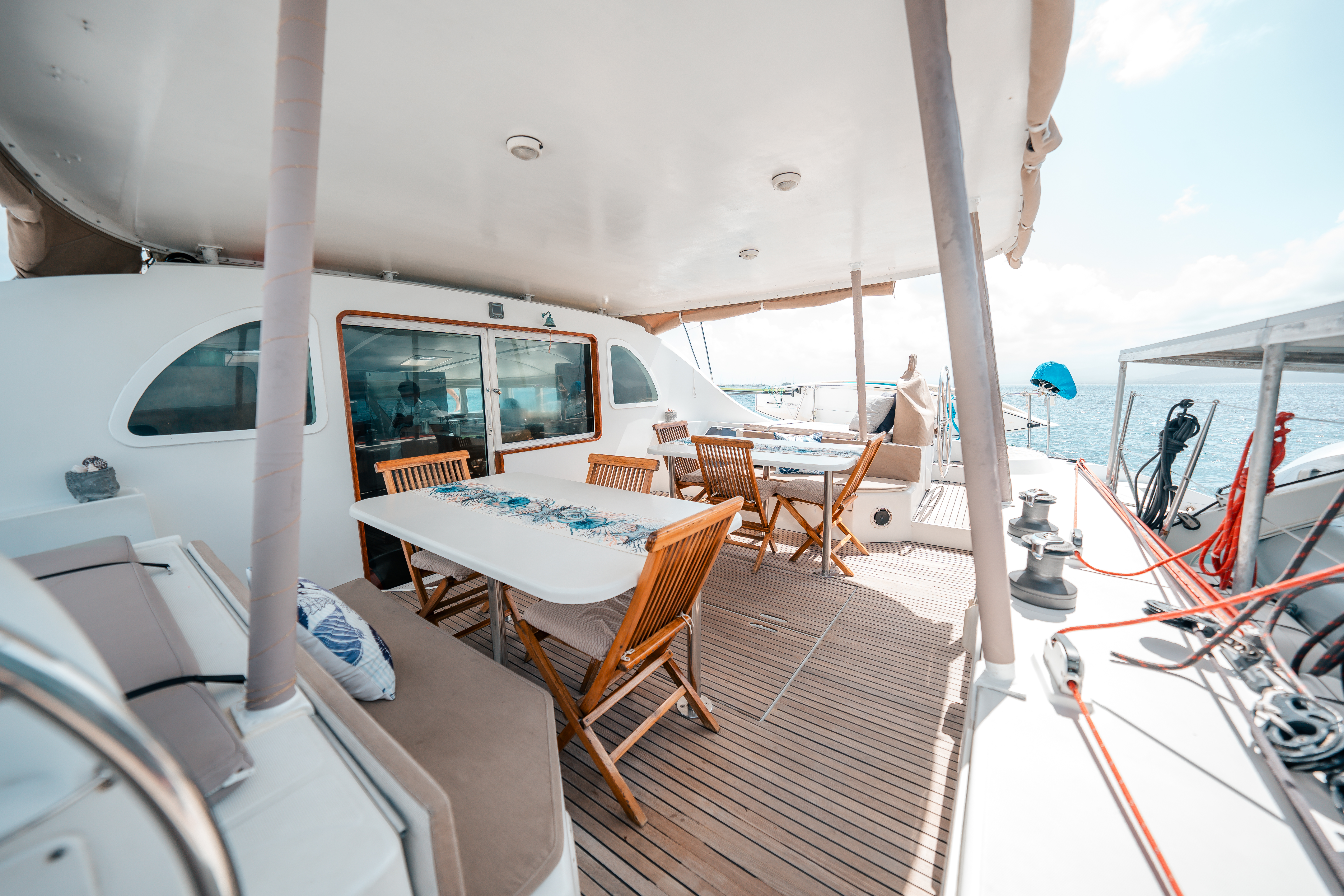 Cabin fansPaddleboardAttrezzatura per lo snorkelingDinghy with outboard engine AsciugamaniWi-FiSunchill - Floating Pool Fishing gearFully equipped galleyFornoFrigoriferoCongelatoreMacchina del ghiaccioWater fountainChartplotterGPSVHFPilota automaticoEcoscandaglio