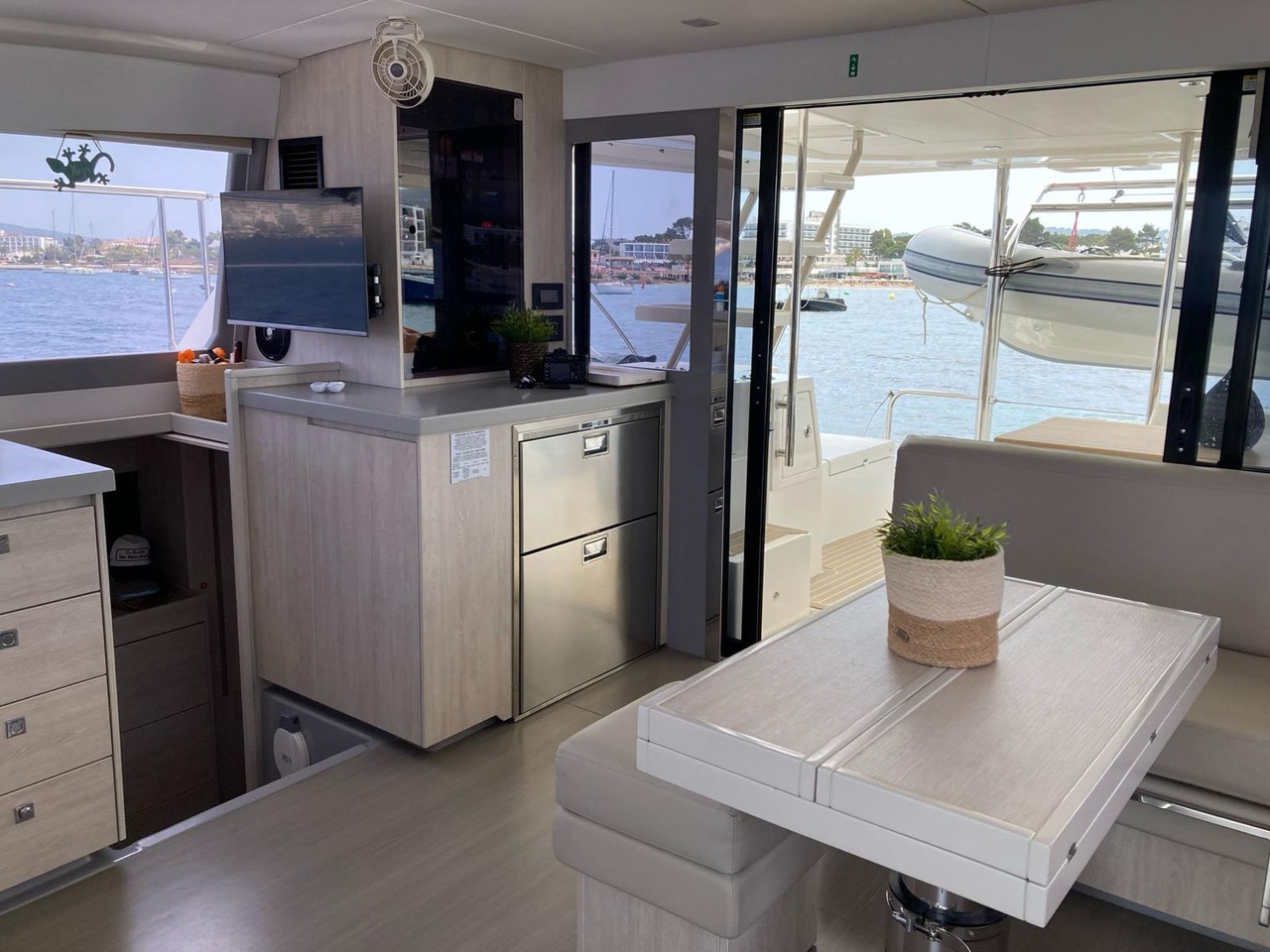 Inverter generatorWater treatment plantBarbecue and sink in the sternPlancetta Specchio di PoppaAltoparlanti in pozzettoDinghy with outbord engineSalpa ancora elettricoFlybridgeCongelatoreGenerator Interior plotterForno a microondeLuci di navigazioneRadio CD with USBSkipper beds on starboardTVWatermakersecond refrigerator on board