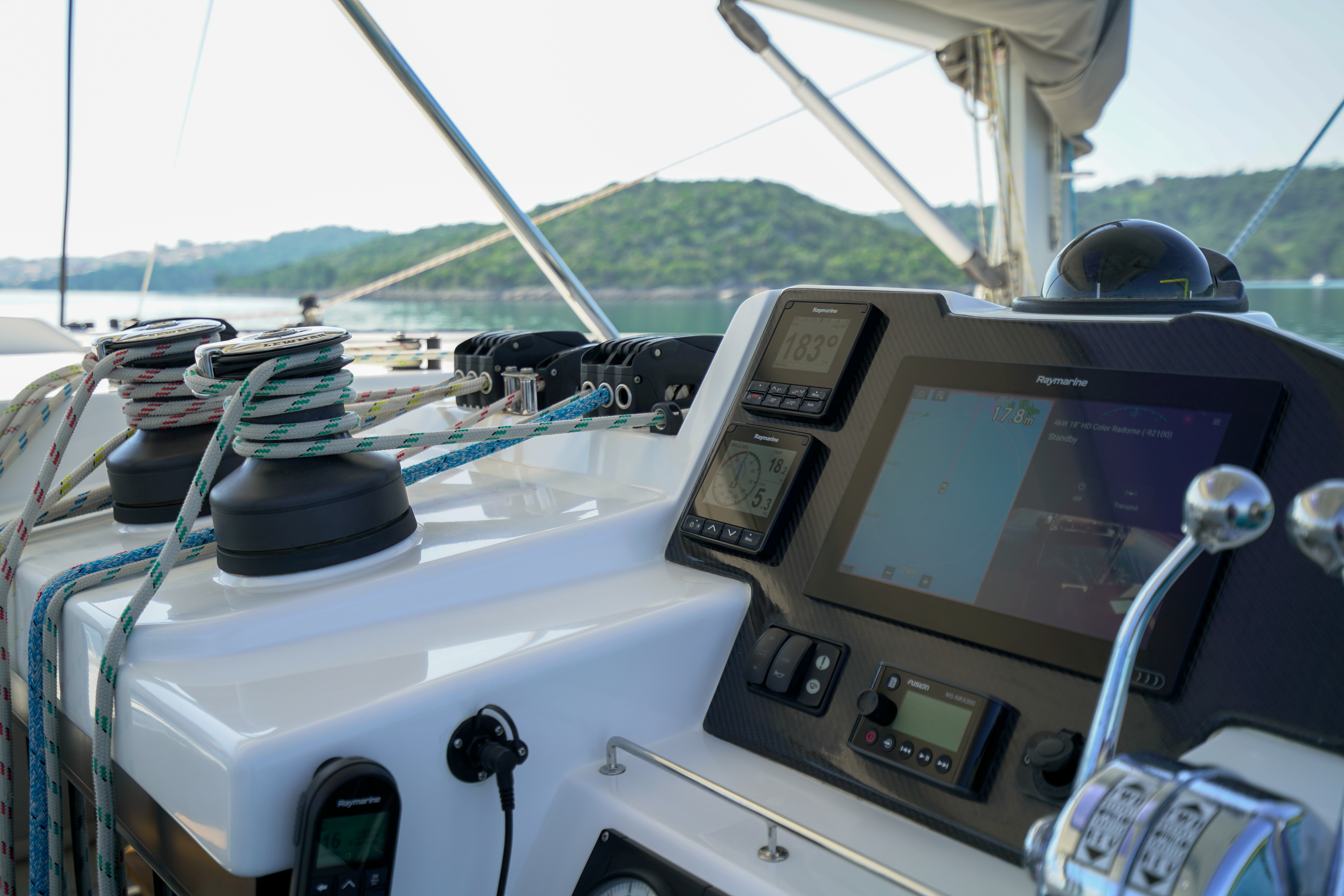 GPS ChartplotterPannello solareDinghy RigidDinghy repair boxDinghy pumpEstintoreAncoraBlack ballBlack conusPlastic bucketCanister for waterWashing machineWinch elettricoLogge/Lot/Speed/WindAISRiflettore radarAnchor lineAnchor swivelBansigoManichetta acquaSet of toolsWire cuterCuscini in pozzettoCockpit/stern, outside showerBimini topPasserellaSprayhoodParabordiCime di ormeggioRadio SAT TVWi-Fi InternetAltoparlanti esterniDishwasherBombole gasFornoForno a microondeStazione VentoMezzo marinaioPilota automaticoHarbour guidesSet di navigazioneDistress flare boxSegnale sonoroSelf inflating life vestLife belts (Safety harness)Kit di primo soccorsoZattera di salvataggioAria condizionataGeneratoreInverterRiscaldamentoCaricabatterieShore connection 220 V
