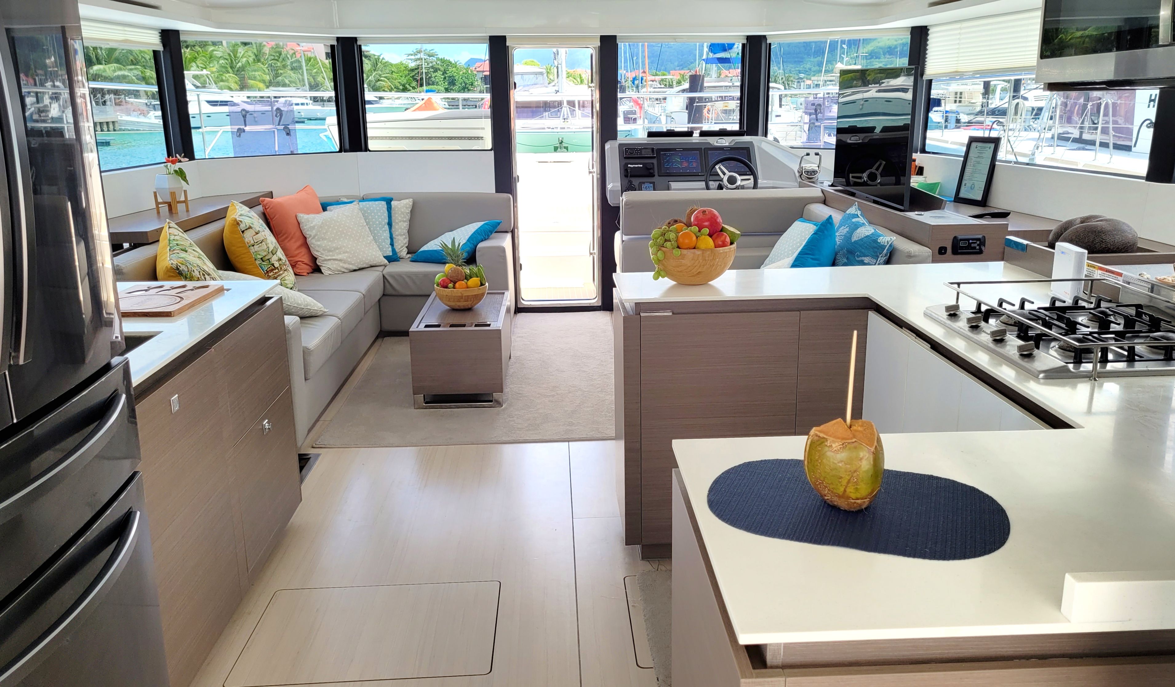 Aria condizionataForno a microondeFrigoriferoMacchina del ghiaccioKitchen utensilsCookerCongelatoreRiscaldamentoWater makerAudio systemAltoparlanti esterniInside speakersBathing platform Fishing setSnorkel setsRadarTenderSalon GPS plotterOutside GPS plotterBiminiPilota automaticoFlybridgeOutside showerGeneratore