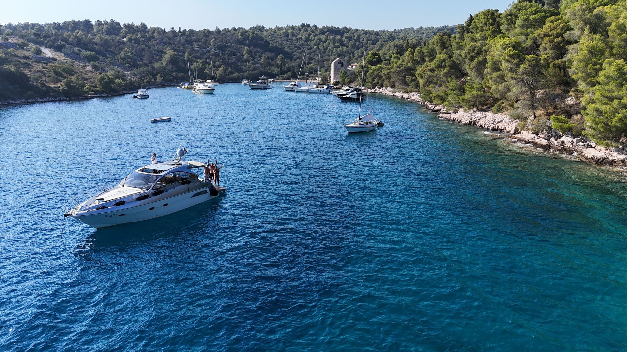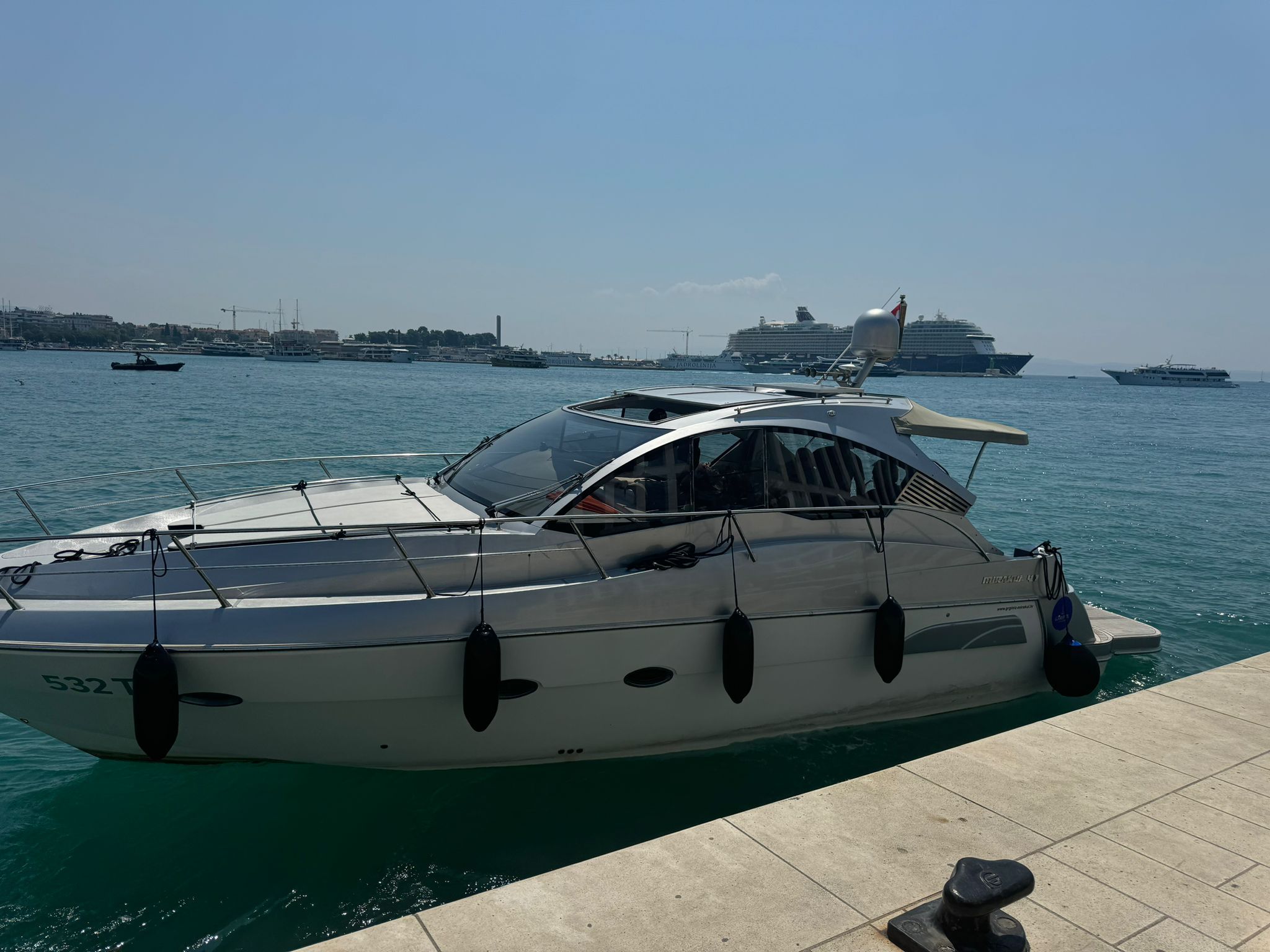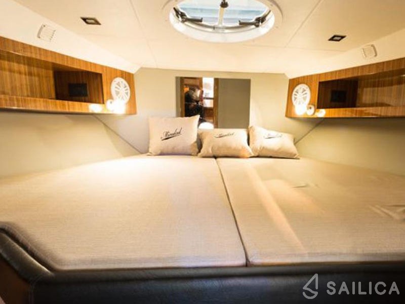 AISPilota automaticoBinocoloBussolaGPSGPS chart plotter Navigation set RadarFire extinguisher Life jackets First aid kit VHF radio Air Conditioning Generatore220V shore power + battery chargerAncora di rispettoSun deck Bathing platform Electric anchor windlass Cockpit/stern, outside shower ParabordiTeak deck Transom doorFrigoriferoLavelloKitchen utensilsCongelatoreElectric hob for cooking Hot water Kitchen utensils (cutlery, pots, pans)Snorkeling equipment Bluetooth player Bluetooth player / MP3 / radio / cockpit speakersWet bar (cockpit fridge, sink)LED lighting (cockpit floor, underwater, side)