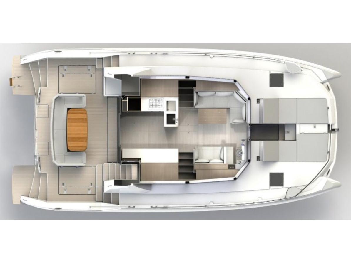 Tavolo in pozzettoLockerBussolaBiminiLiferaft lockerHardtop coverElectric grillLED floor lightingWetbarSpring linesParabordiMooring/dock linesCinture di sicurezzaBellFlare kitBinocuolarsEstintoreTimone a ruotaBarra Timone di emergenzaSecondary anchorStainless steel rollerSelf-draining anchor locker w/ coverPrimary anchorSalpa ancora elettricoScaletta per il bagnoHorseshoe buoyFlag pole holderPompa di sentina elettricaPompa di sentina manualeHot water tankGPS PlotterLED interior lightsPresa 12VFuel gaugeAlternatorChartplotterPilota automaticoRadio VHFTVRadio CD player/mp3Altoparlanti in pozzettoDVDShore power cableHouse battery bankUSB ports in cabinsCaricabatterieMultifunction touchscreenEcoscandaglioPannelli solariUSB socket at switch panel, doubleUSB socket at chart table, doubleUnderwater lightsMicrowave ovenRear view cameraSegnale sonoroFixed propellerFuel filterEngine room ventilation fans and ductingWater separator