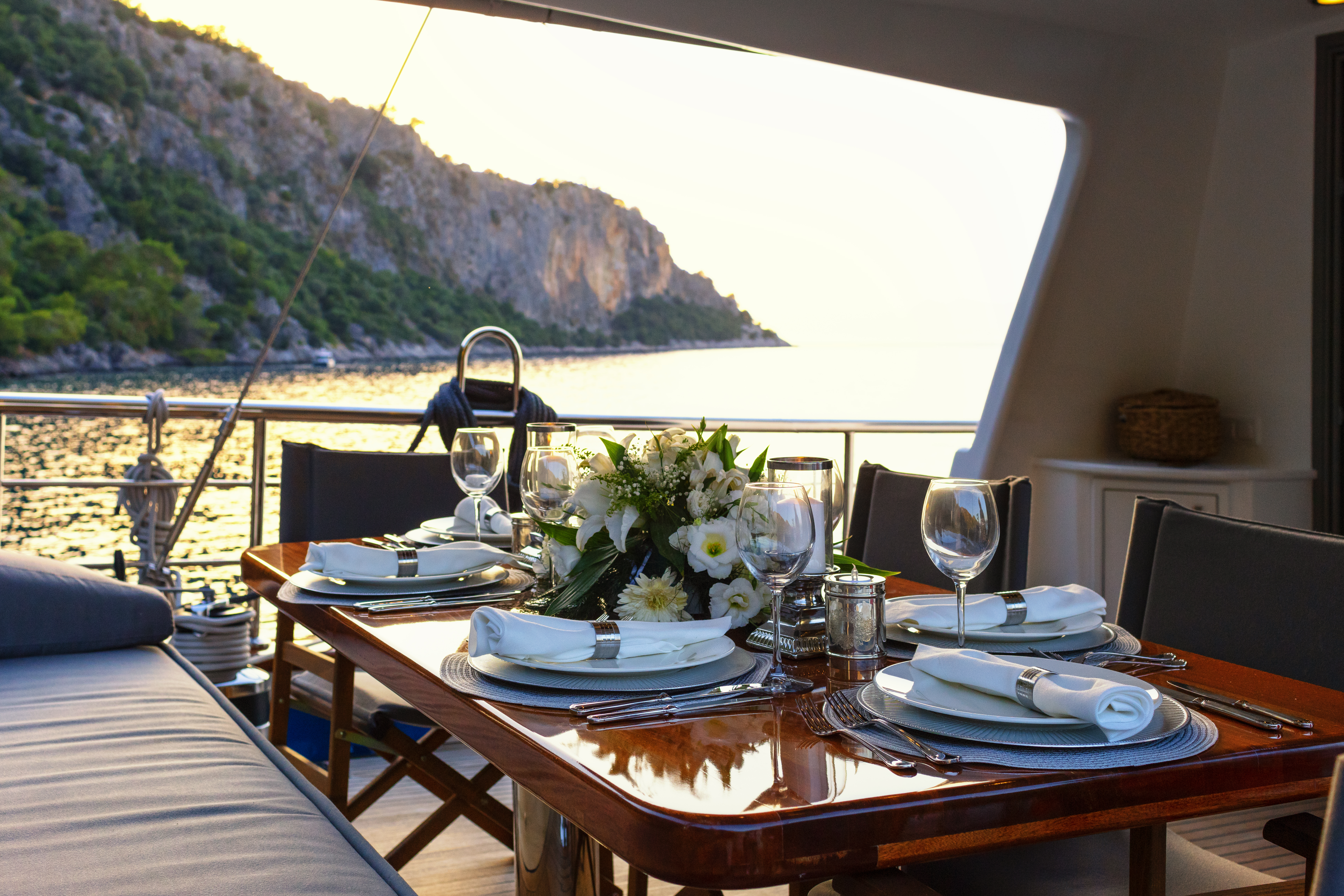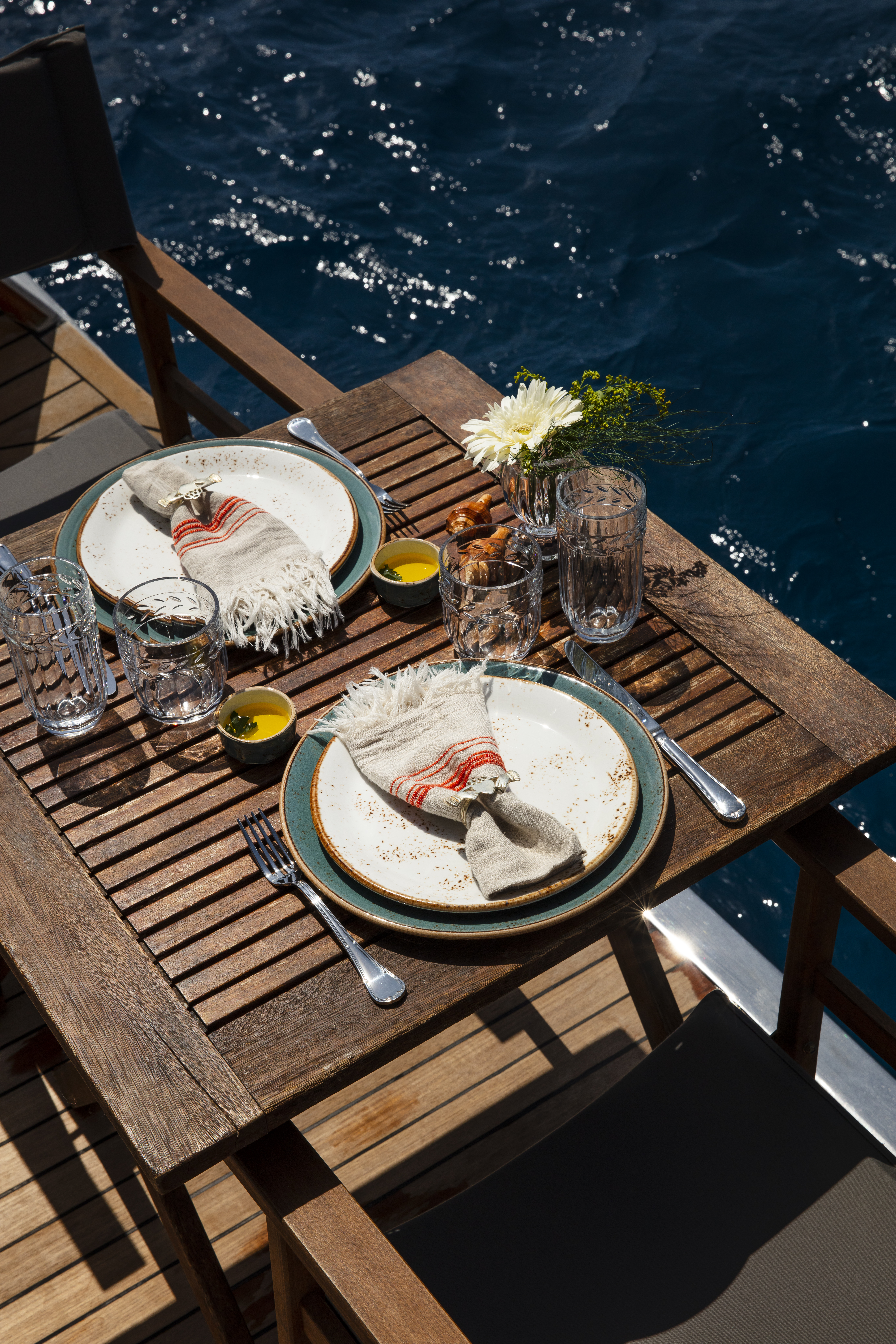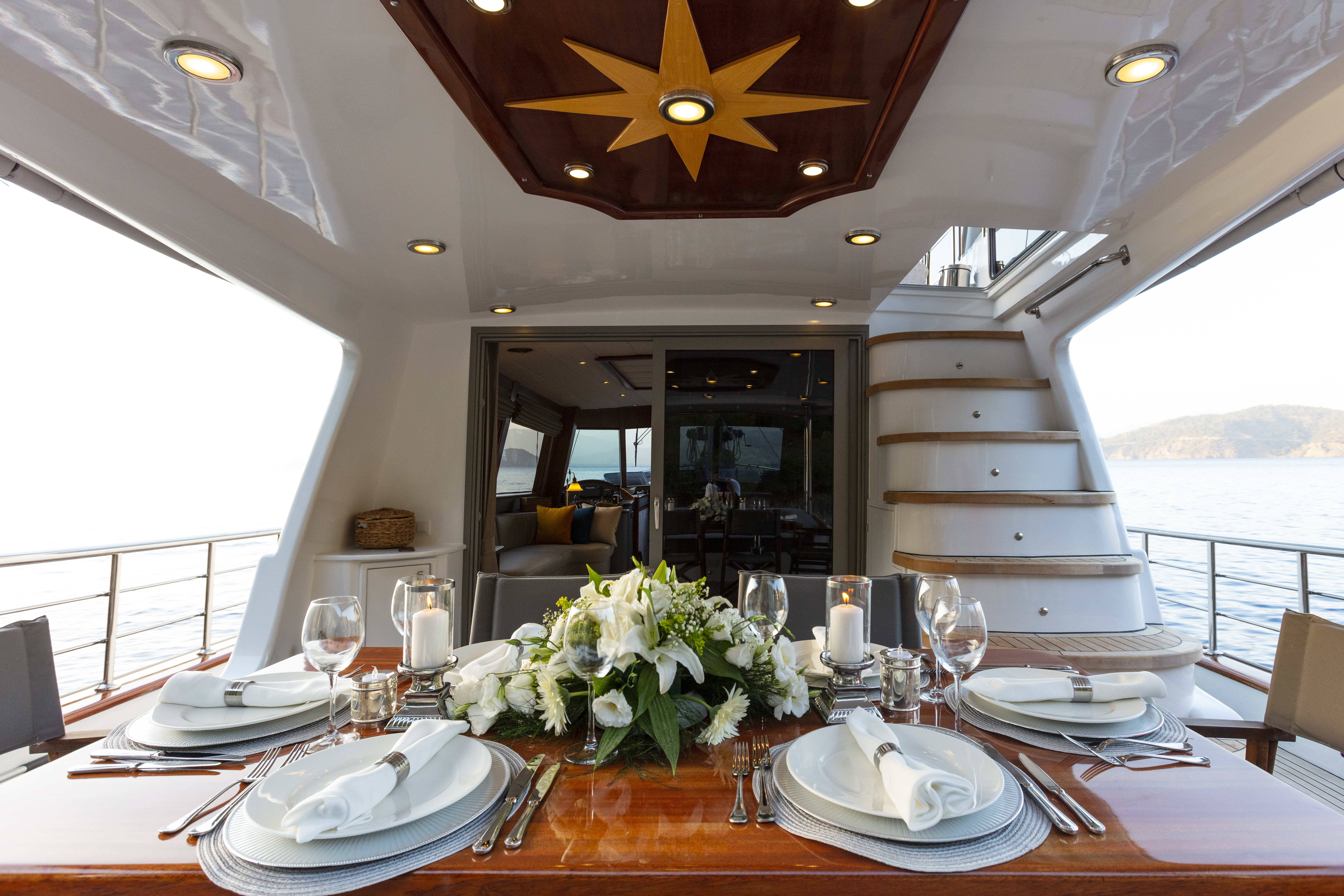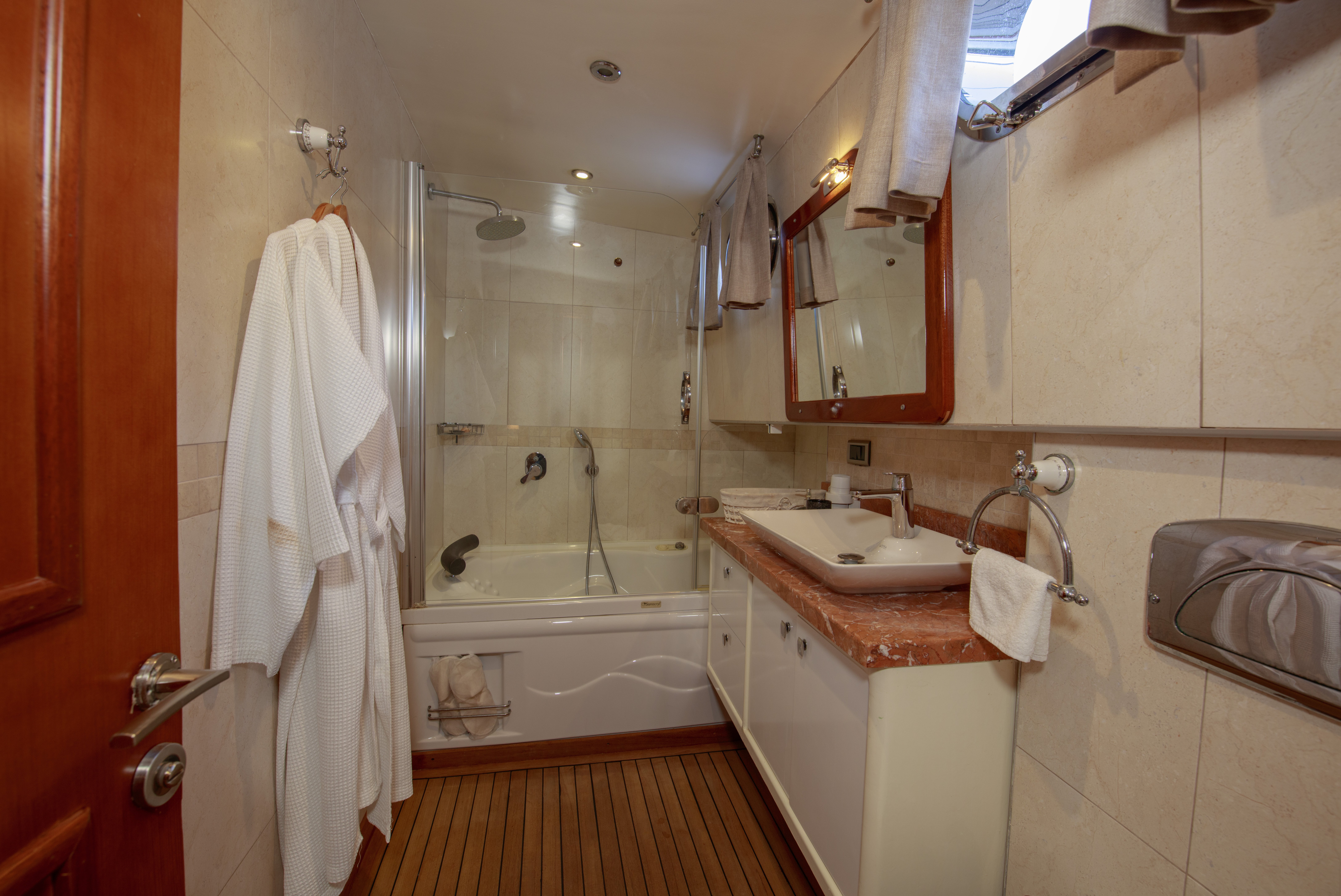 Lettore CDDVD playerHair dryerFornoFrigoriferoWashing machineCongelatoreDishwasherBeverage coolerStufaCoffee machineWine coolerFlybridgeGenoaStaysailElectric cranesService boatPedal boatFishing tackleHammockJacuzziOpen air cinema systemSnorkelSunbathing matsPilota automaticoVHFRadarDepth indicatorBussolaSAT communication deviceGPSFull navigation equipmentSound systemAria condizionata220V/24V/12VAutomatic fire extinguisherGiubbotti di salvataggioZattera di salvataggio