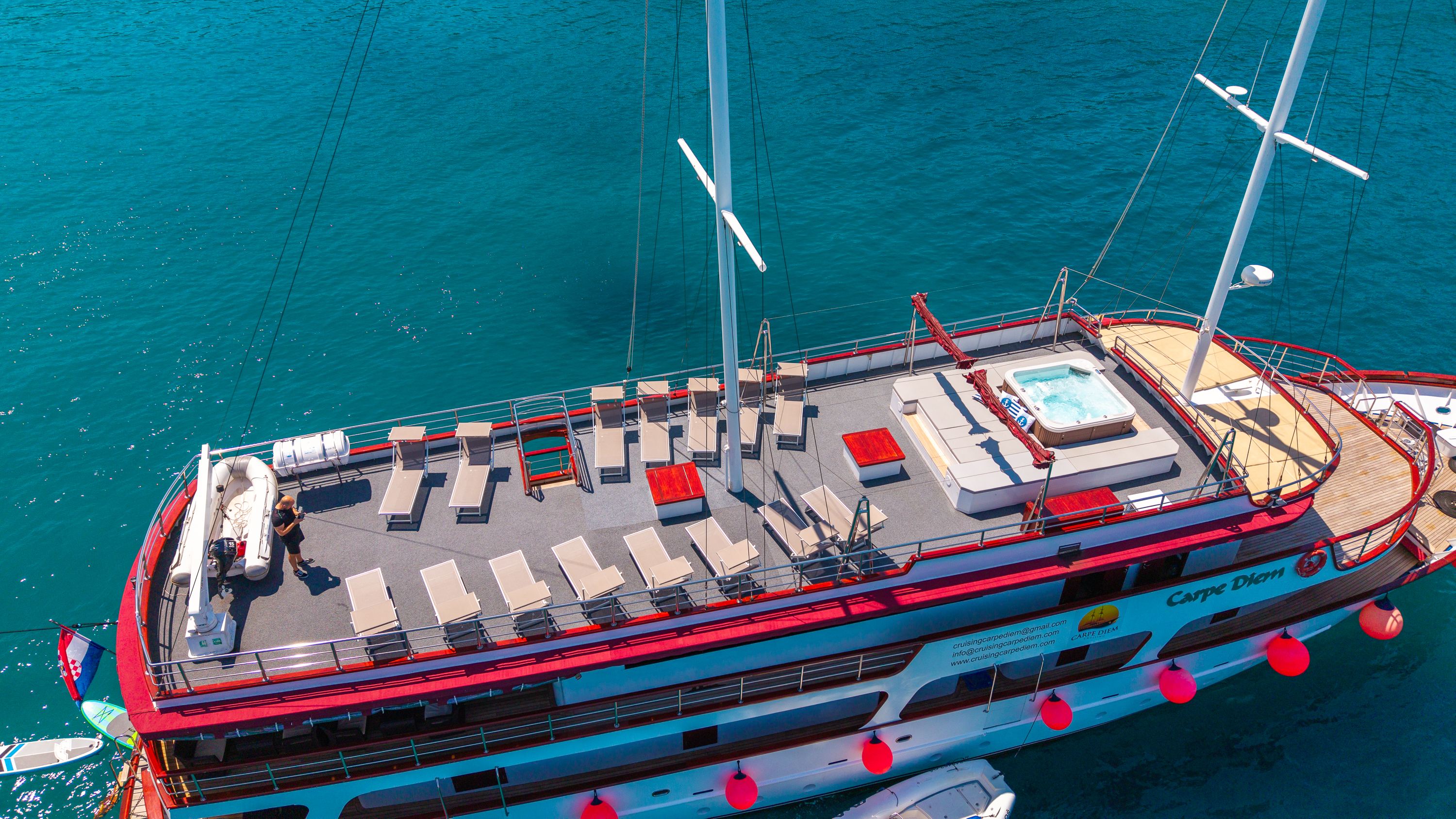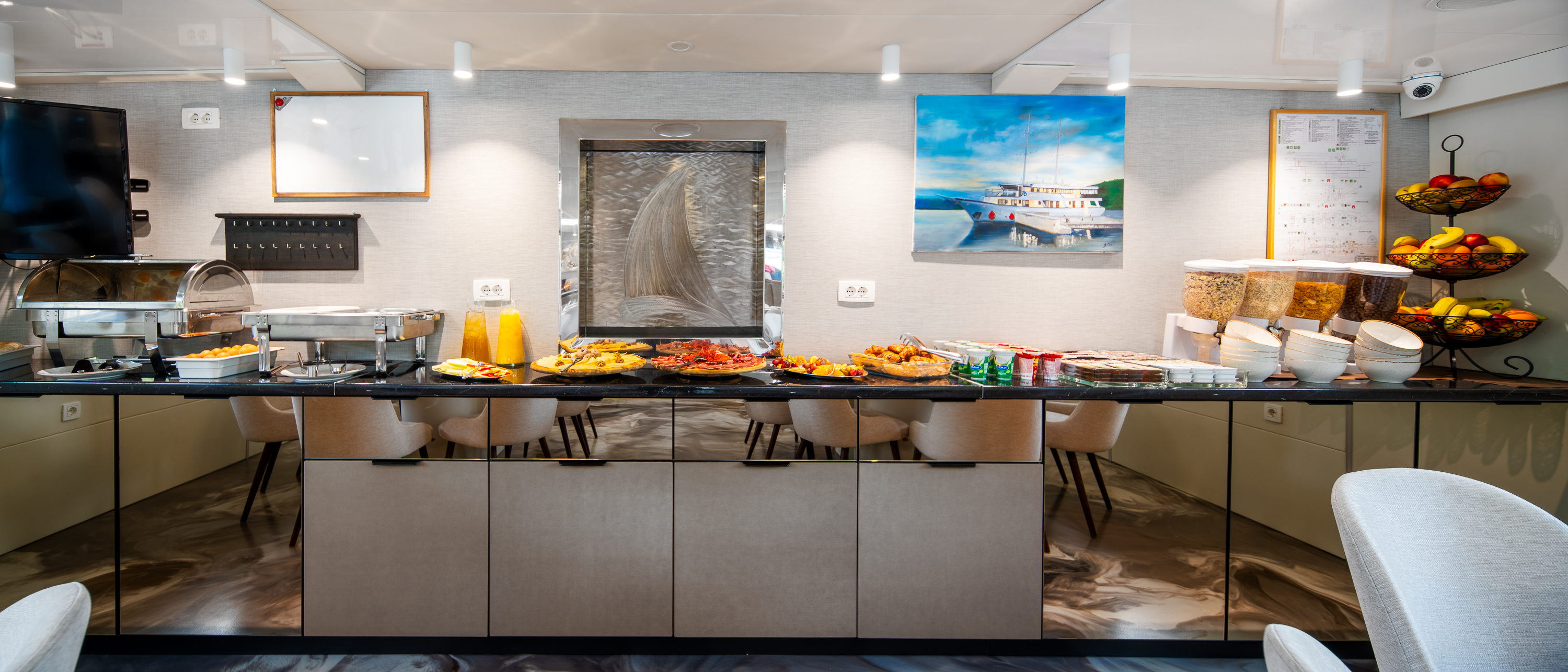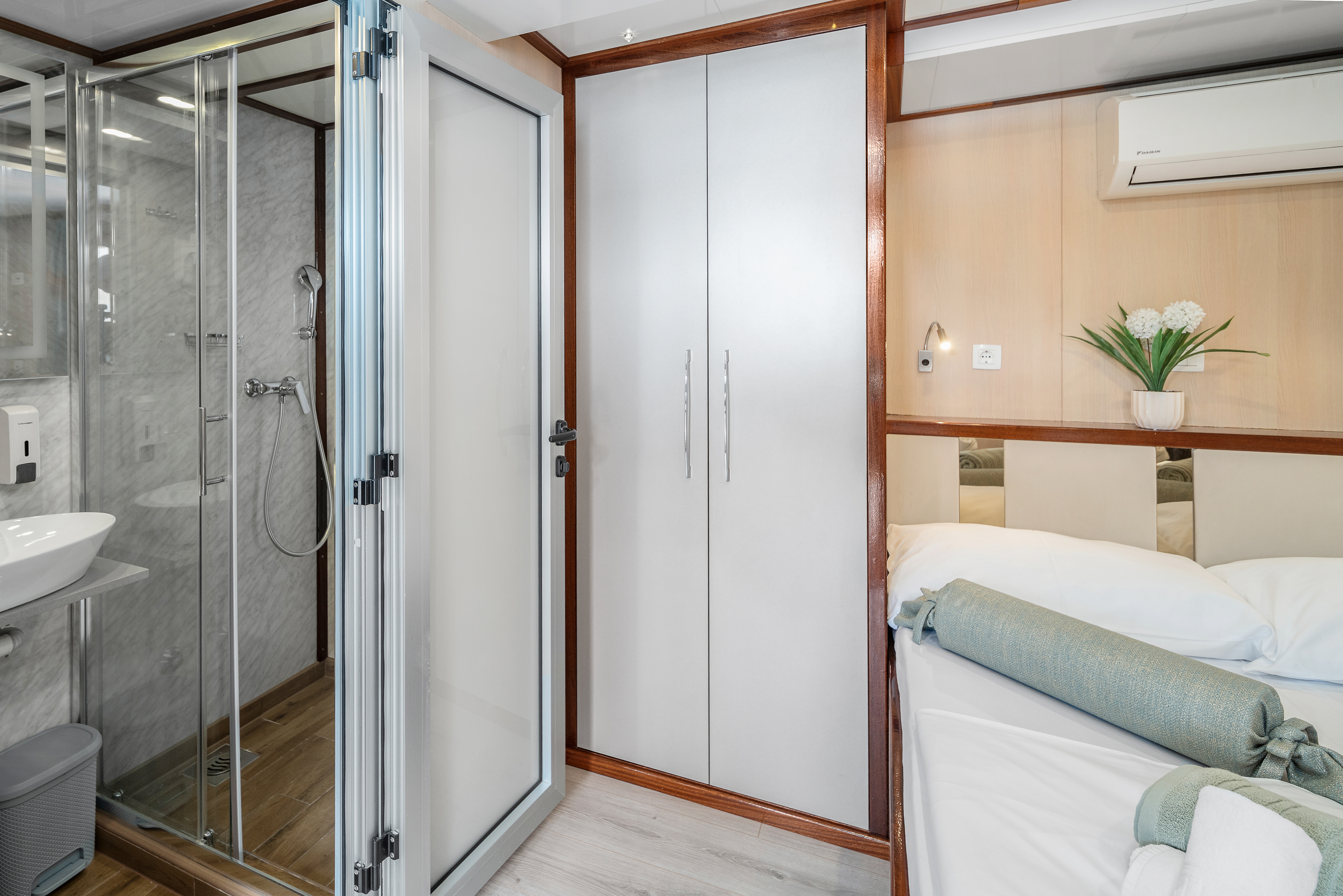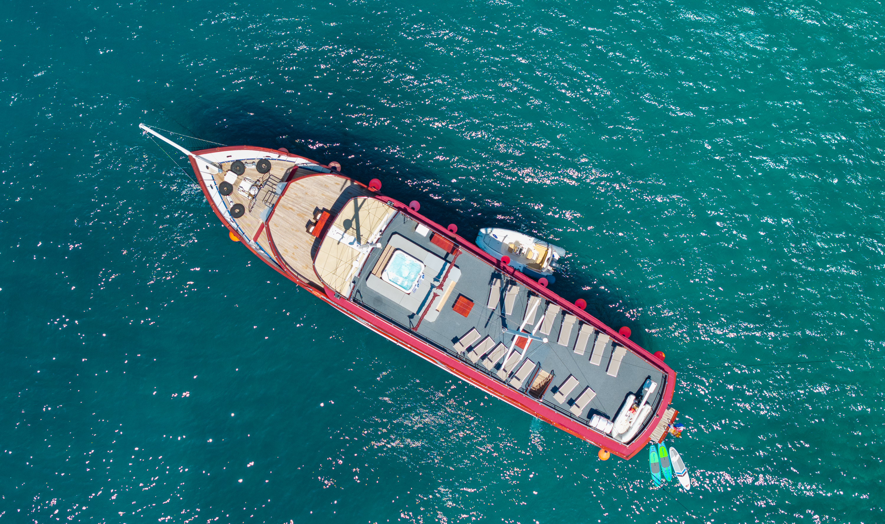 Twin bed cabin (with pullman)Aria condizionataDouble bed cabinLenzuolaAsciugamaniSwimming platformAft deck loungeSmart TVRoom ServiceStainless steel boarding ladder with irocco stepsHidraulic steering system with steering position at bridgeSun awningSun deckDocciaBoard gamesWi-FiSunbathing cushionsSunbathing areaCompasTrue heading autopilotEcoscandaglioSamyung color radarStandard solas navigation lightsTwo horseshoe bouys with warning lightsSolar life jackets for each passengerAutomatic inflatable liferaft for 50 peopleSmoke detectors in each cabinCentral alarm for fire equipmentPortable fire extinguishers for corridors and salonFire extinguishers in the engine using aerosolVHF radio TenderSUPSnorkel and Fishing gearCinema with a projector on the sun deckToorx Race CrossSpinning BikeProfessional Diving equipment – (extra charge)