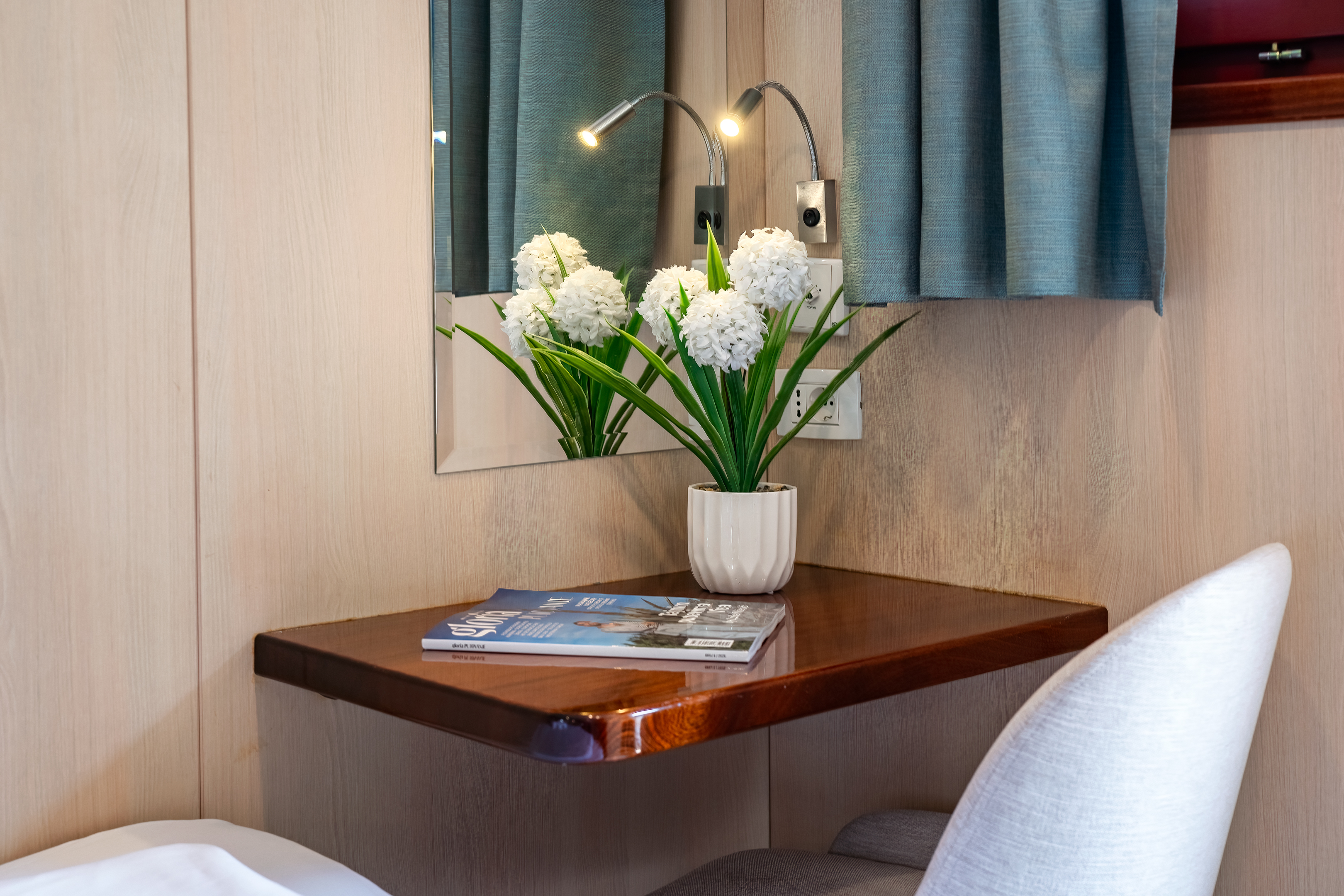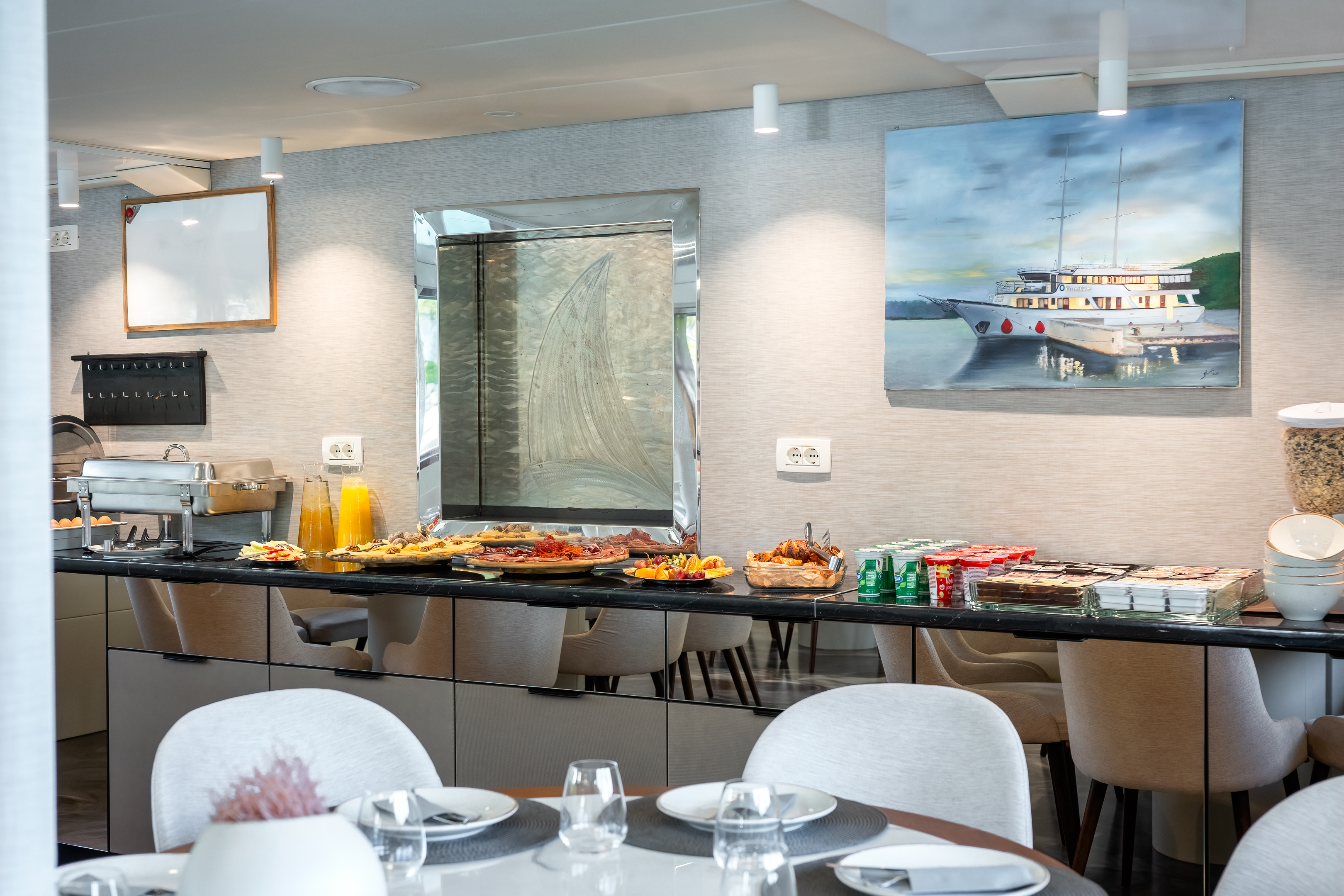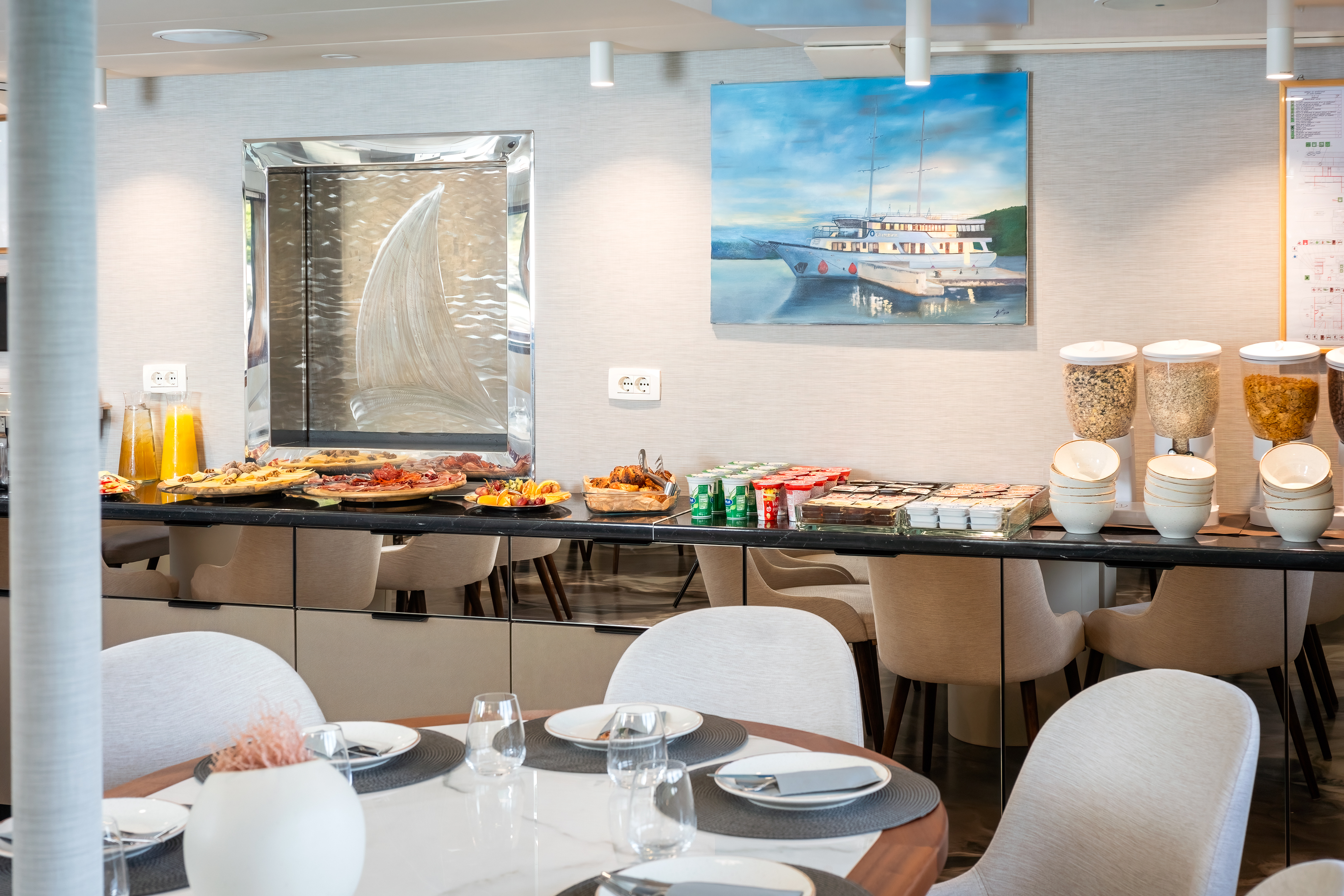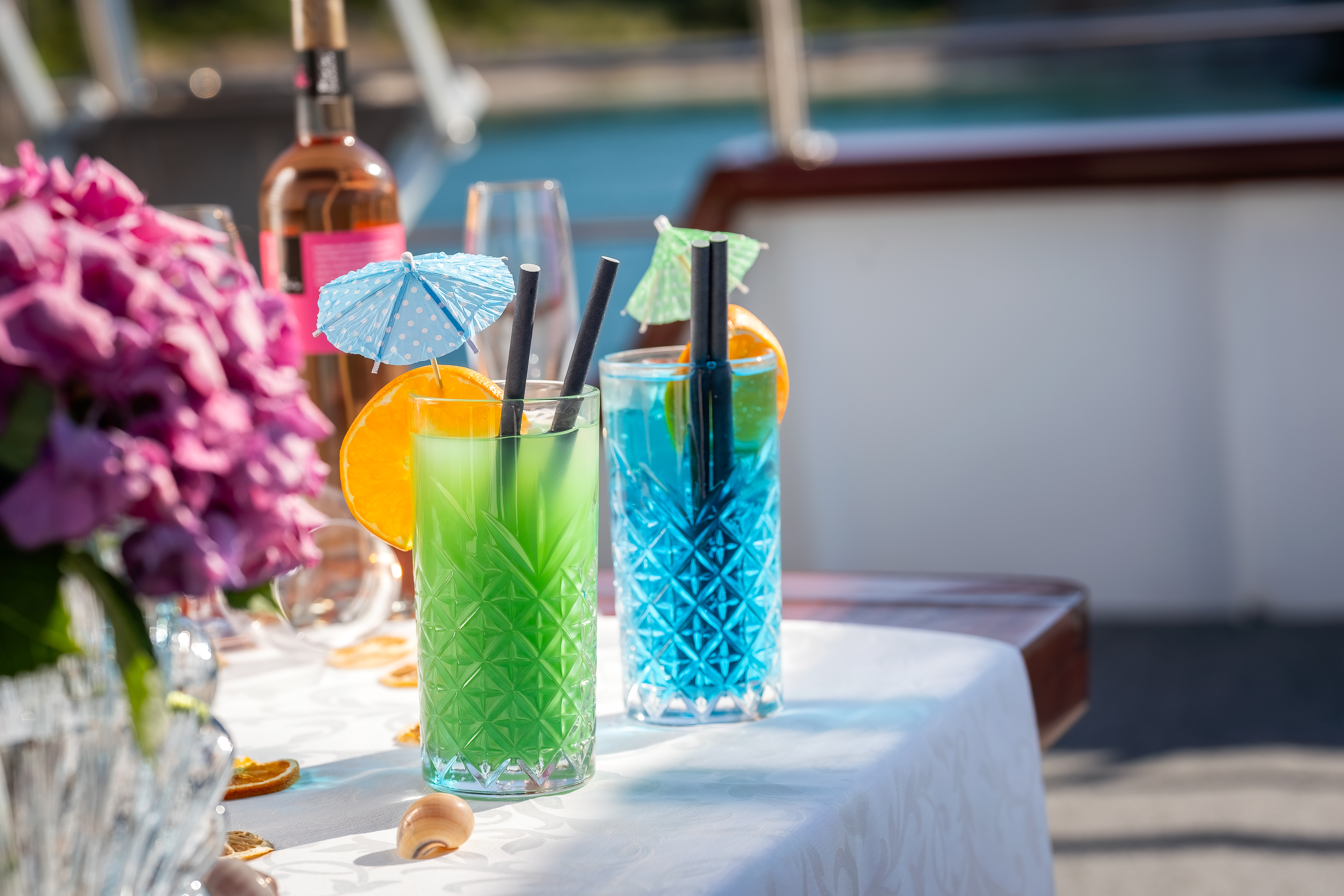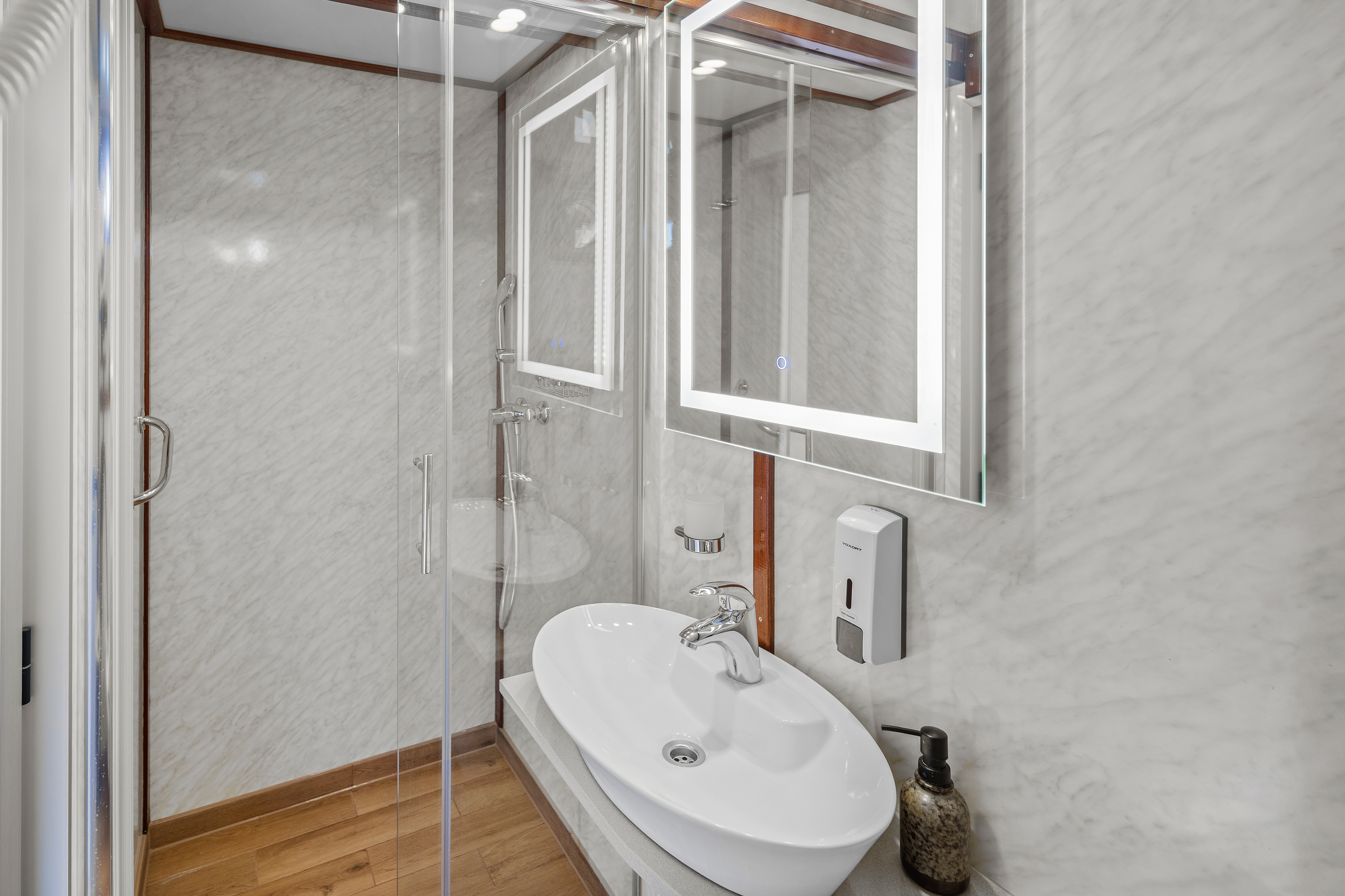Twin bed cabin (with pullman)Aria condizionataDouble bed cabinLenzuolaAsciugamaniSwimming platformAft deck loungeSmart TVRoom ServiceStainless steel boarding ladder with irocco stepsHidraulic steering system with steering position at bridgeSun awningSun deckDocciaBoard gamesWi-FiSunbathing cushionsSunbathing areaCompasTrue heading autopilotEcoscandaglioSamyung color radarStandard solas navigation lightsTwo horseshoe bouys with warning lightsSolar life jackets for each passengerAutomatic inflatable liferaft for 50 peopleSmoke detectors in each cabinCentral alarm for fire equipmentPortable fire extinguishers for corridors and salonFire extinguishers in the engine using aerosolVHF radio TenderSUPSnorkel and Fishing gearCinema with a projector on the sun deckToorx Race CrossSpinning BikeProfessional Diving equipment – (extra charge)