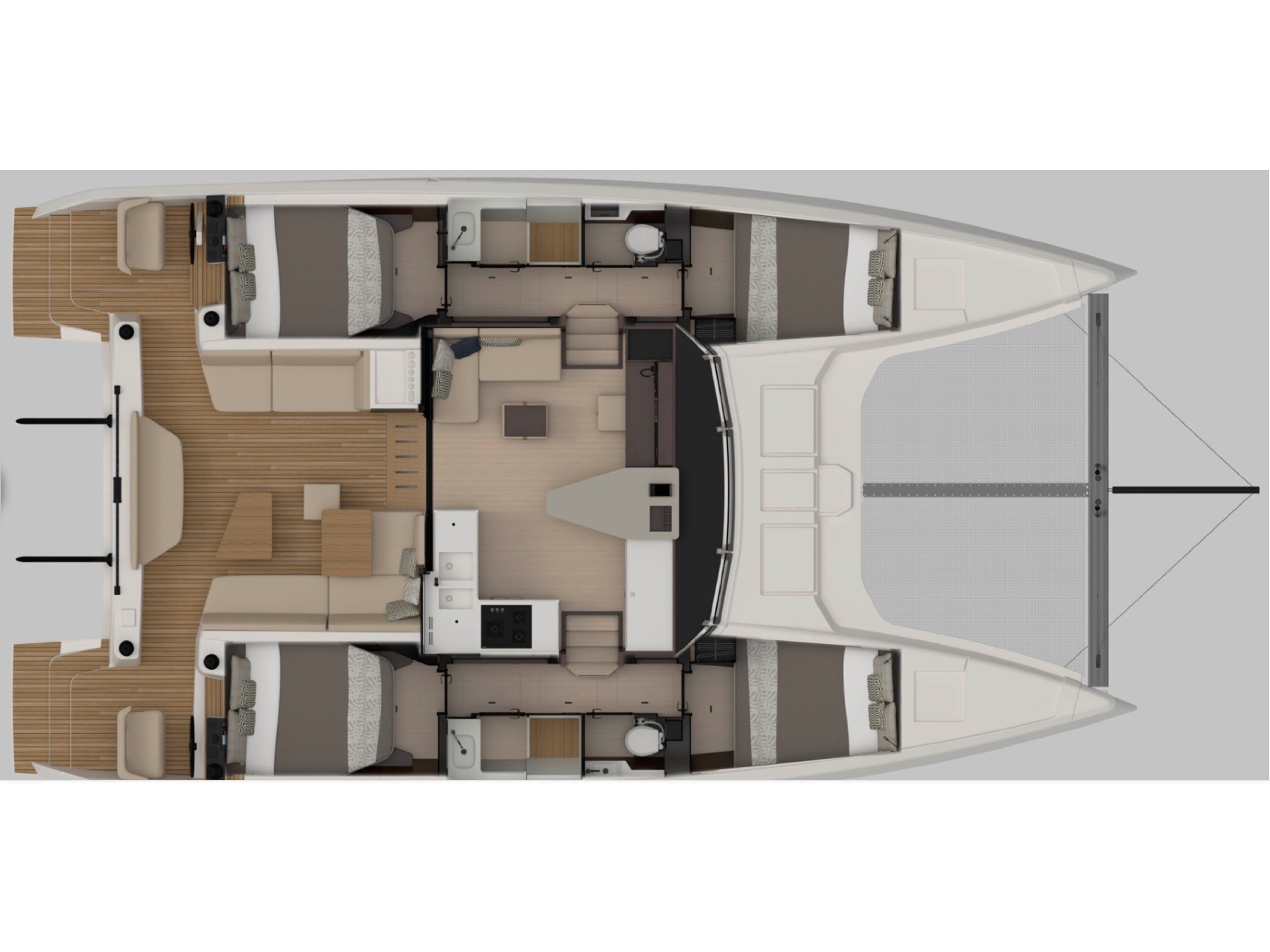 AC in every cabinFrigoriferoSkipper CabinSunbedsWind speedBiminiUSB Chargers in every cabinInterior speakersExterior speakersAttrezzatura per lo snorkelingDiving Mask & FlippersCaricabatterieRadio/USB/BluetoothWC elettriciFansEssential equipmentOutside cushionsAir ConditionWatermakerGeneratoreSafety beltsRazzi di segnalazioneKit di primo soccorsoBarra Timone di emergenzaTagliacimeSegnale sonoroEmergency lightsBlack ballsHorseshoe buoysEPIRB - Boa di emergenzaEstintoreFloating lightsTorciaZattera di salvataggioLifejacketsPilota automaticoBinocoloGPS charter plotter - cockpitIMRAY mapsCarte nauticheManualeSpeedometer (Speed log)VHFStazione VentoCongelatoreAcqua caldaFornoKitchen utensilis (galley equipment, cutlery)StufaAnchor winchMain & spare anchor with chainMezzo marinaioScaletta per il bagnoDoccetta esternaManichetta acquaCuscini in pozzettoTenderSprayhoodScaletta per il bagnoPozzetto in teakManiglia WinchLenzuolaConvertible table in salonCusciniAsciugamaniWinch elettricoPannelli solari220 Volt socketLithium Batteries