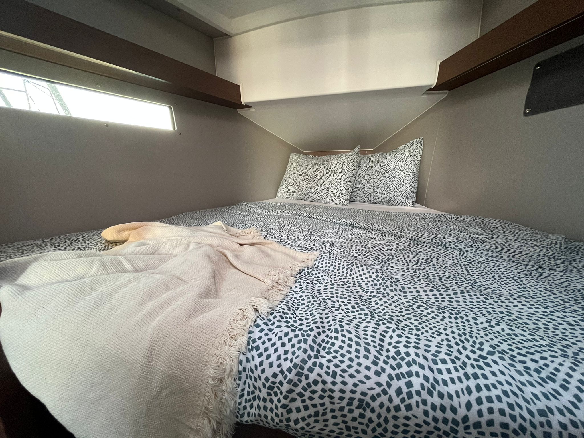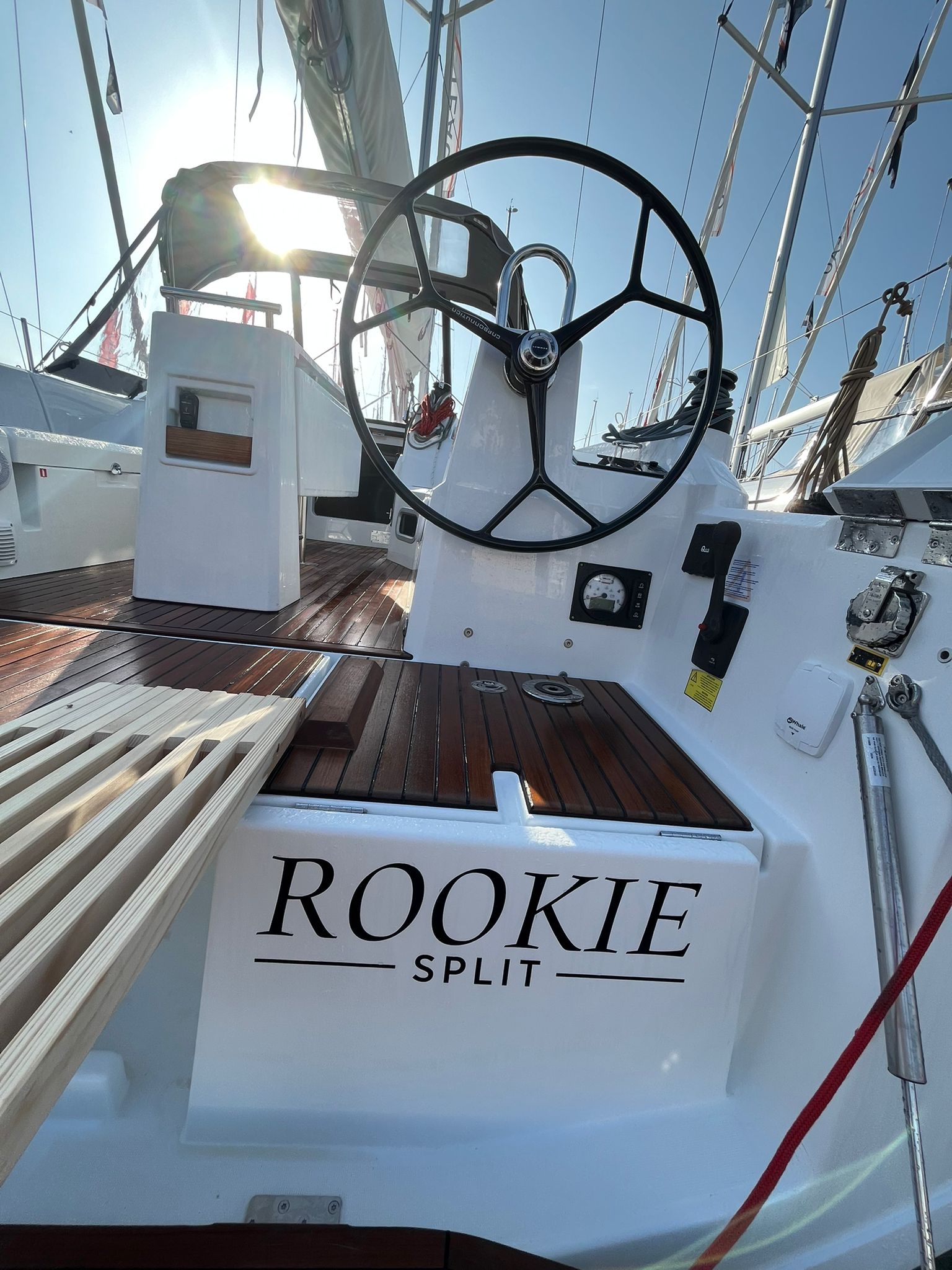 YanmarFrigoriferoStove/ovenAcqua caldaBombole gasKitchen utensilsLenzuolaTowel set ( 2 pcs )Heating LED lightningSink(C/W water)FansSerbatoio dell'acquaMosquito nets on portholesSalon tableFixed table in saloonRadioTenderCinture di salvataggioGiubbotti di salvataggioSegnale sonoroFirst aid setEstintoriEmergency signalsPompa di sentina elettricaPompa di sentina manualeAxeBinocoloBansigoFloating smoke signalCaricabatterieAlimentazione a terra 220VPilota automaticoGPS charter plotterVHFFM radio/USB connectionBussolaCarte di nauticheManualeStazione VentoAdditional service batteriesHelmSprayhoodBiminiAncora di rispettoSalpa ancora elettricoDoccetta a poppaAltoparlanti in pozzettoTavolo in pozzettoTeakMezzo marinaioBaloon fender - aftChain and rope for spare anchorParabordiPasserellaLazy bagGenoa avvolgibileRanda steccata