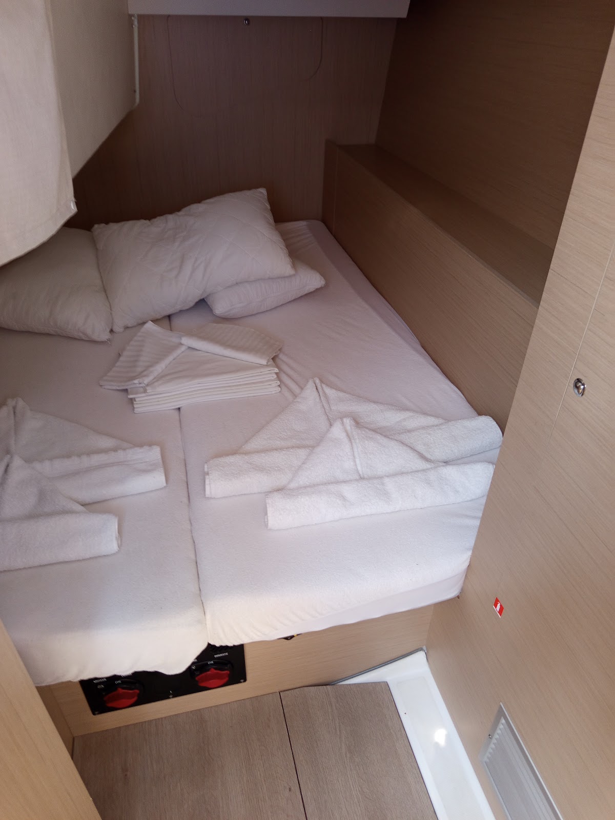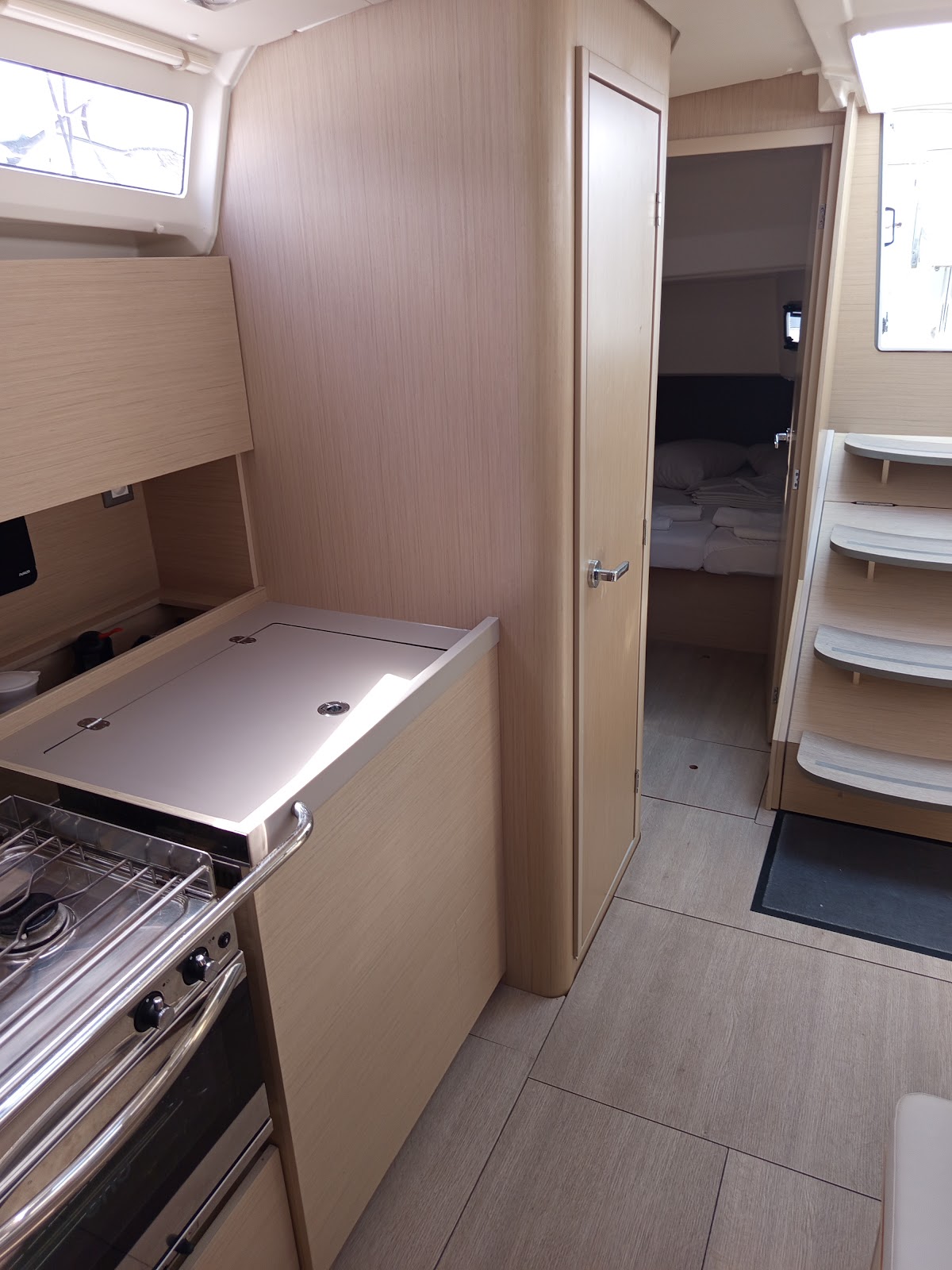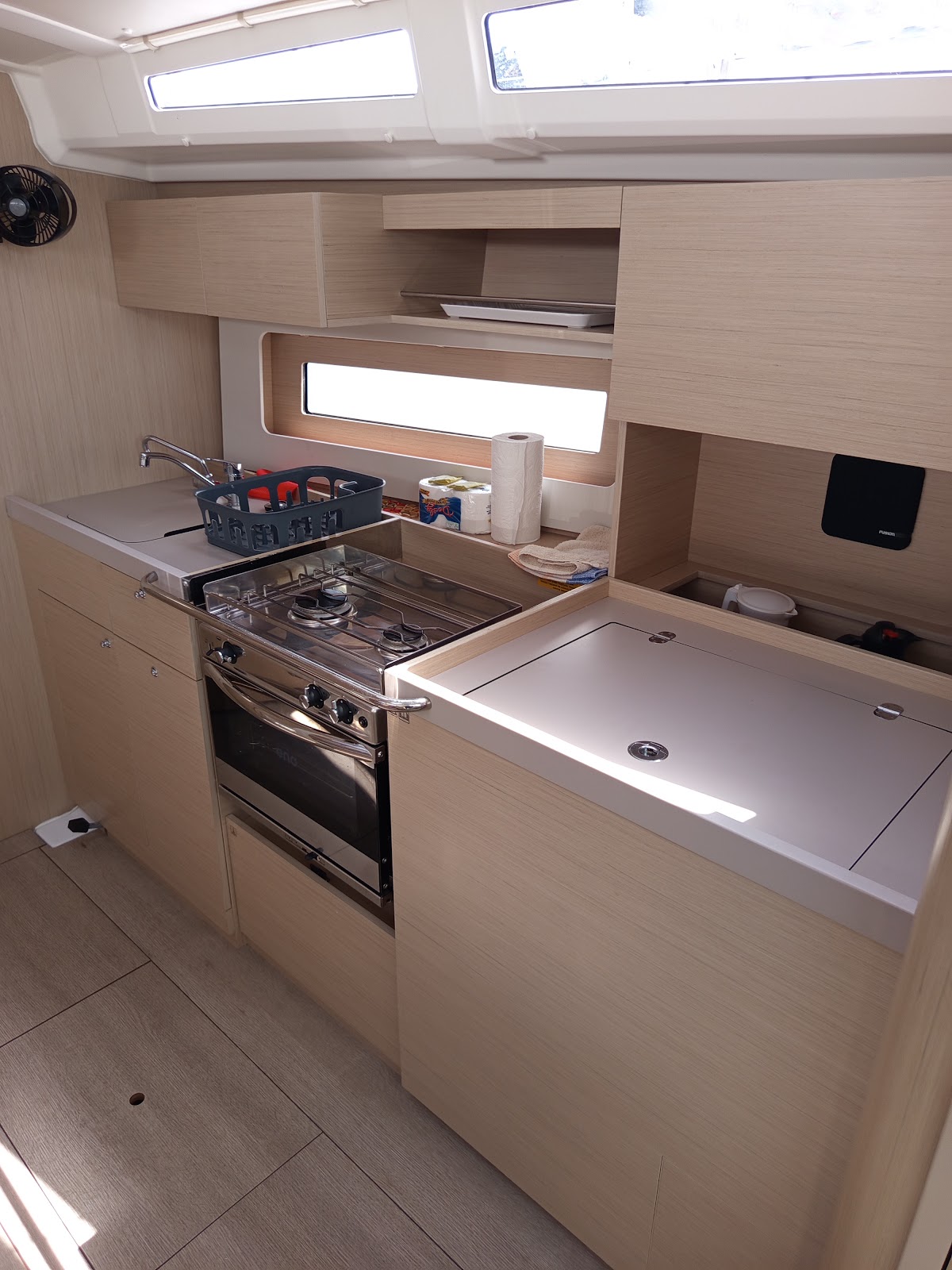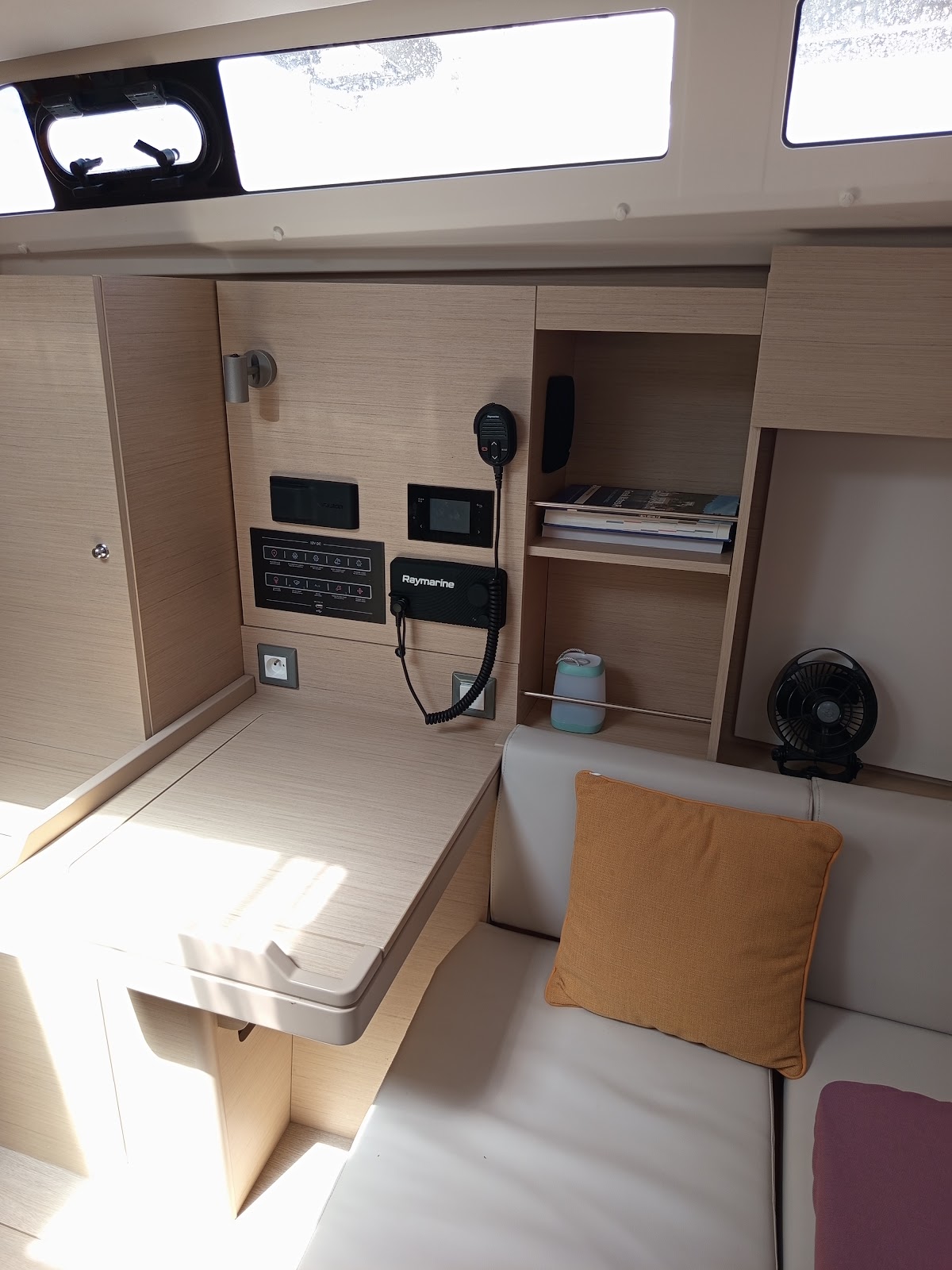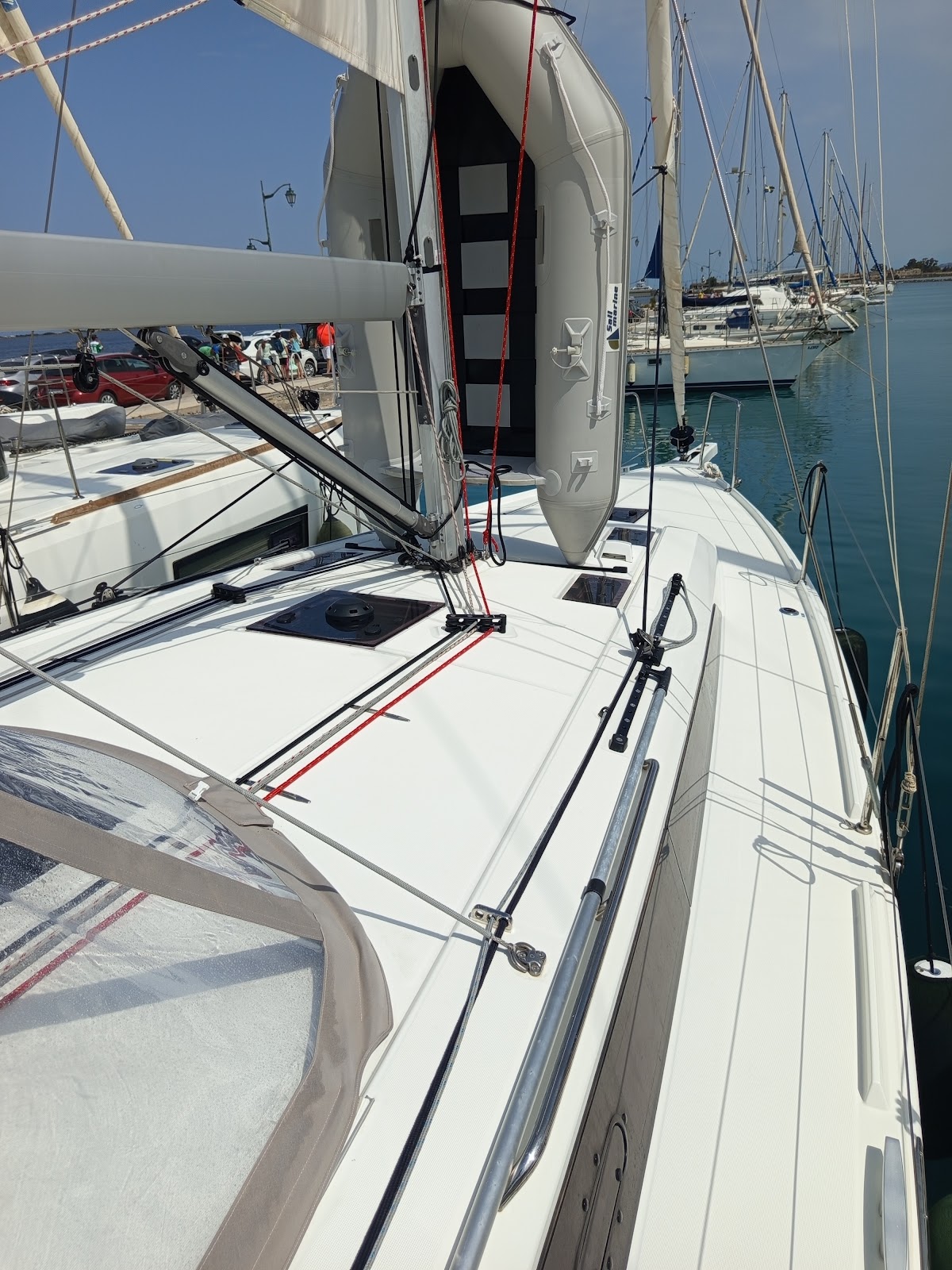 Bimini TopDoccetta in pozzettoAltoparlanti in pozzettoTenderSprayhoodTimone a ruotaSalpa ancoraElica di PruaWind InstrumentsUSB sockets in all cabinsFans in all cabinsWC elettriciElica di PruaFrigoriferoLog & speedVHFGPS plotter in CockpitEcoscandaglioPilota automaticoPannello solareRadio+blue tooth+USBRoller Main Sail