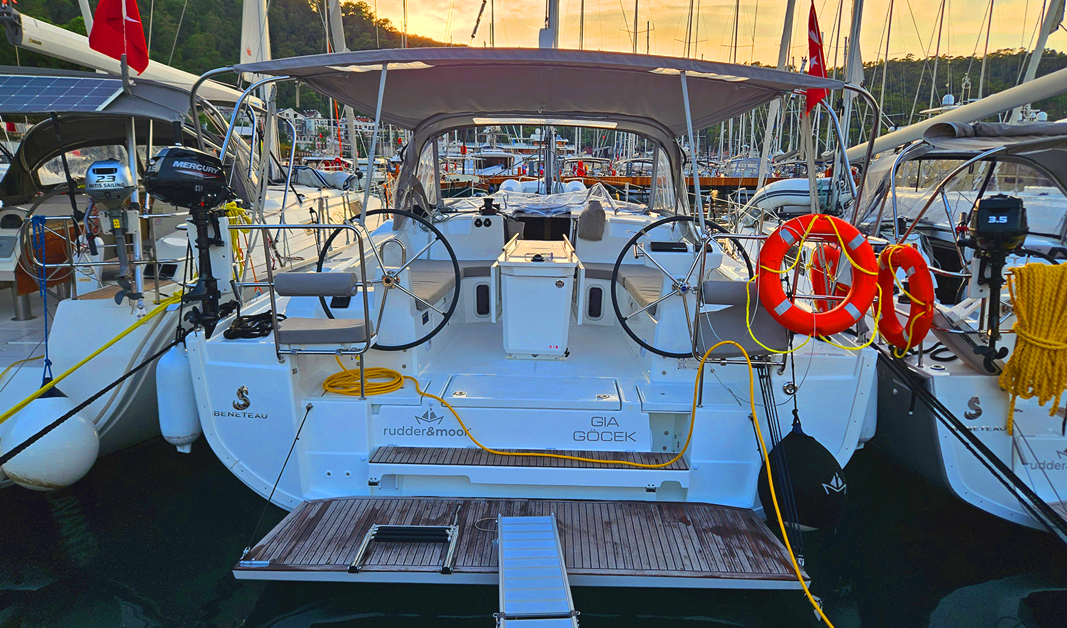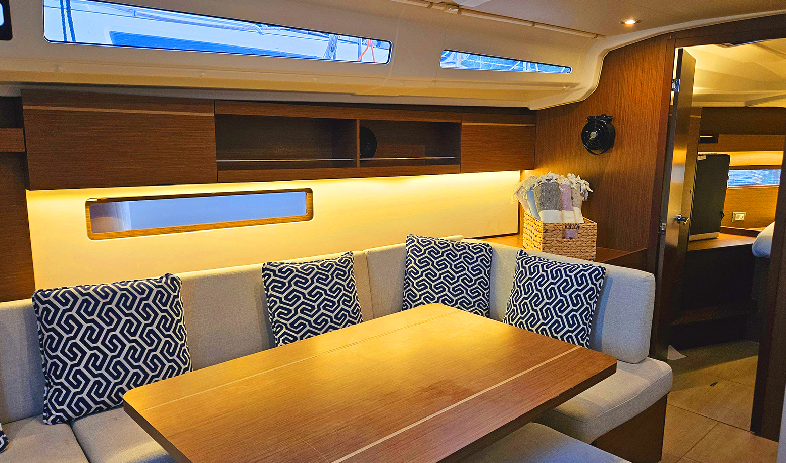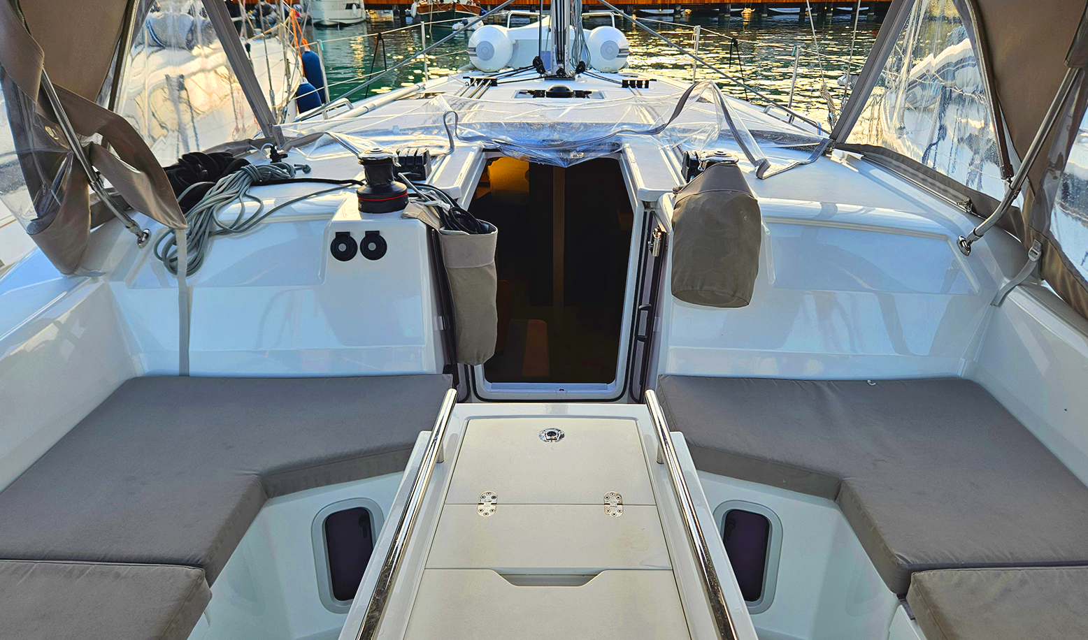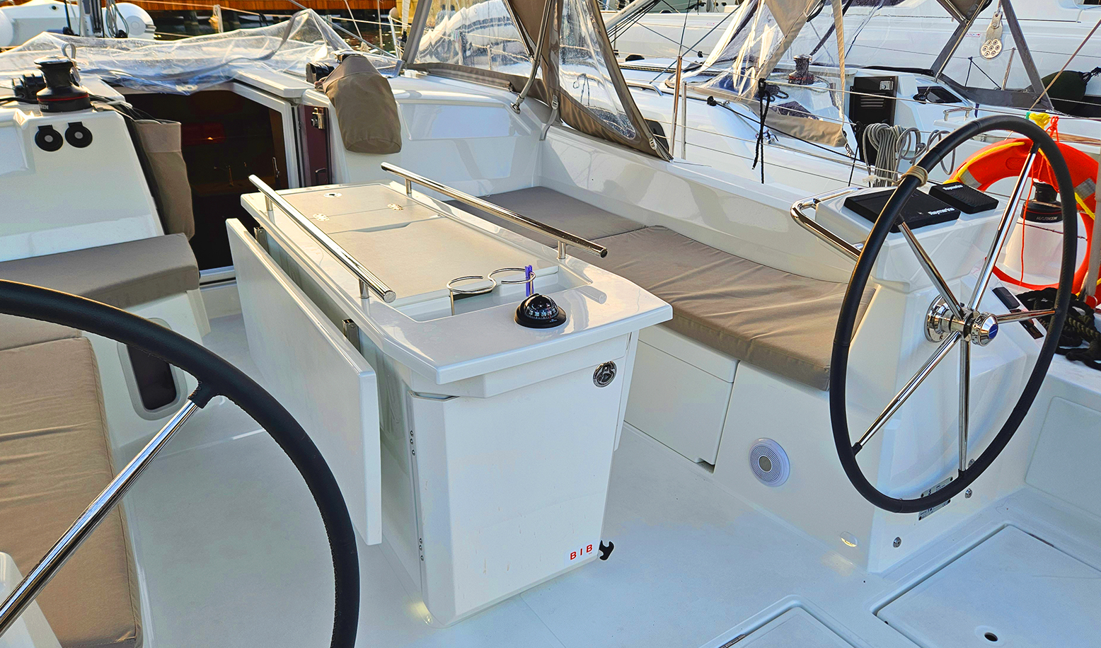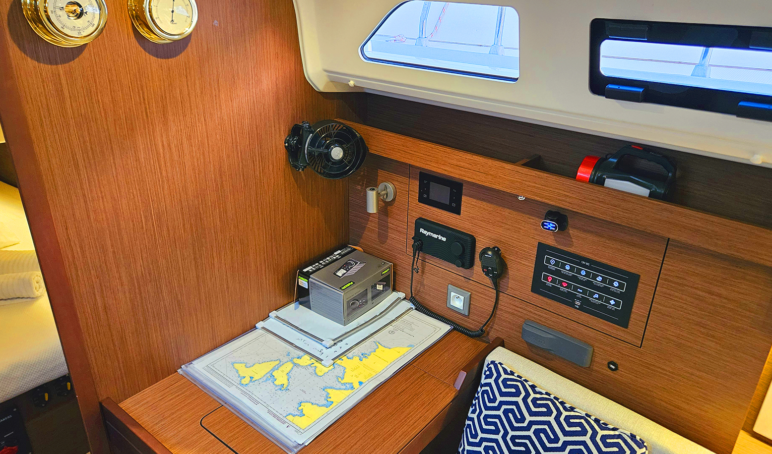 Fusion Music SystemRaymarine 7'' Axiom GPS ChartplotterRaymarine P70S AutopilotgRaymarine Ray73 VHFSprayhoodWindex, Speed, Depth, Water Temperature SensorElectric Windlass & Wired ControllerI70S Tridata IndicatorCockpit Windlass ControlwConvertable Saloon TableExtra Water Tank 330 LWater Heater 40LManeuvering Wicnh Stb/PortPilota automaticoTenderInverterOutboard EngineBiminiFans in Saloon and CabinsUSB Input in Saloon and CabinsFornoStufaElectric Port Maneuvering WinchChain CounterElica di Prua