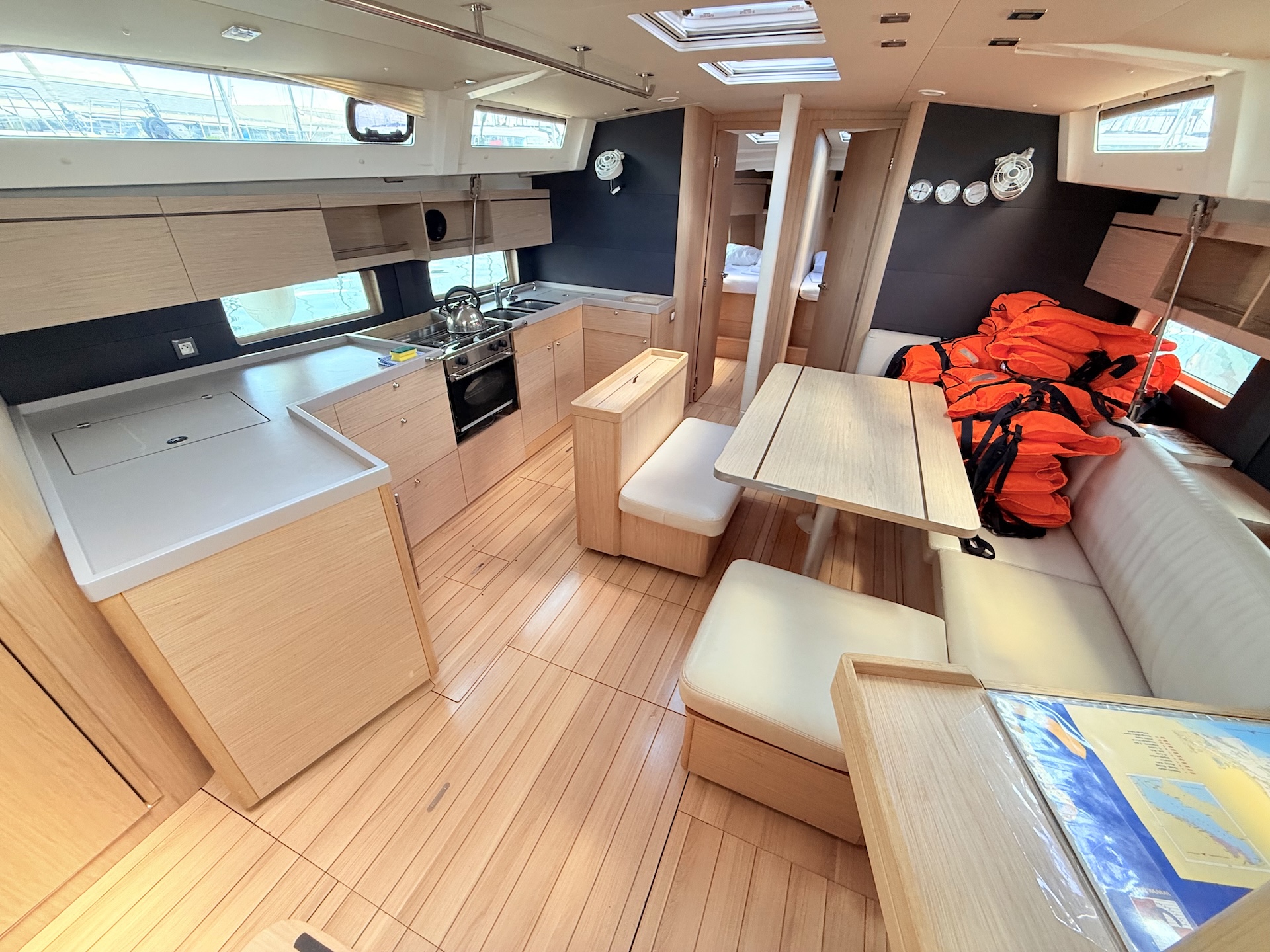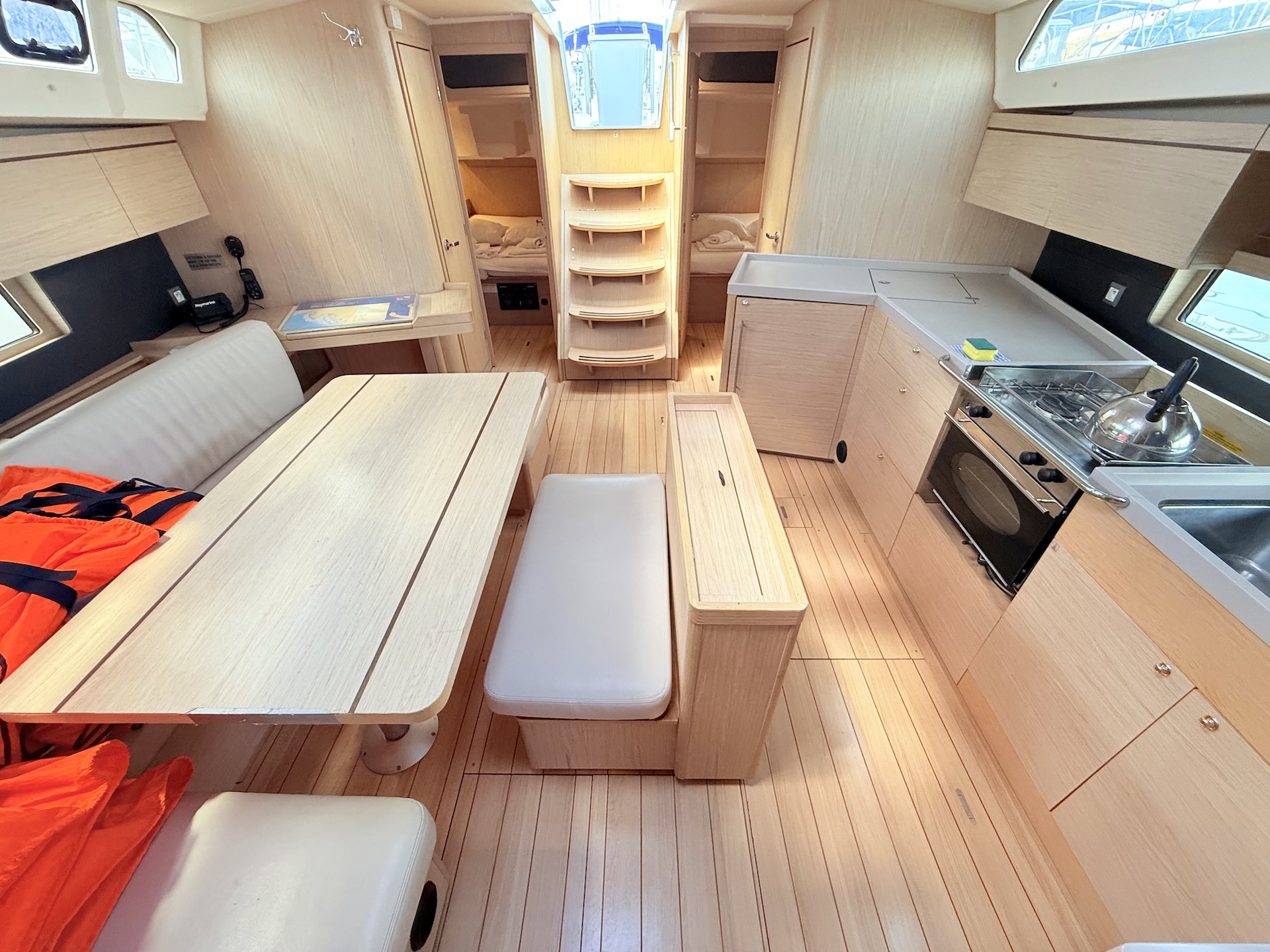 Cucina a gas con fornoFrigoriferoElica di PruaTenderUnderwater lightsRadio/USB/BTPilota automaticoGPS ChartplotterVHFEcoscandaglioSolcometroWindRiscaldamentoAcqua caldaPonte in teakBiminiSalpa ancora elettricoFolding bathing platformCuscini in pozzettoPozzetto in teakSprayhoodDoccetta in pozzettoRanda avvolgibileGenoa avvolgibile