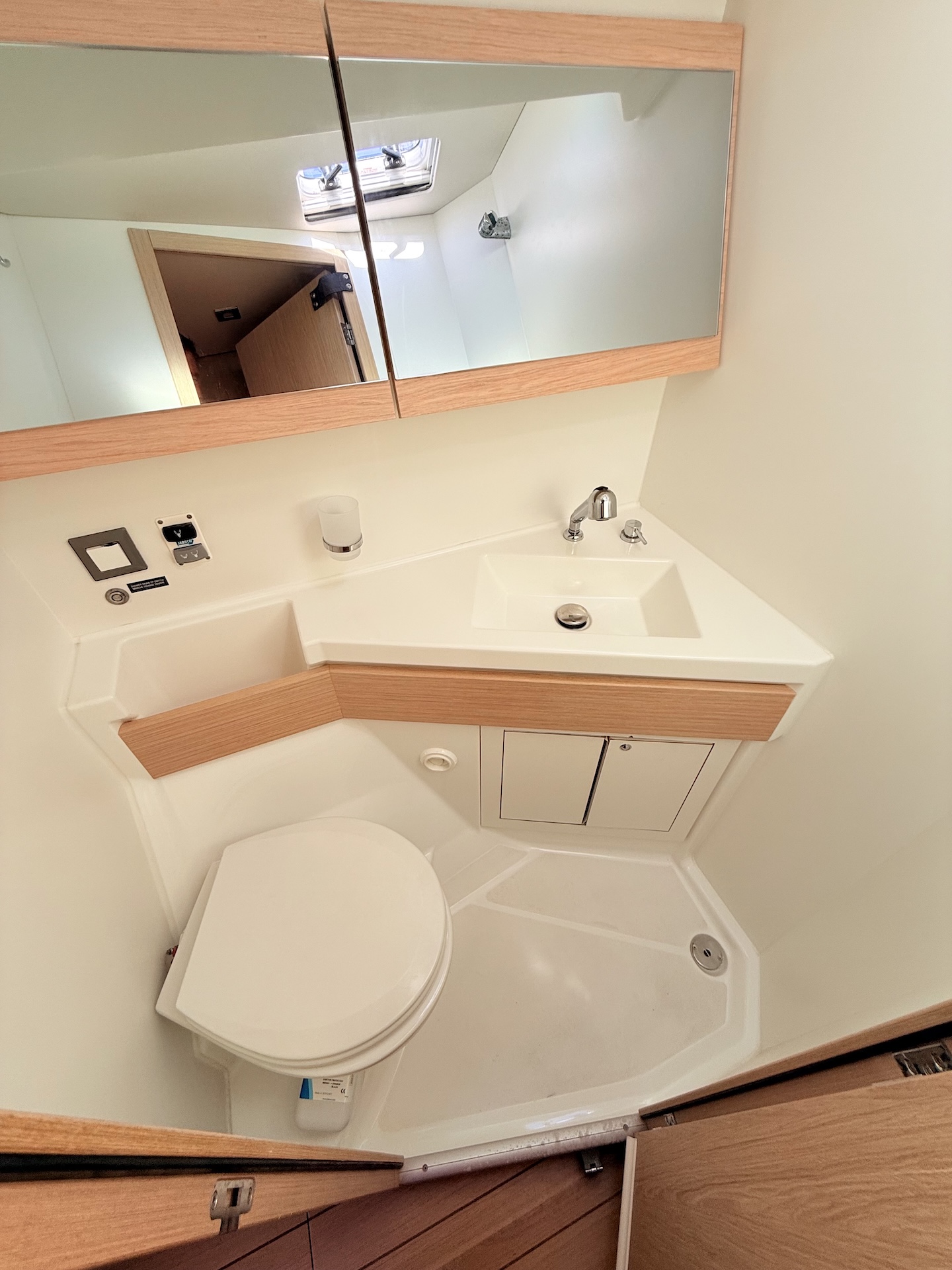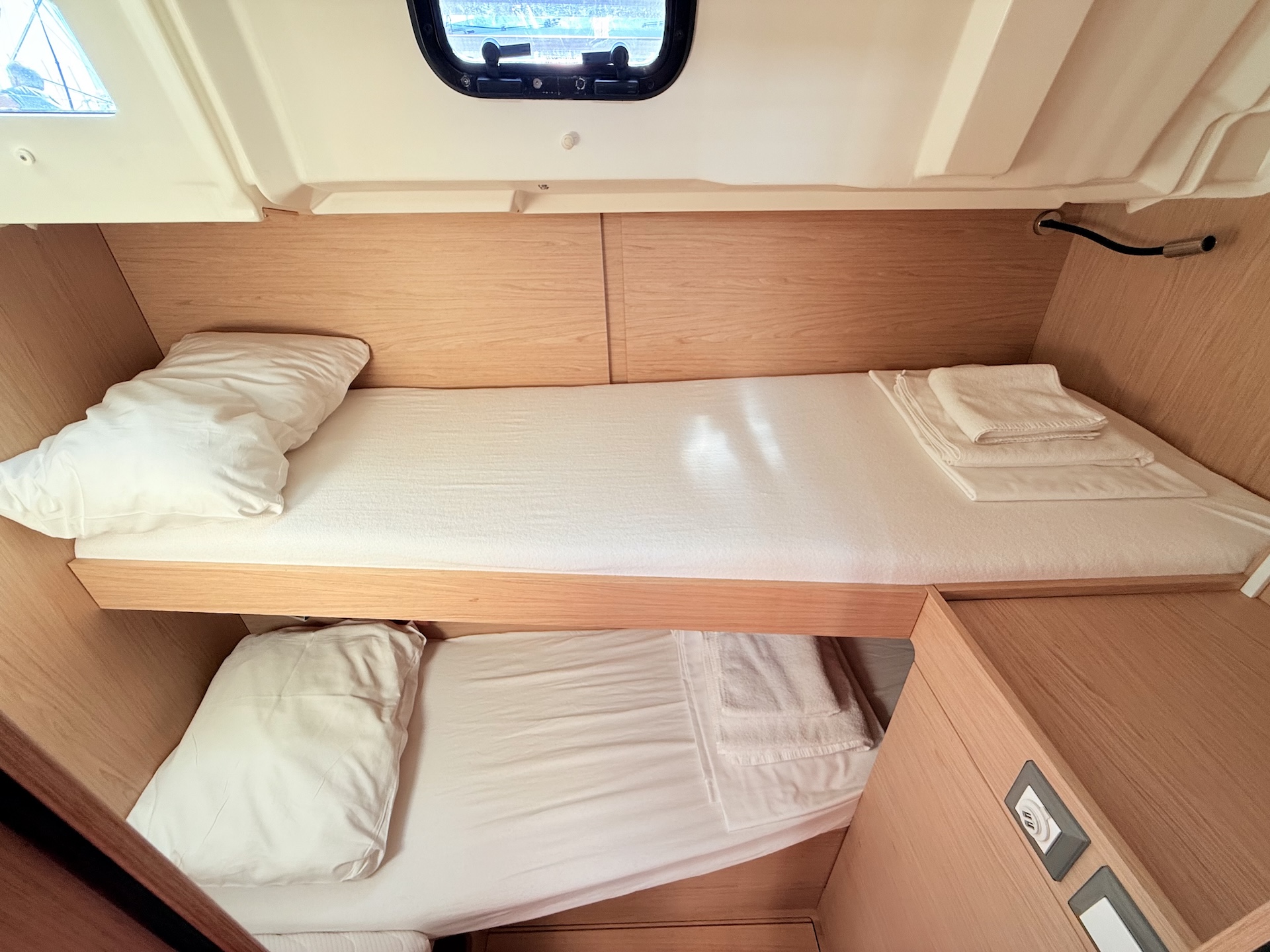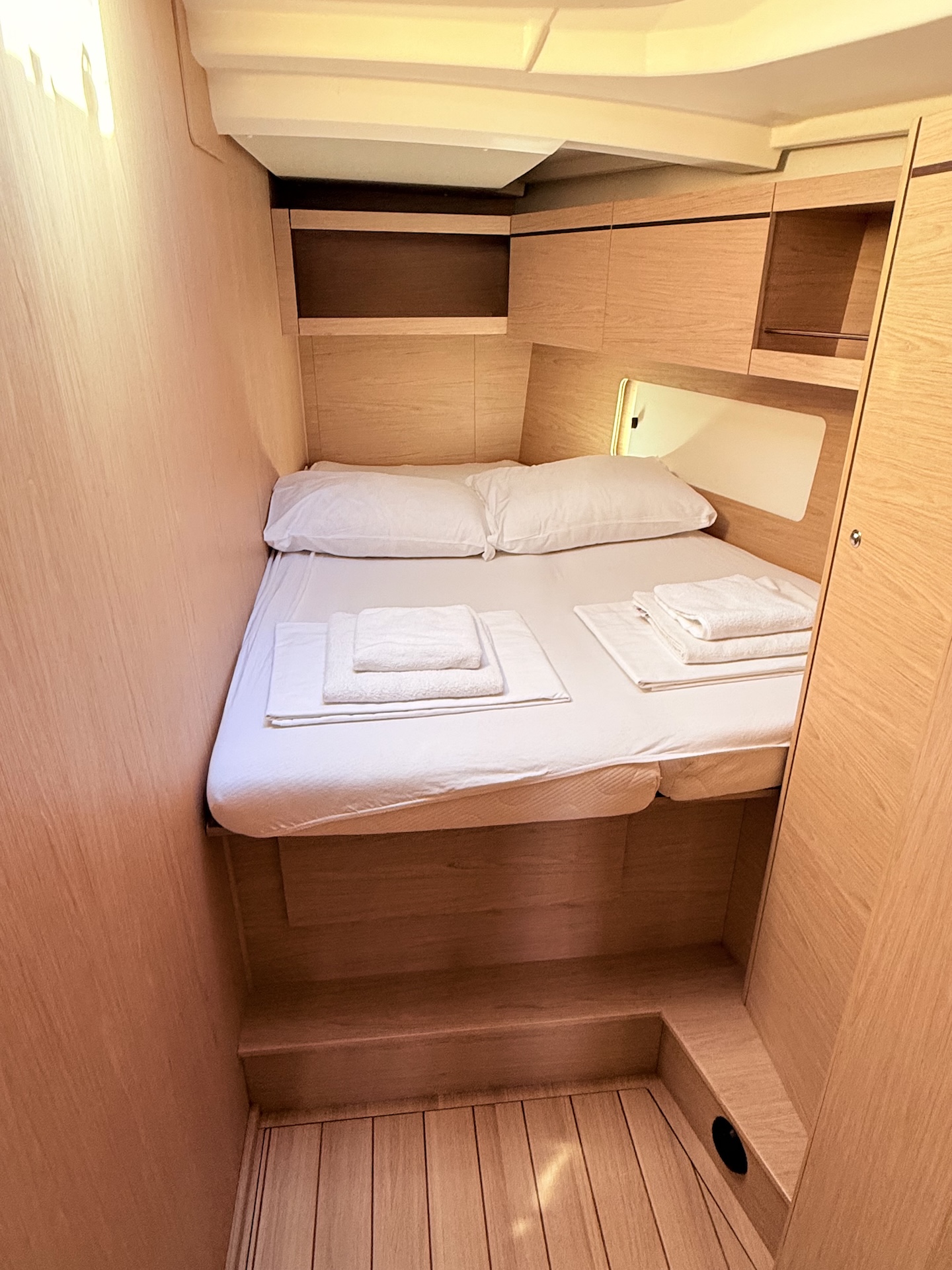 Cucina a gas con fornoFrigoriferoElica di PruaTenderRadio/USB/BTPilota automaticoGPS ChartplotterVHFEcoscandaglioSolcometroWindRiscaldamentoInverter 12V/220VPannelli solariAcqua caldaLithium service batteriesWC elettriciBiminiSalpa ancora elettricoFolding bathing platformCuscini in pozzettoSprayhoodDoccetta in pozzettoRanda avvolgibileGenoa avvolgibile