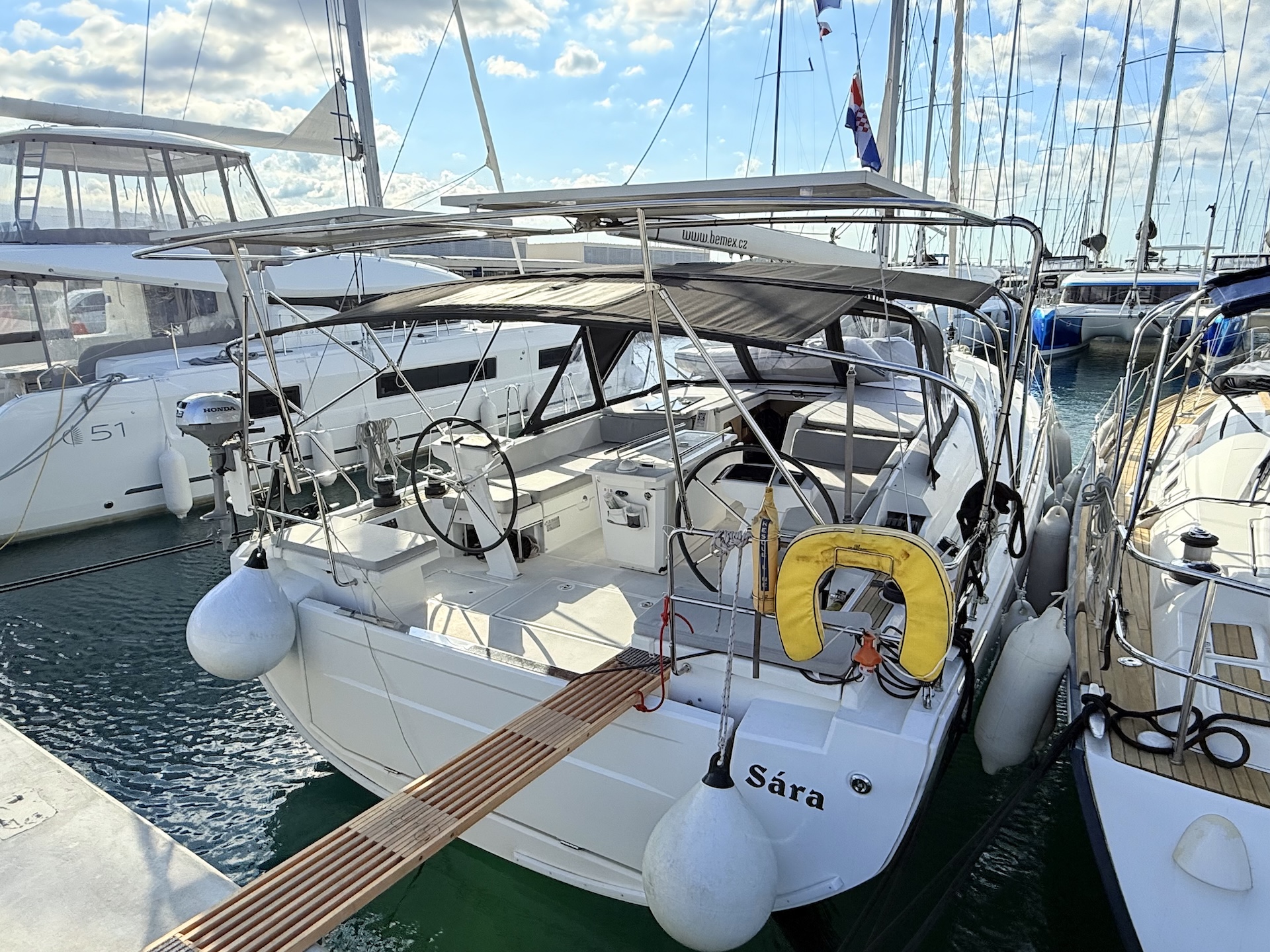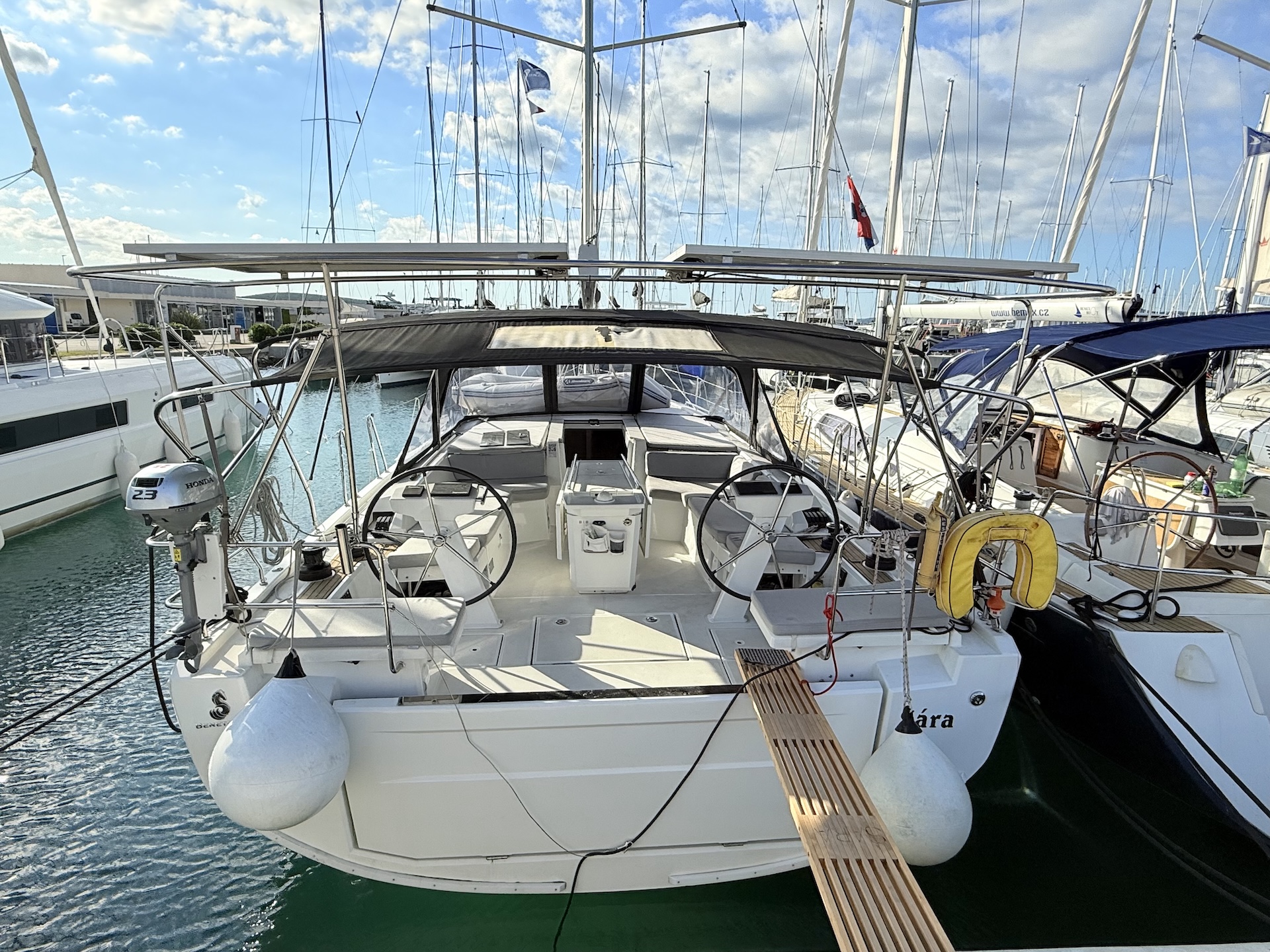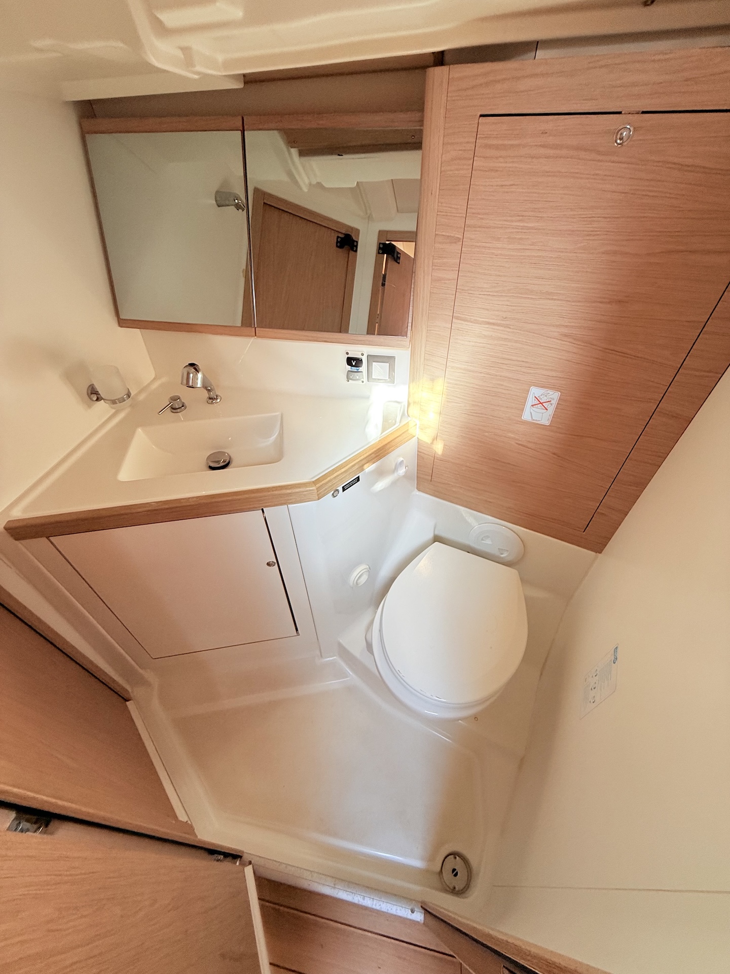 Cucina a gas con fornoFrigoriferoElica di PruaTenderRadio/USB/BTPilota automaticoGPS ChartplotterVHFEcoscandaglioSolcometroWindRiscaldamentoInverter 12V/220VPannelli solariAcqua caldaLithium service batteriesWC elettriciBiminiSalpa ancora elettricoFolding bathing platformCuscini in pozzettoSprayhoodDoccetta in pozzettoRanda avvolgibileGenoa avvolgibile