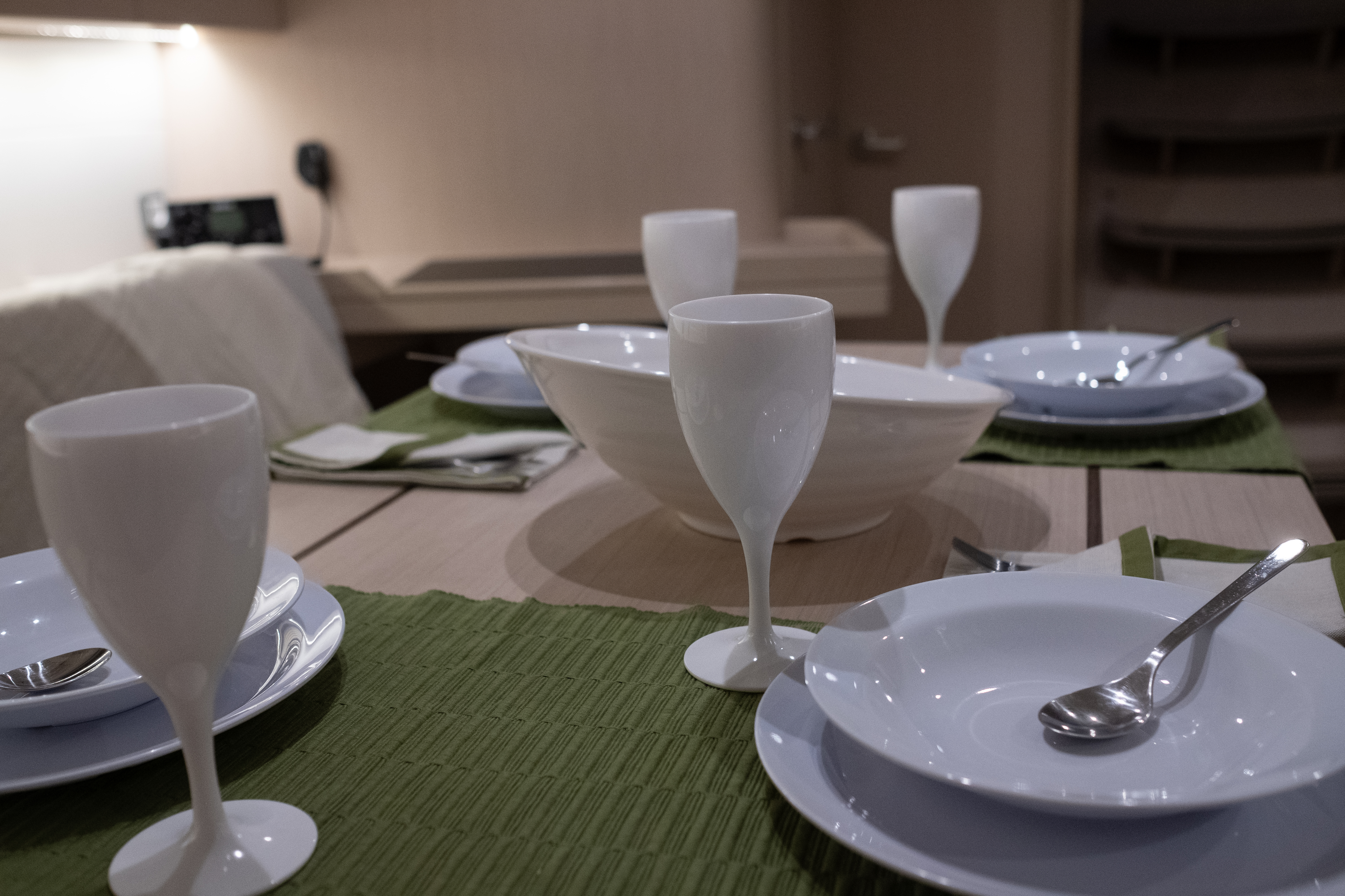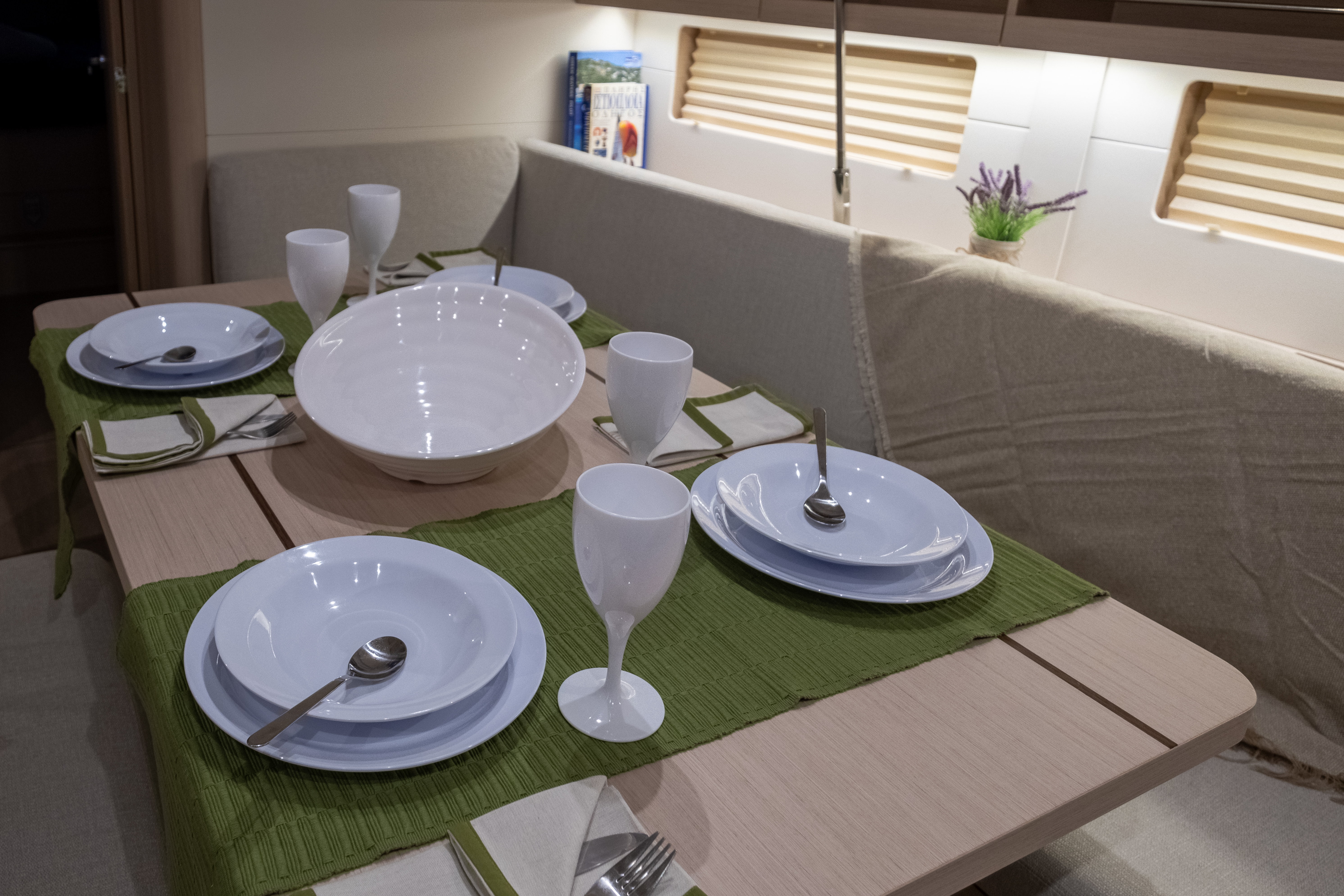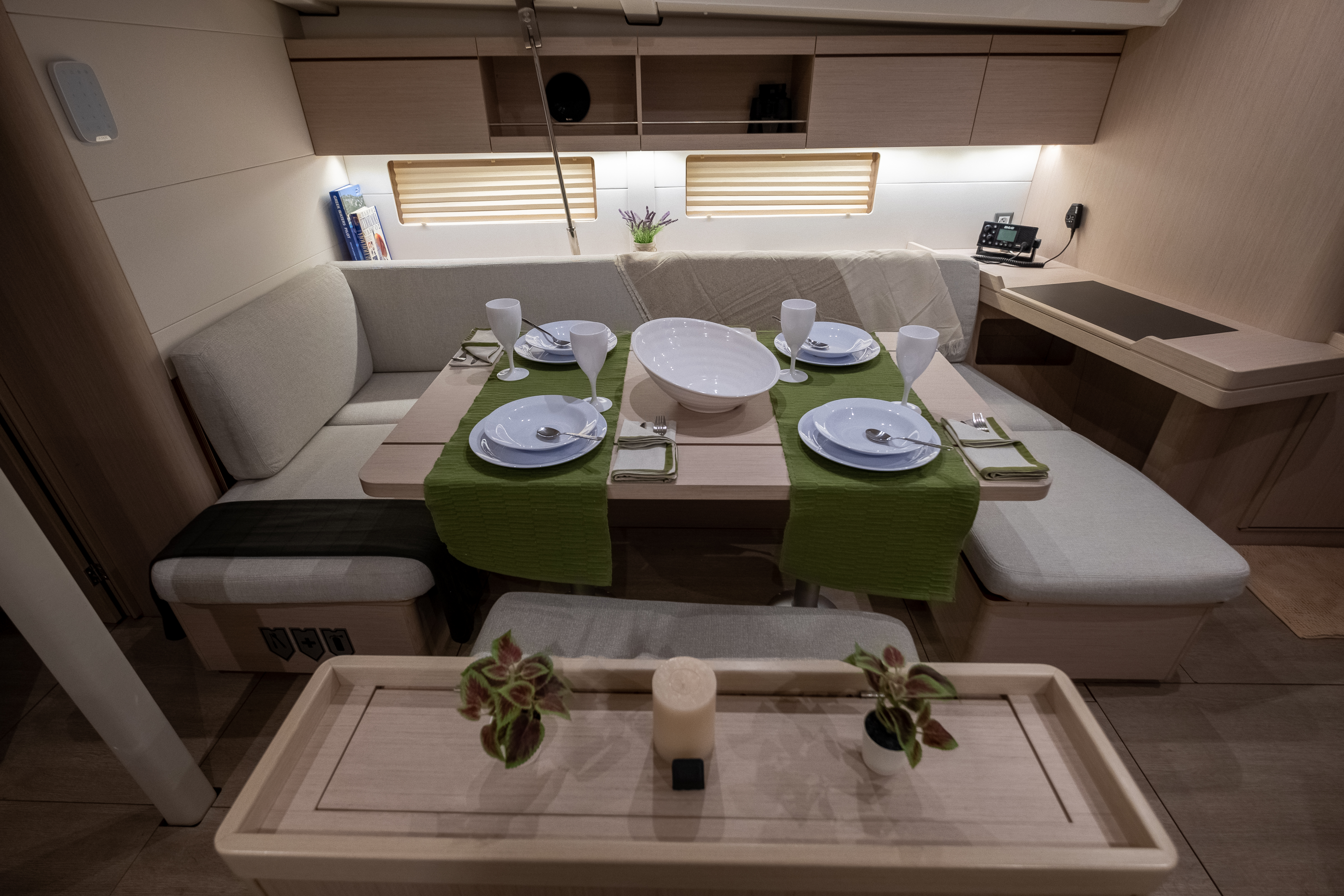 Double berth in salon Indirect lightingMosquito nets on portholesOpening porthole in cockpit for aft cabinsDepth speed sensorMasthead wind sensorSaloon speakersPilota automaticoWireless autopilot remote controlPannelli solariQuiet flush electric toiletsInverter 2000WGRP bowsprit with steel anchor rollerElica di pruaWatermaker 12VGenoaSpinnaker hardwareRigging for asymmetrical spinnakerAdditional coachroof winch & handleRanda avvolgibile57 HP Yanmar Shaft driverAdditional service batteriesShorepowerNavicolor supervision systemBattery monitoring systemStandard charter equipment