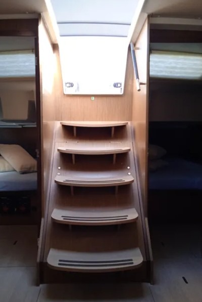 Cuscini in pozzettoPilota automaticoElica di pruaBussolaGPSGPS chart plotterLogge/Lot/SpeedCarte nauticheSet di navigazioneWind instrument/AnemometerBlack Water TankEstintoreKit di primo soccorsoTorciaDotazioni di sicurezzaSet of toolsRadio VHF220V sockets in saloon onlyPannelli solariAncora di rispettoBimini topCockpit/stern, outside showerSpazzoloneTenderSalpa ancora elettricoFolding cockpit tablePlastic bucketSprayhoodAcqua caldaKitchen utensils (Galley equipment, cutlery)FornoFrigoriferoStufaConvertible table in salonElectric fans in cabinsInside showerFusion radioOutdoor speakersUSB
