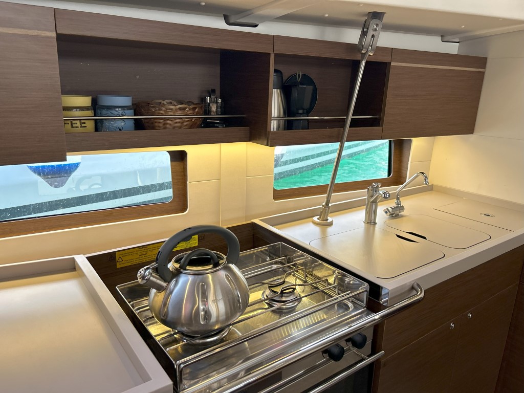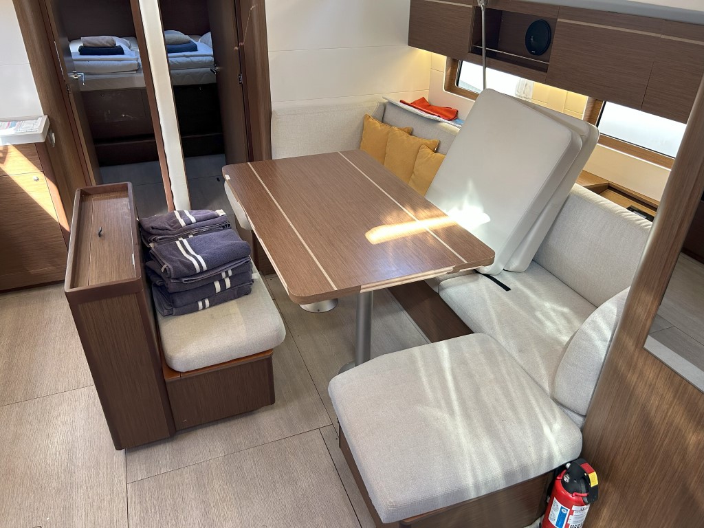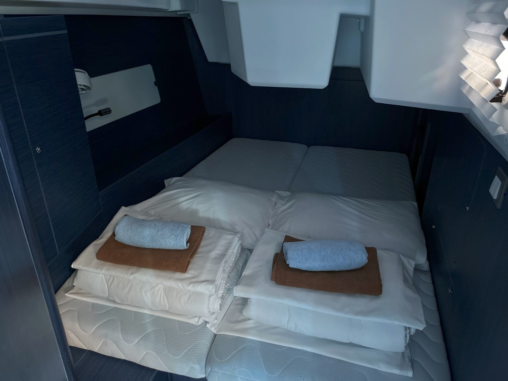 YanmarElica di PruaSteering wheel Extra water tankSerbatoio acquaSensor(Log, Speedometer, Temperature) FrigoriferoStove/ovenAcqua caldaBombole gasKitchen utensilsLenzuolaTowel set ( 2 pcs )Sink(C/W water)Sea waterFansMosquito nets on portholesTenderCinture di salvataggioGiubbotti di salvataggioSegnale sonoroFirst aid setEstintoriEmergency signalsPompa di sentina elettricaPompa di sentina manualeAxeBinocoloBansigoFloating smoke signalCaricabatterieAlimentazione a terra 220VPilota automaticoGPS charter plotterVHFFM radio/USB connectionBussolaCarte di nauticheManualeStazione VentoPannelli solariHifi:Fusion +interior loudspeakers & waterproof exterior speakersHelmSprayhoodBiminiAncora di rispettoSalpa ancora elettricoAltoparlanti in pozzettoTavolo in pozzettoCockpit cushions setDoccetta in pozzettoMezzo marinaioBaloon fender - aftChain and rope for spare anchorParabordiPasserellaPlancetta Specchio di PoppaGenoa avvolgibileRanda avvolgibile