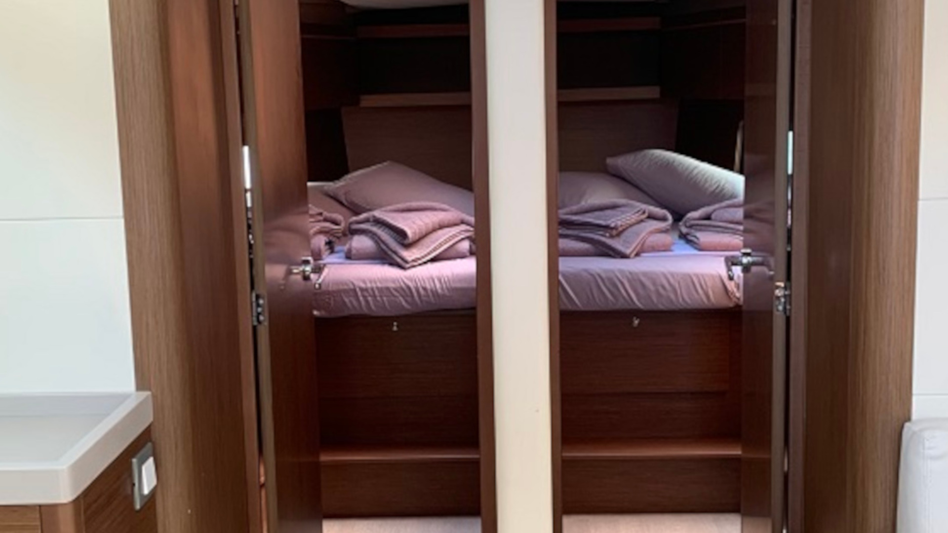 Randa rollabileGenoa avvolgibileRadio/cd/usb player/bluetoothAltoparlanti in pozzettoTeak CockpitSprayhoodTavolo in pozzettoSalpa ancora elettricoBiminiDoccetta esternaPlancetta Specchio di PoppaCooker with oven & grillFridge with small freezerFuoribordoTender gonfiabileSnorkel equipment (1 set)Ancora di rispettoCinture di sicurezzaEstintoreCatena di ancoraggio calibrataKit di primo soccorsoSalvagenteBosuns chairEPIRB - Boa di emergenzaFloating AnchorBoa galleggianteLifejacketsZattera di salvataggioRazzi di segnalazionePannelli solari220v Shore Power Connection12v or Usb sockets in cabinsInverter220v sockets in cabinsElectric ToiletsAcqua caldaConvertable saloon tablePaper chartsPilot BookLog/speed/wind/depth instrumentsVHF DSCPilota automaticoColour chart Plotter in CockpitElica di PruaBedding & LinenBlack water holding tanksClock and BarometerCuscini in pozzettoCompass and navigation toolsCooking pots & pansPosateFloating LineCime di ormeggioToolboxInox/Teak gangway