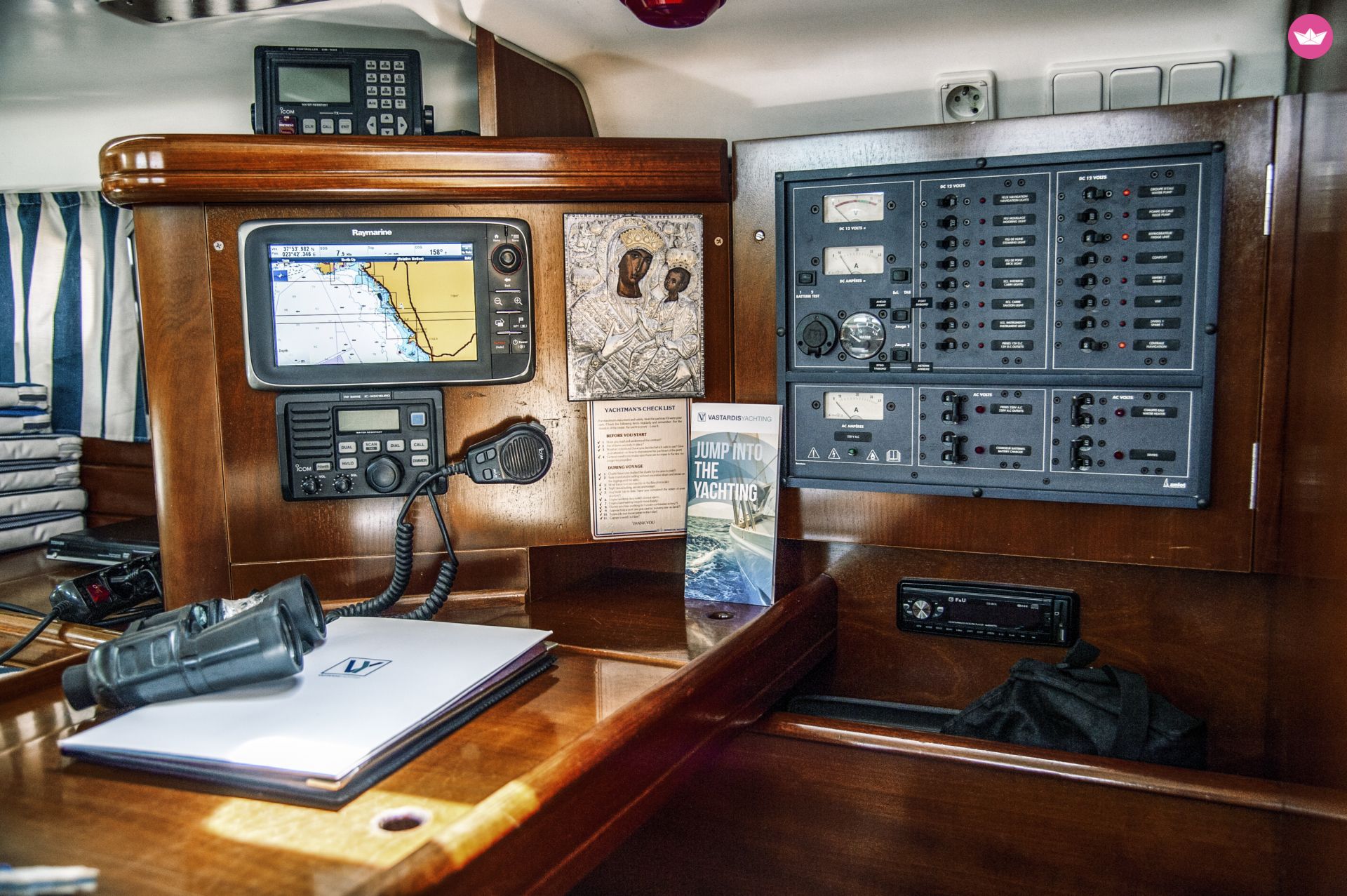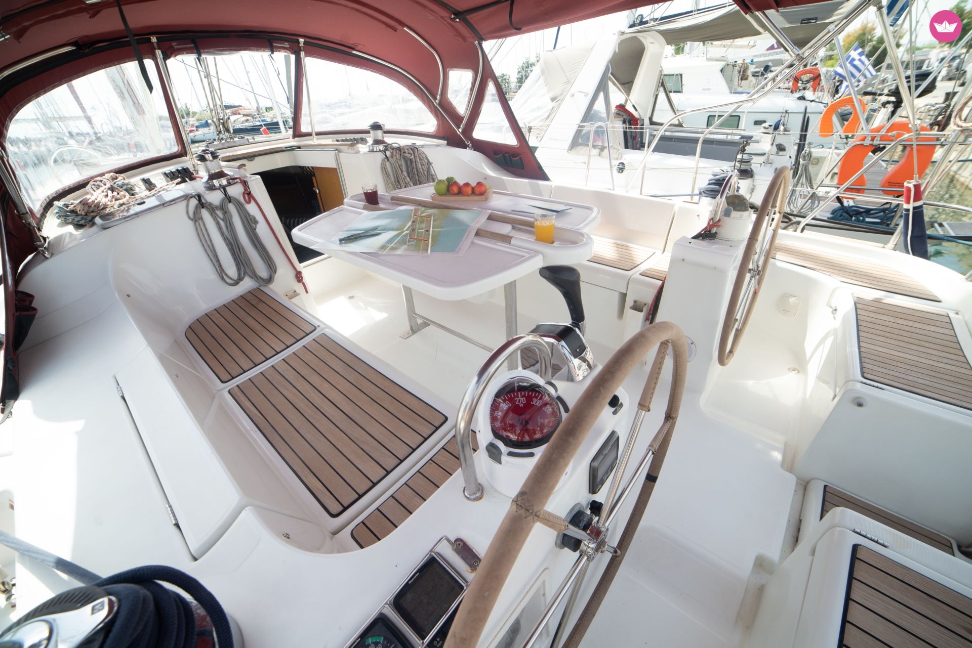 BussolaPilota automaticoVHFGPSAcqua caldaBiminiDoccetta esternaSalpa ancora elettricoCool BoxFrigoriferoCooker (num.)Fornello con fornoLavelliSinks (num.)Batteria del motoreBatteria serviziCavo 220VTender gonfiabileEstintoreKit di primo soccorsoRazzi di segnalazioneSalvagenteEcoscandaglioRanda avvolgibileDinghy with Outboard MotorAncora di rispettoSteeringStrumenti carteggioGiubbotto di salvataggioBiancheriaCuscini in pozzettoScaletta per il bagnoBiminiPannelli solariOutside showerDocciaAudio systemPlancetta Specchio di PoppaInside speakersAltoparlanti esterniTenderAria condizionataFansAcqua caldaWC elettricoDinghy's motorEcoscandaglioFrigoriferoPaddle Board220V power outlet