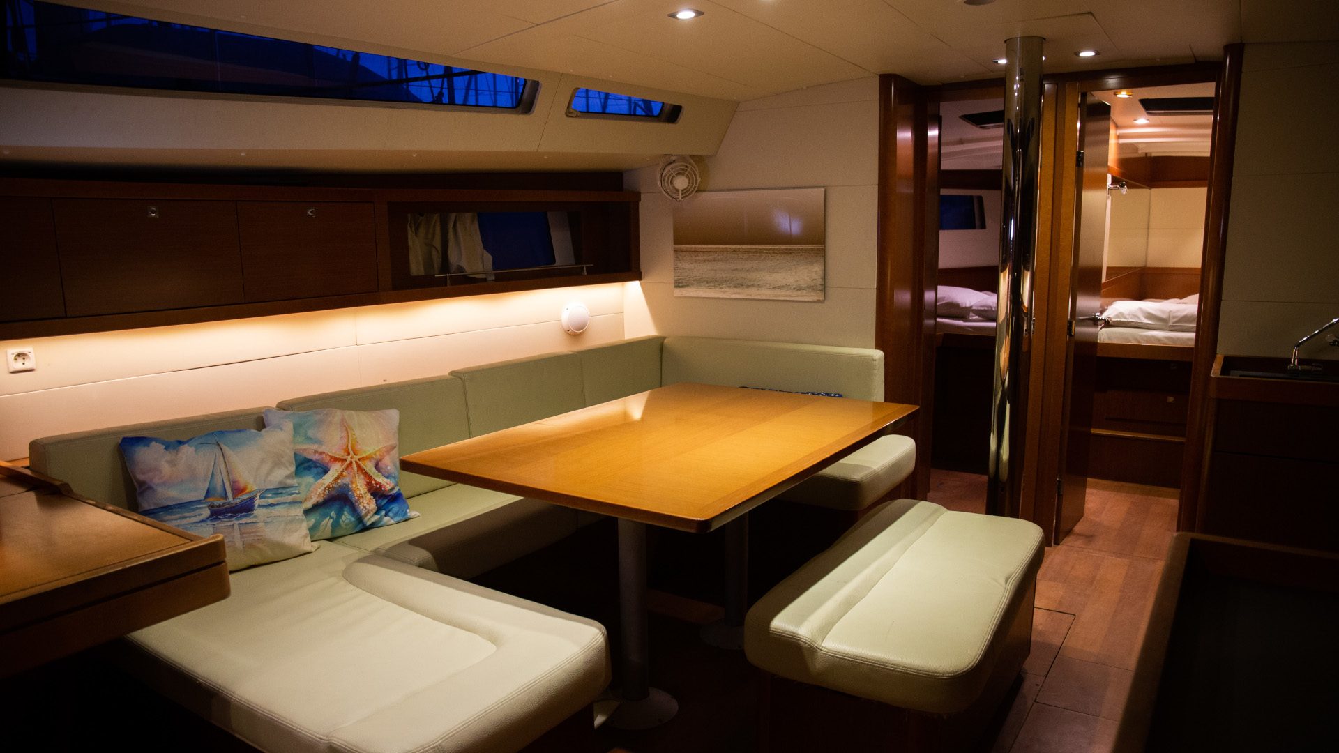 Electric ToiletGps Plotter CockpitPannelli solariA/C GeneratoreElectric WinchWebasto12 Volt SocketsScaletta per il bagnoUSB charger in every cabinCassetta attrezziStazione VentoVHFWnd speedBombola del gasCucina a gasGPSGMDSSHand bearing compasSerbatoio acquaHorse shoe bouyAcqua caldaInflatable life raftManuale dei FariBussolaSolcometroMCA codedLuci di navigazioneManualePlotterRadio/CDGenoa rollabileCinture di sicurezzaKit riparazione velaAncora galleggianteSea chartRanda avvolgibileFlippersElectronic sea chartBoa galleggianteBarra Timone di emergenzaEmergency Mobile PhoneKit di primo soccorsoFlags QNCWC elettricoDiving maskPompa di sentina elettricaFrigorifero220 Volt Battery Charger with SocketsBarometroPilota automatico220 volt socketBiminiBinocoloScaletta per il bagnoBosuns chairElica di pruaRazzi di segnalazioneOrologioCockpit ShowerCuscini in pozzettoCockpit conrol panelAltoparlanti in pozzettoCockpit table with ice boxConvertible table in SaloonDavit for outboardDoccetta esternaTenderEcoscandaglioElectric sounderSalpa ancora elettricoForward sunbedGenoa avvolgibileGPS in the cockpitGas cookerRiscaldamentoSerbatoio acquaHot Water in the CockpitOuboard engineRadio with usb port/BluetoothFrigoriferoRoll up blinds at sternSnorkeling equipment one set/cabinPannello solareSprayhoodTeak CockpitUSB ports 12V in all cabins & lounge areaVHFStazione VentoEPIRB - Boa di emergenza